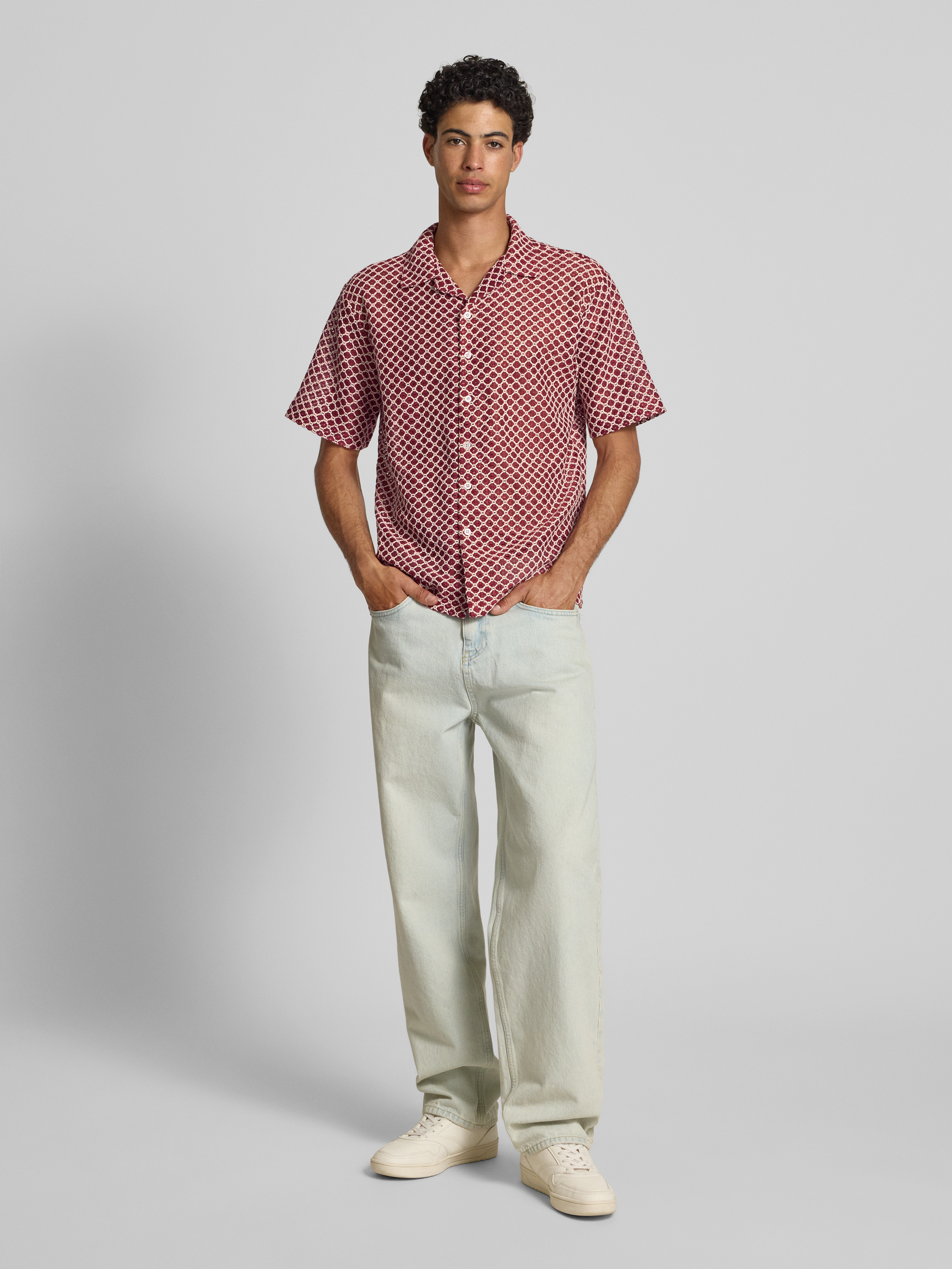 Redefined RebelBoxy Fit Freizeithemd mit Lochmuster Modell 'ZANDER' in rot