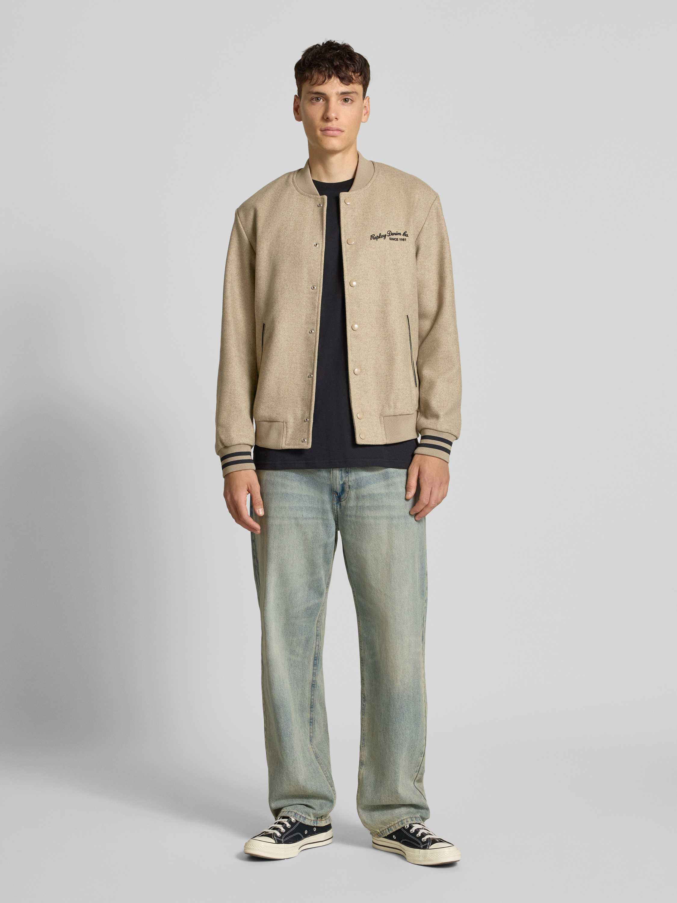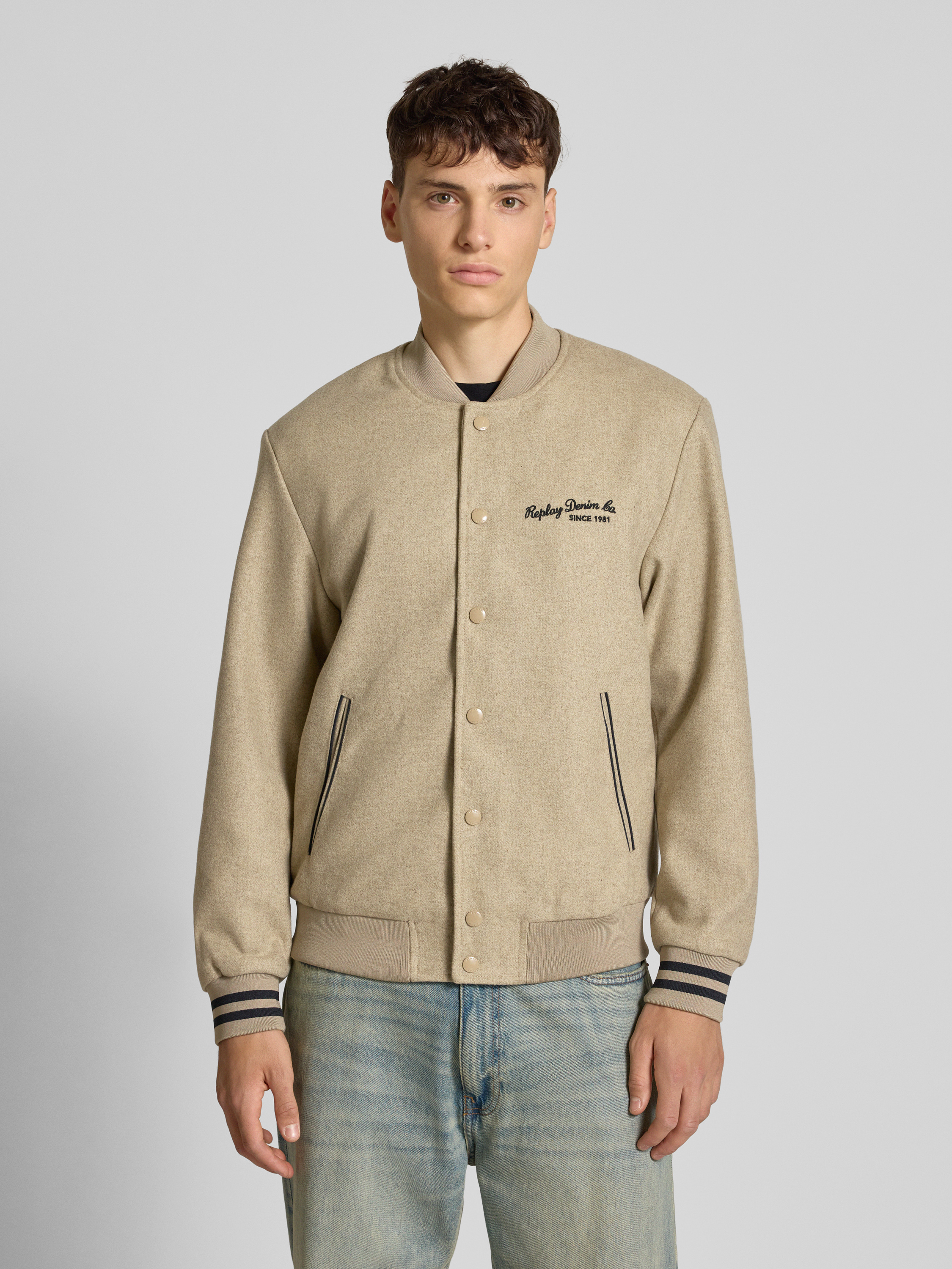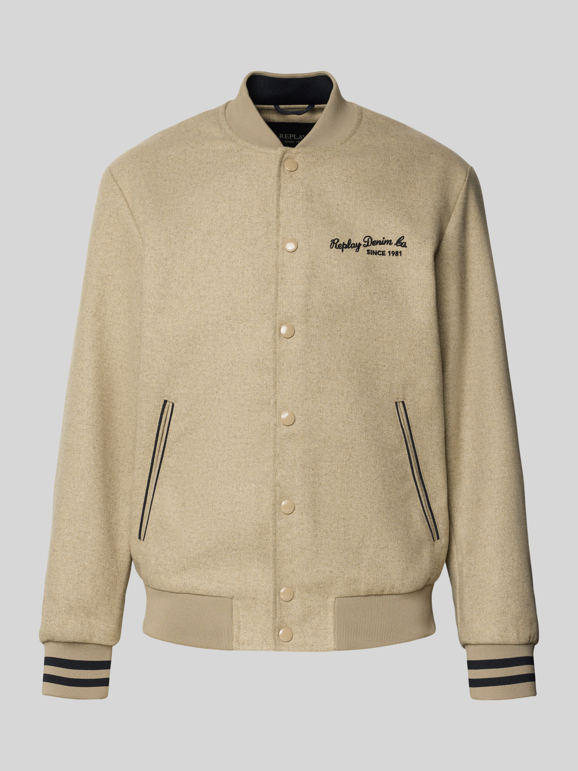 Die Herren College-Jacke von Replay verbindet Stil mit Funktionalität. Durch den Material-Mix mit Woll-Anteil hält sie angenehm warm und bietet gleichzeitig einen zeitgemäßen Look. Der Regular Fit und der Stehkragen sorgen für eine bequeme Passform, während das Label-Stitching dezente Akzente setzt.