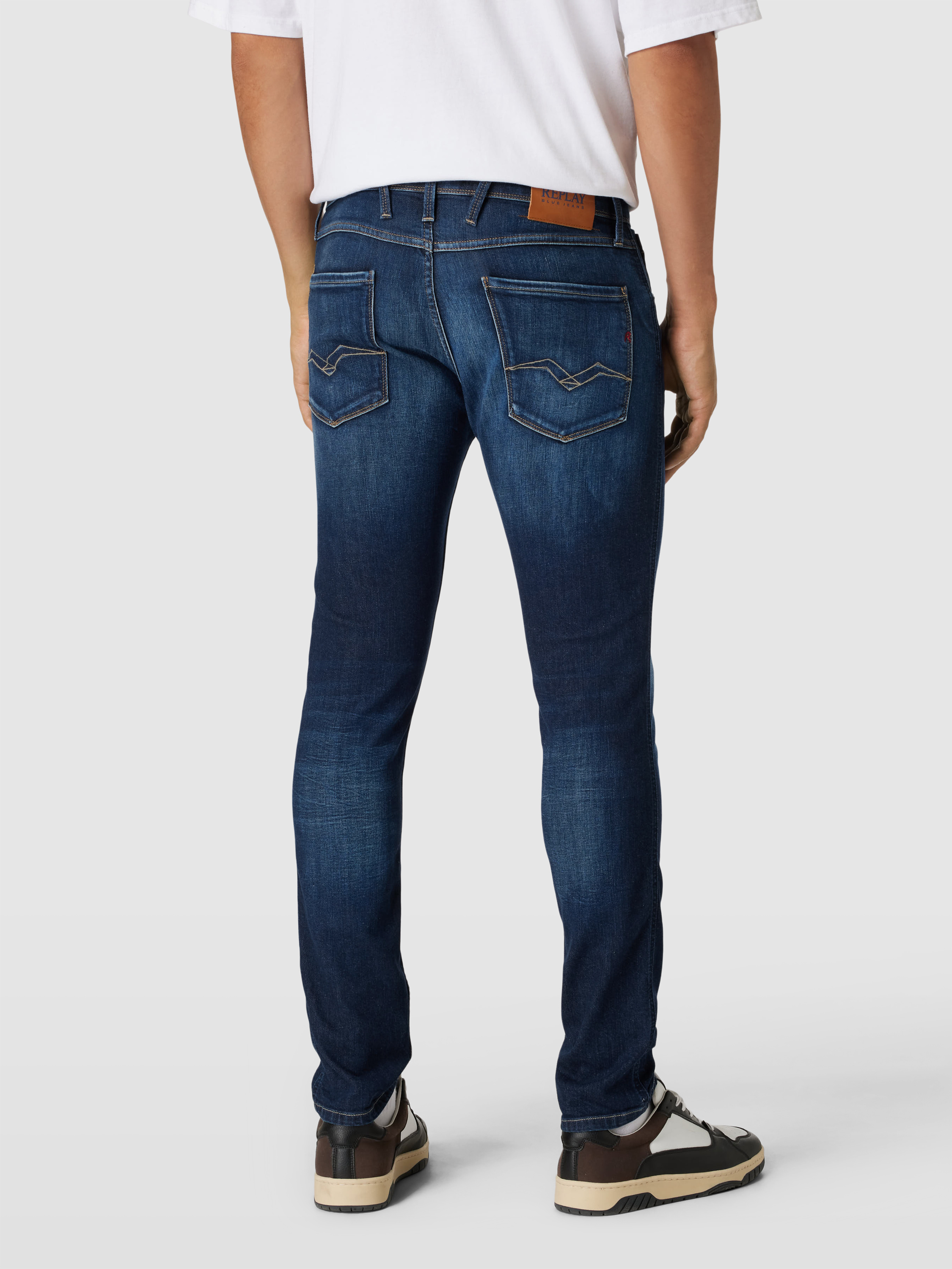 Die Jeans im 5-Pocket-Design von REPLAY, Modell 'ANBASS', vereint Komfort und zeitlosen Stil durch ihren geraden Schnitt und den Baumwoll-Elasthan-Mix. Diese Kombination macht sie vielseitig einsetzbar und verleiht jedem Outfit eine lässige Note. Ideal für den Alltag geeignet.