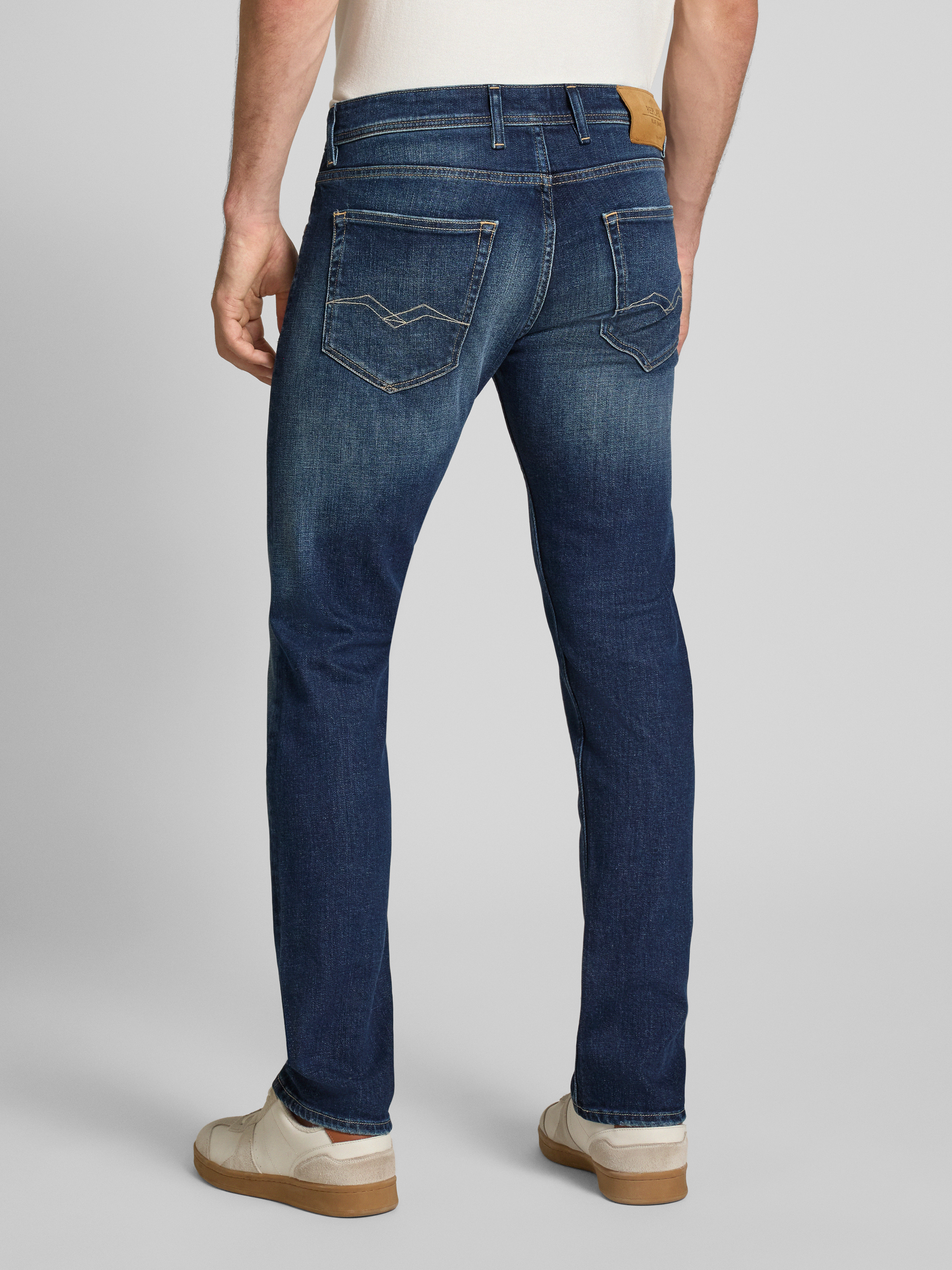 Die Straight Fit Jeans im Used-Look, Modell 'GROVER' von Replay, zeichnet sich durch einen bequemen Baumwoll-Elasthan-Mix aus, der Bewegungsfreiheit ermöglicht. Der gerade Schnitt sorgt für eine klassische Silhouette, während der Used-Look einen lässigen Akzent setzt. Ideal für entspannte Alltagskombinationen.