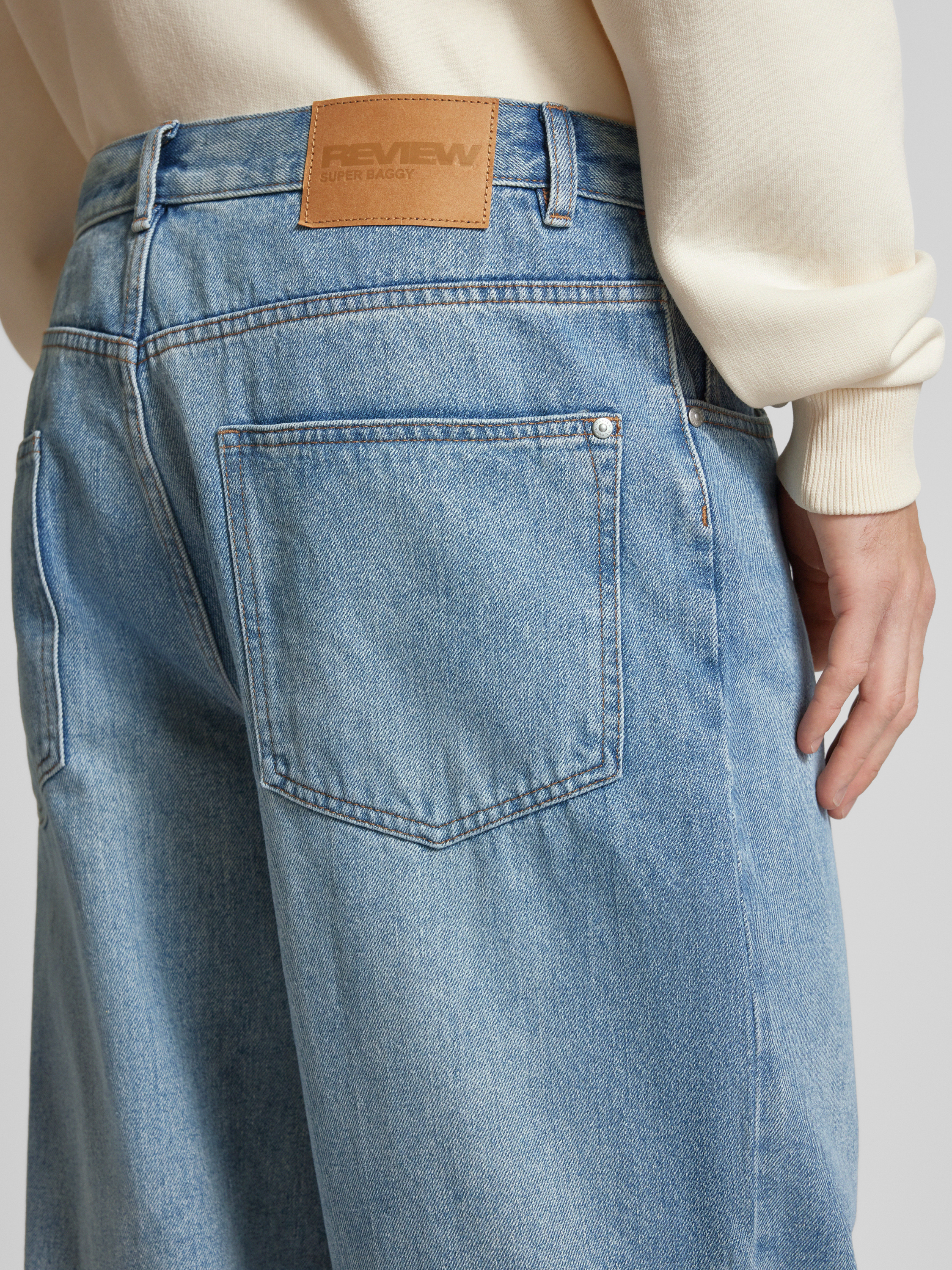 REVIEWBaggy Fit Jeans in lockerer Passform mit Eingrifftaschen in hellblau