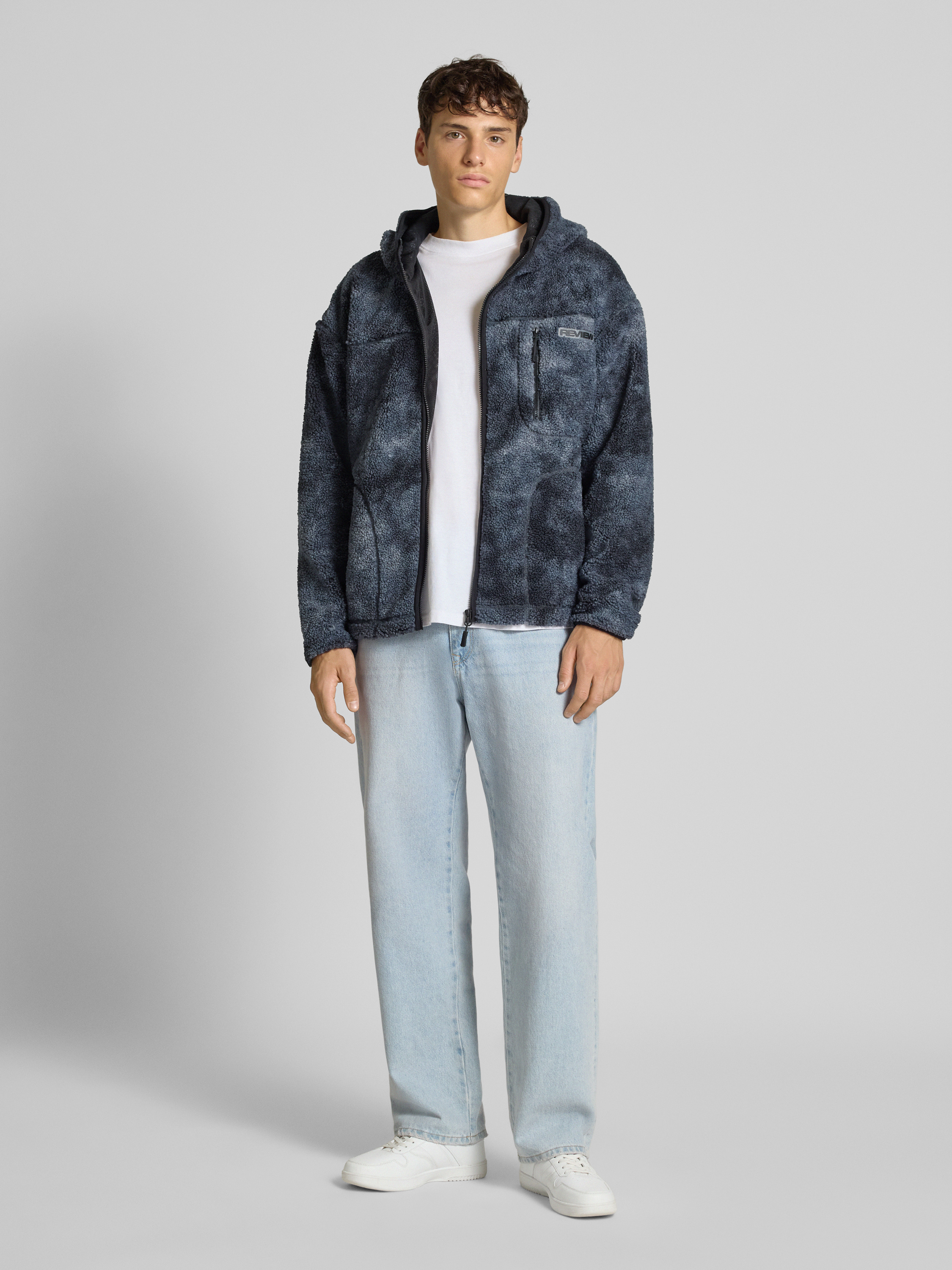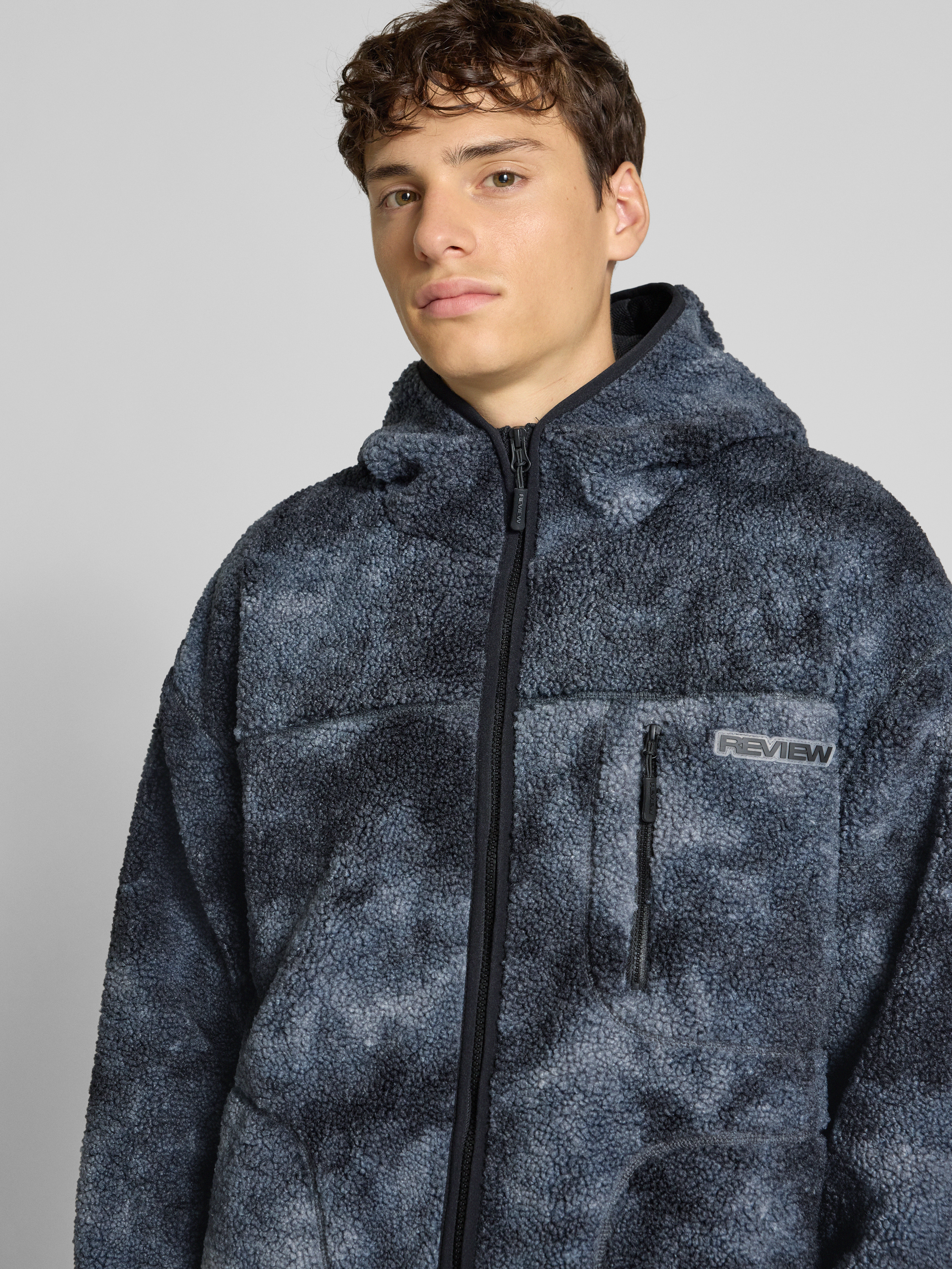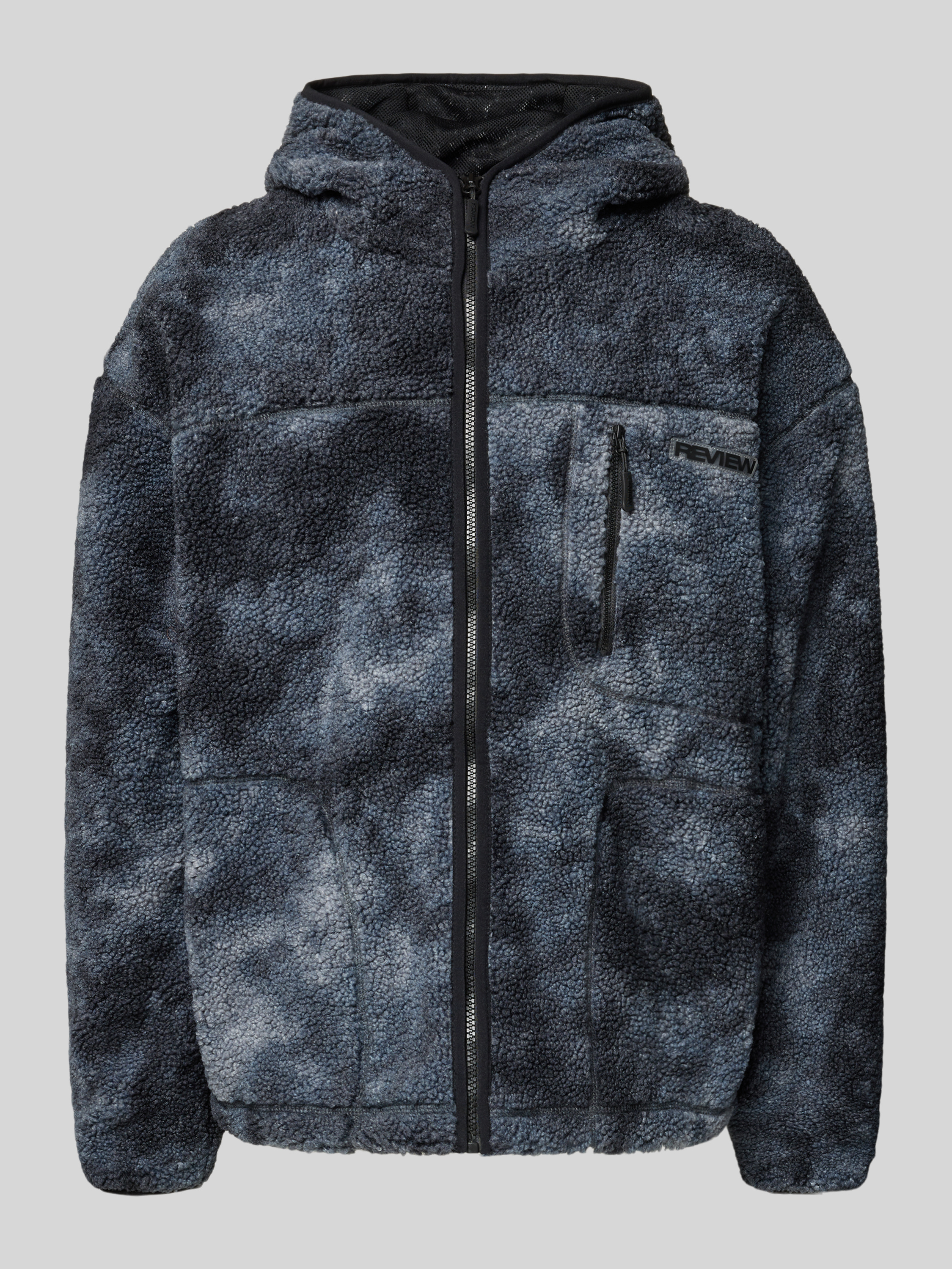 REVIEWFleecejacke mit Reißverschlusstasche und Label-Detail in black