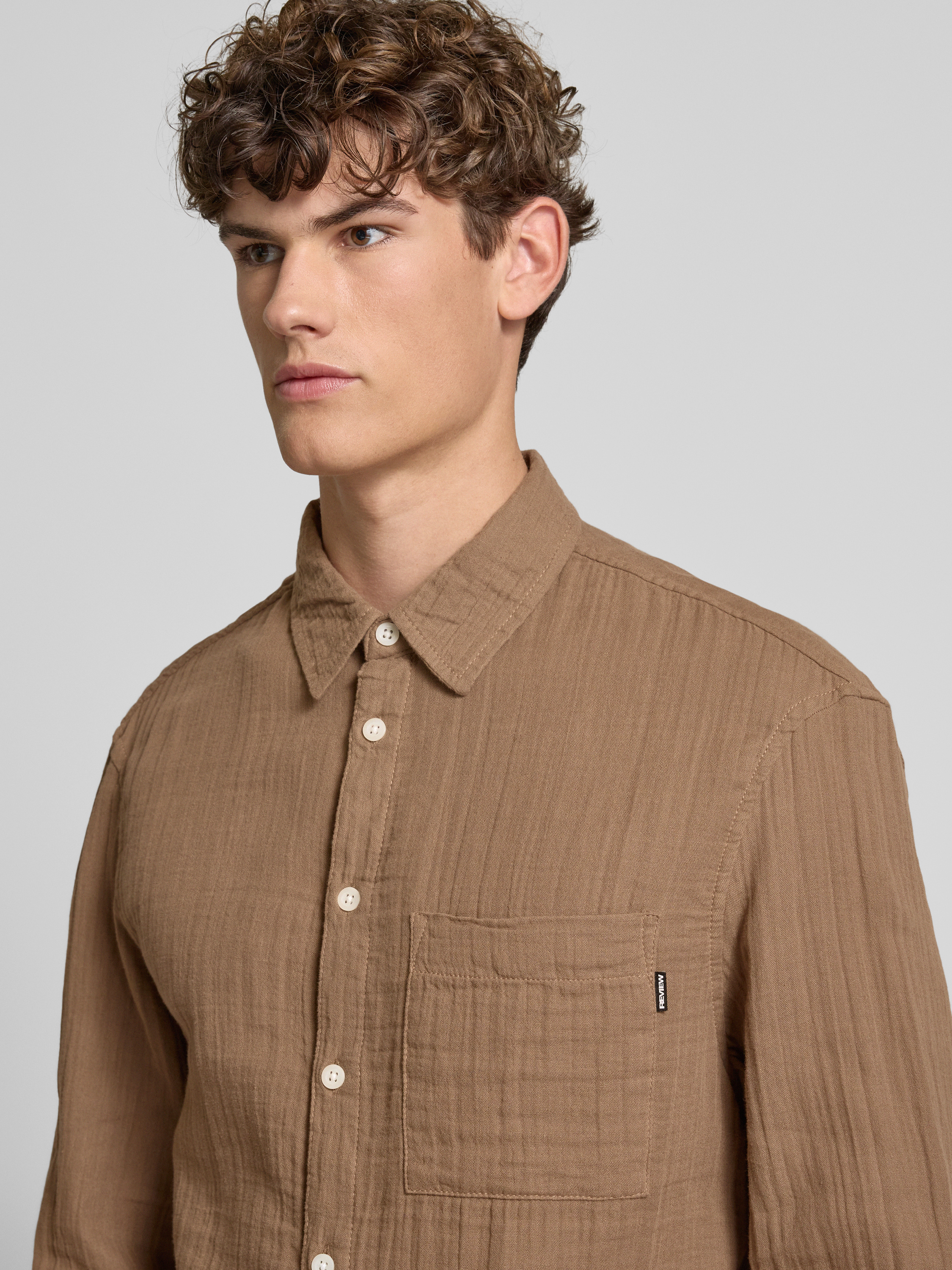 REVIEWFreizeithemd aus Musselin in mud