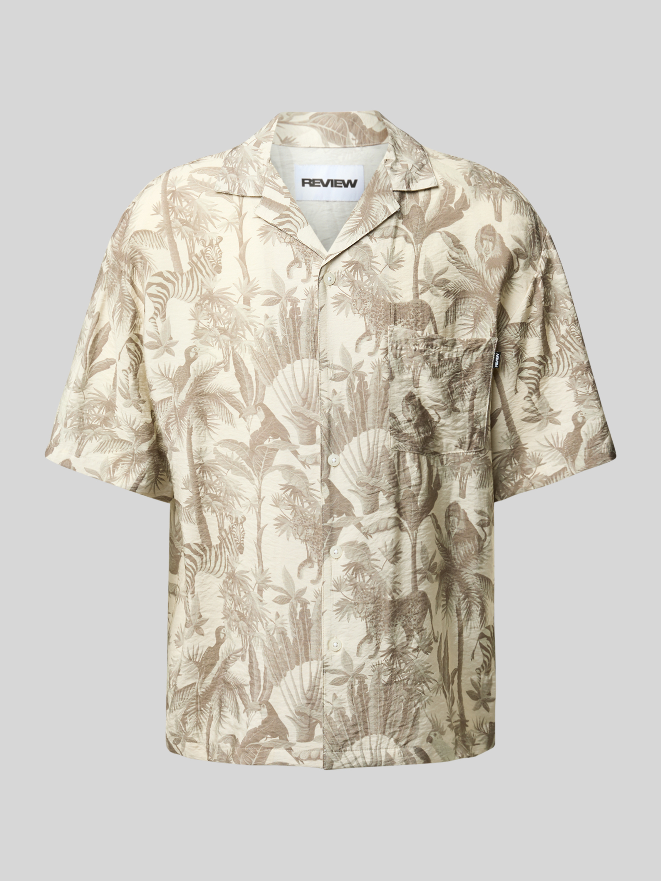 Das Freizeithemd von REVIEW, aus einem Viskose-Mix gefertigt, überzeugt durch seinen lockeren Schnitt und den angenehmen Tragekomfort. Der Reverskragen und die Brusttasche verleihen dem kurzärmeligen Design eine lässige Note. Ideal für entspannte Tage und vielseitig kombinierbar.