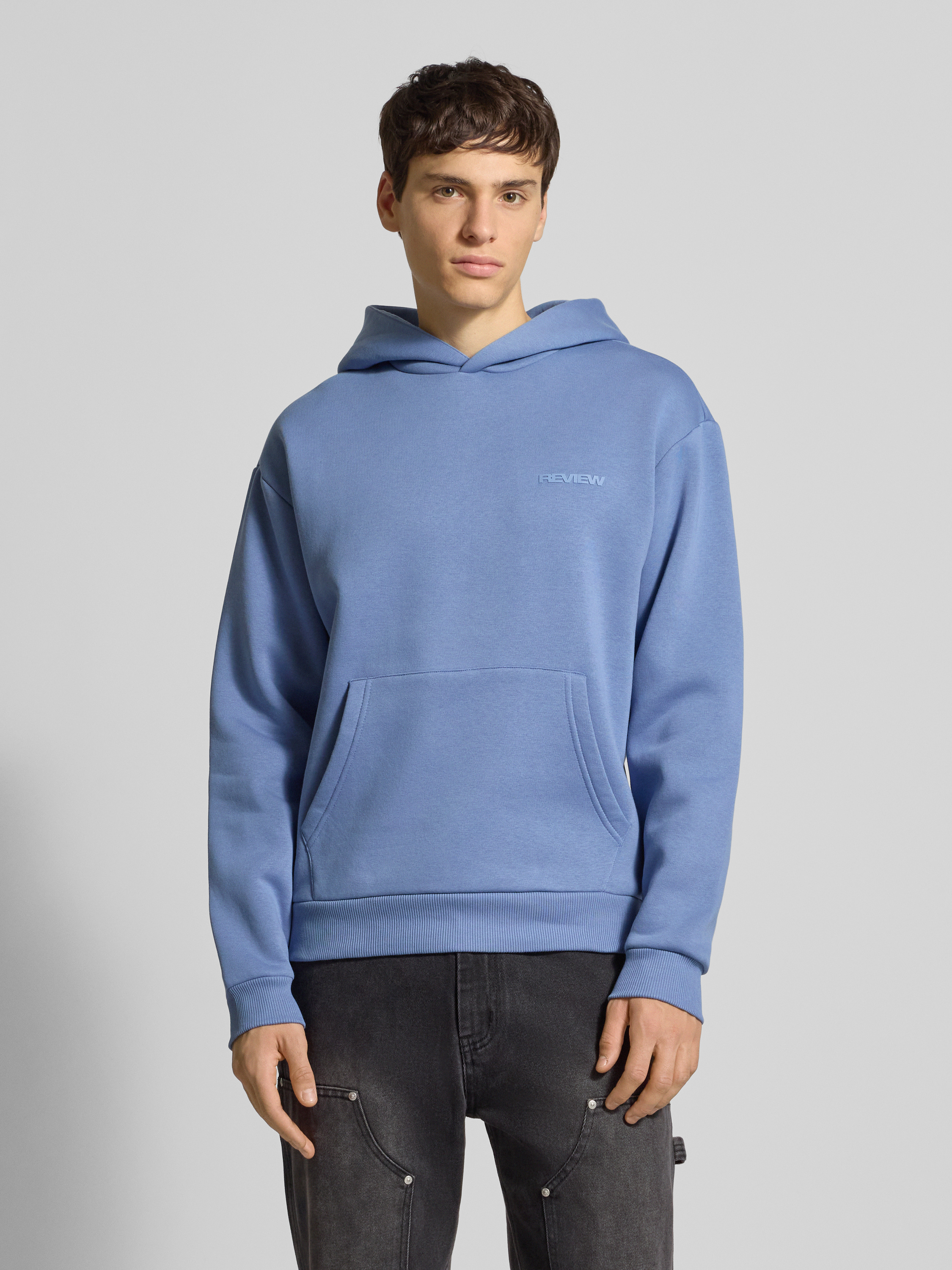 Der Herren Hoodie von REVIEW fällt durch seinen lockeren Schnitt angenehm lässig aus und sorgt so für ein entspanntes Tragegefühl im Alltag. Dank des Baumwoll-Mix fühlt sich das Material weich auf der Haut an und eignet sich für verschiedenste Gelegenheiten. Die Kapuze, der Label-Print sowie die Känguru-Tasche runden das Design praktisch ab.