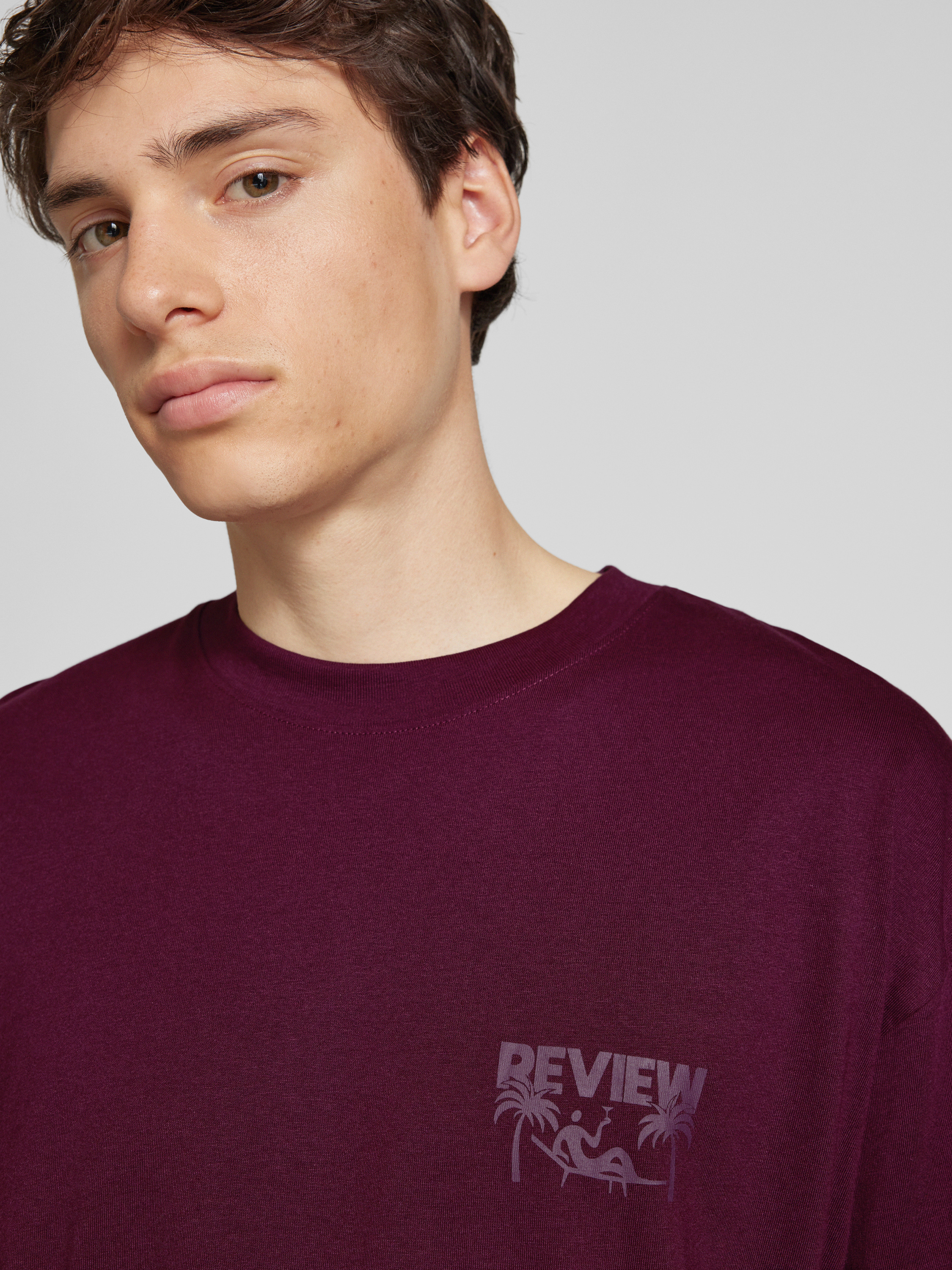 REVIEWOversized T-Shirt mit Label-Print in pflaume