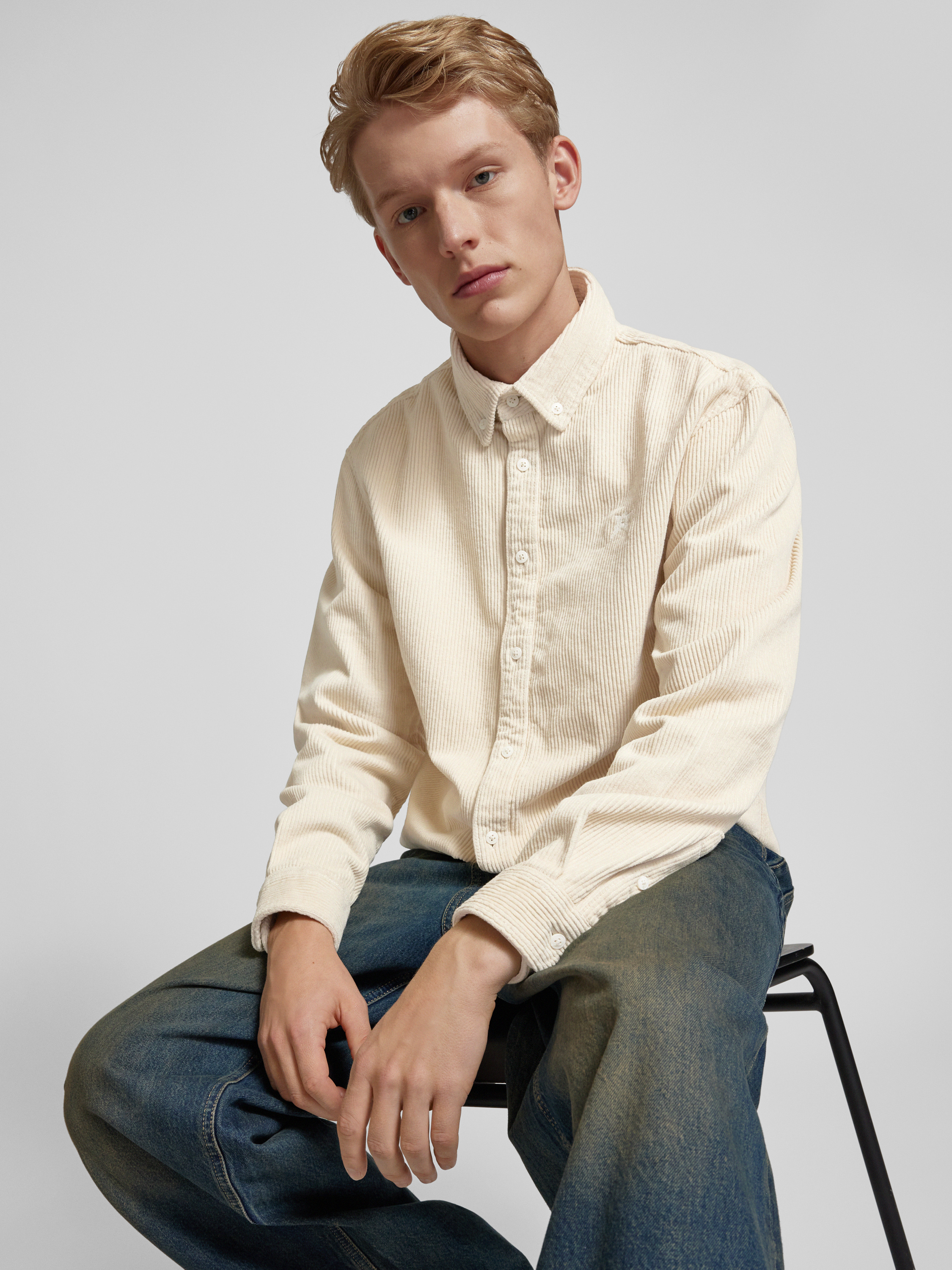 REVIEWRegular Fit Cordhemd mit Button-Down-Kragen in ecru
