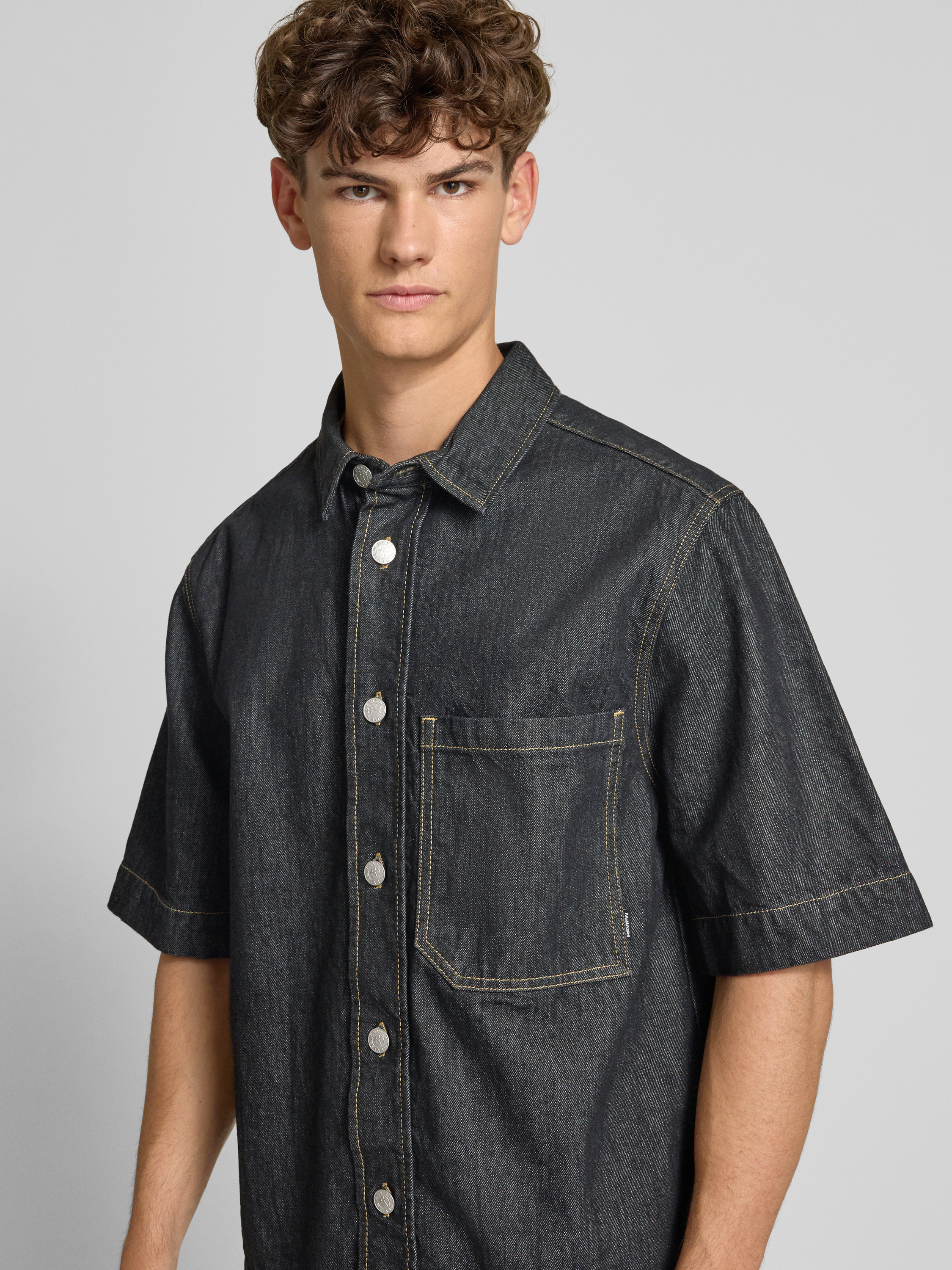 Das Herren Jeanshemd von REVIEW besticht durch seine lässige Regular Fit Passform, die angenehme Bewegungsfreiheit bietet. Aus reiner Baumwolle gefertigt, sorgt es für ein angenehmes Tragegefühl. Der klassische Kentkragen und die praktische Brusttasche runden das kurzärmelige Design harmonisch ab.