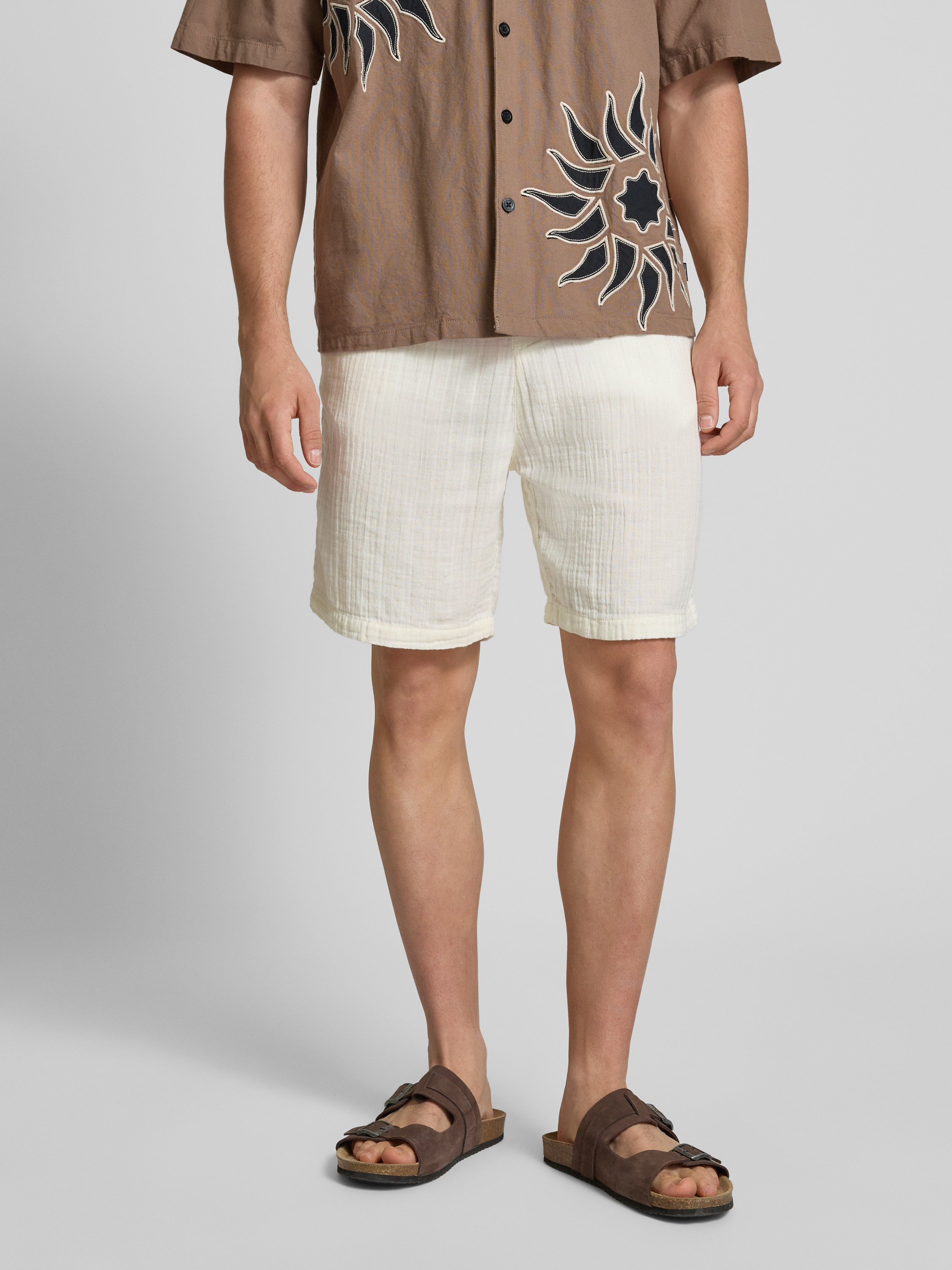 Die Herren Shorts von REVIEW im Regular Fit bringen durch die Crinkle-Optik und den lockeren Schnitt eine entspannte Note in den Alltag. Aus reiner Baumwolle gefertigt, fühlt sich der leichte Musselin angenehm auf der Haut an. Durch den flexiblen Bund sitzt die Shorts bequem.