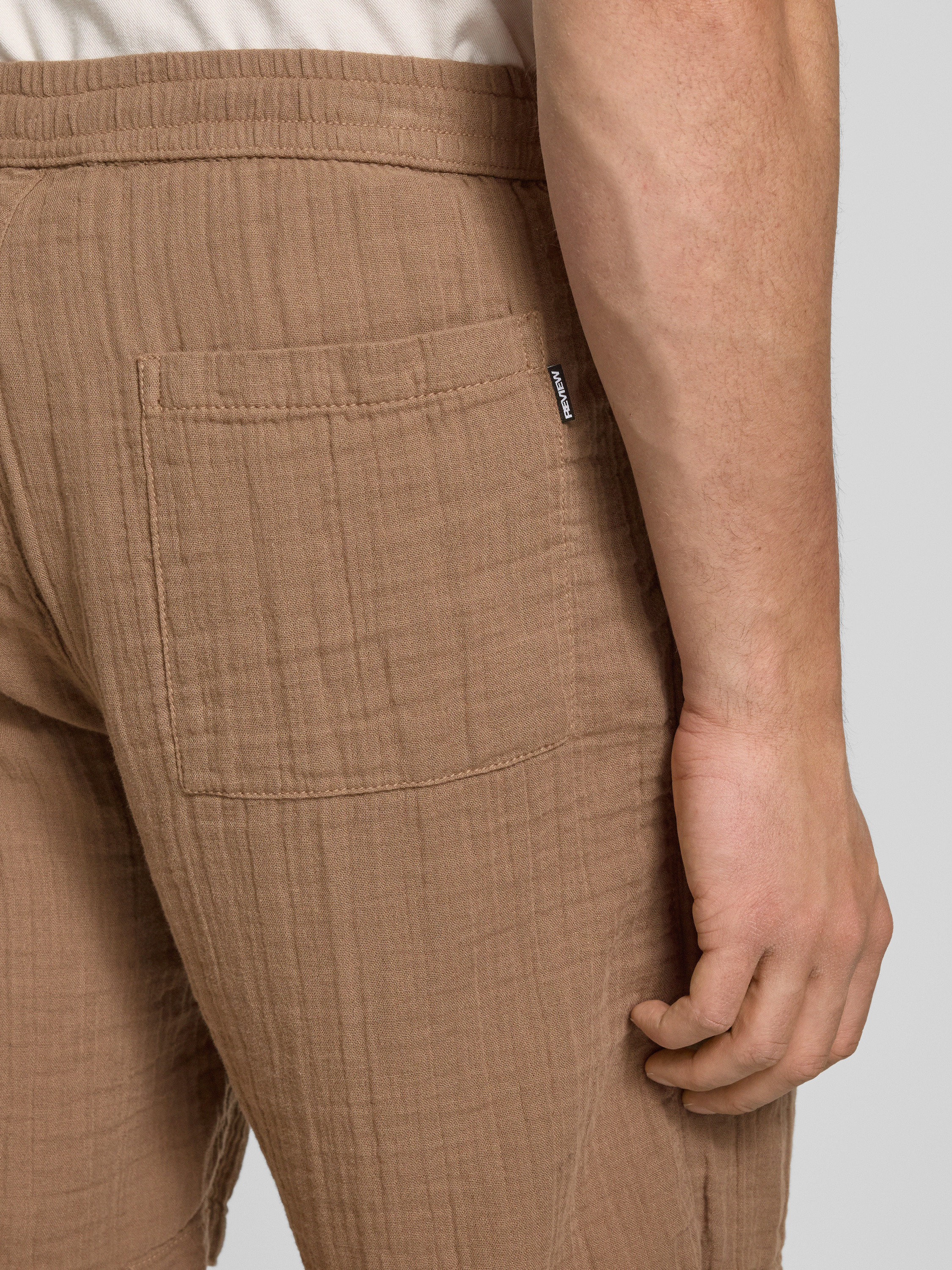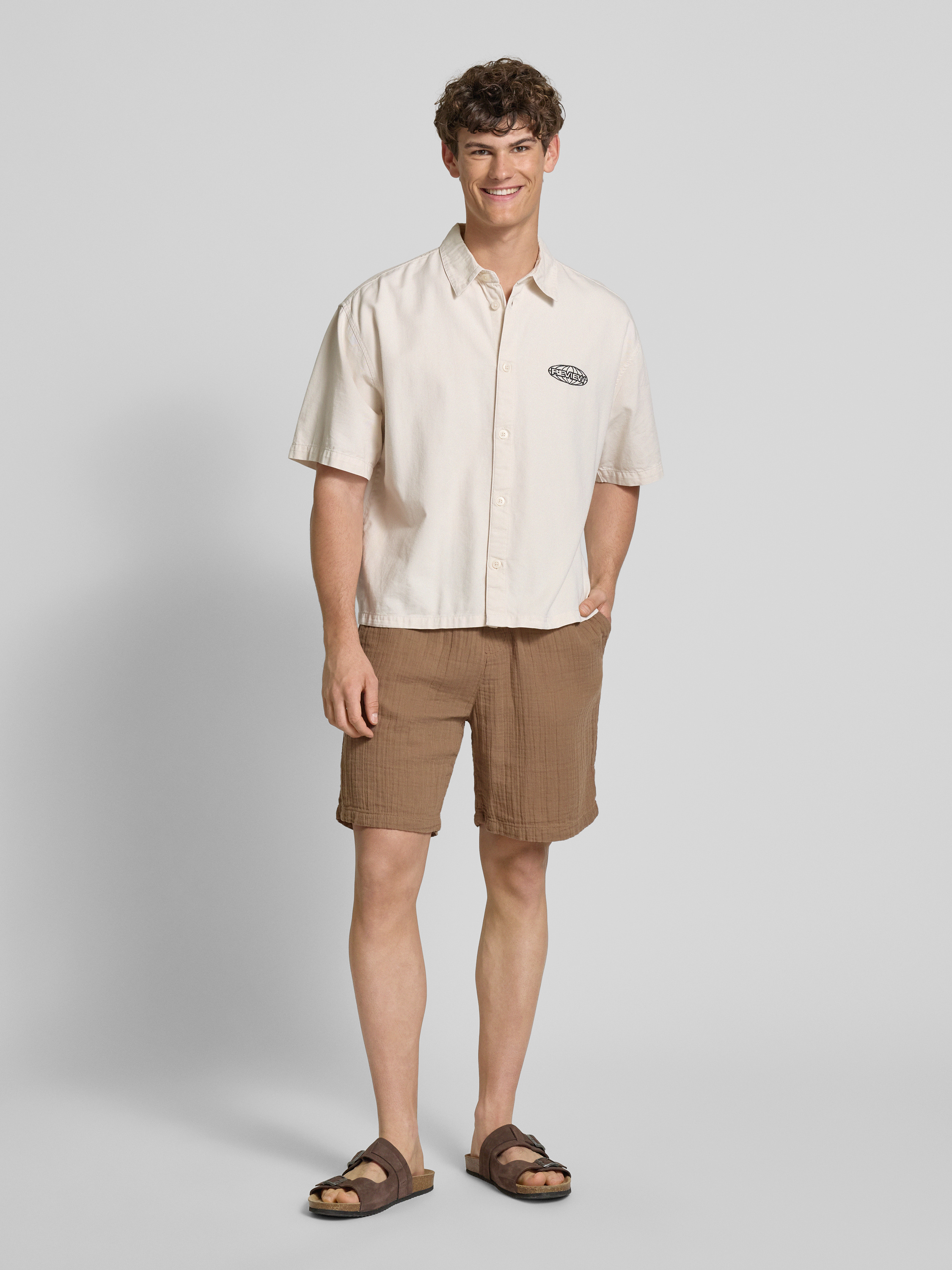 Die Herren Shorts von REVIEW im Regular Fit bringen durch die Crinkle-Optik und den lockeren Schnitt eine entspannte Note in den Alltag. Aus reiner Baumwolle gefertigt, fühlt sich der leichte Musselin angenehm auf der Haut an. Durch den flexiblen Bund sitzt die Shorts bequem.