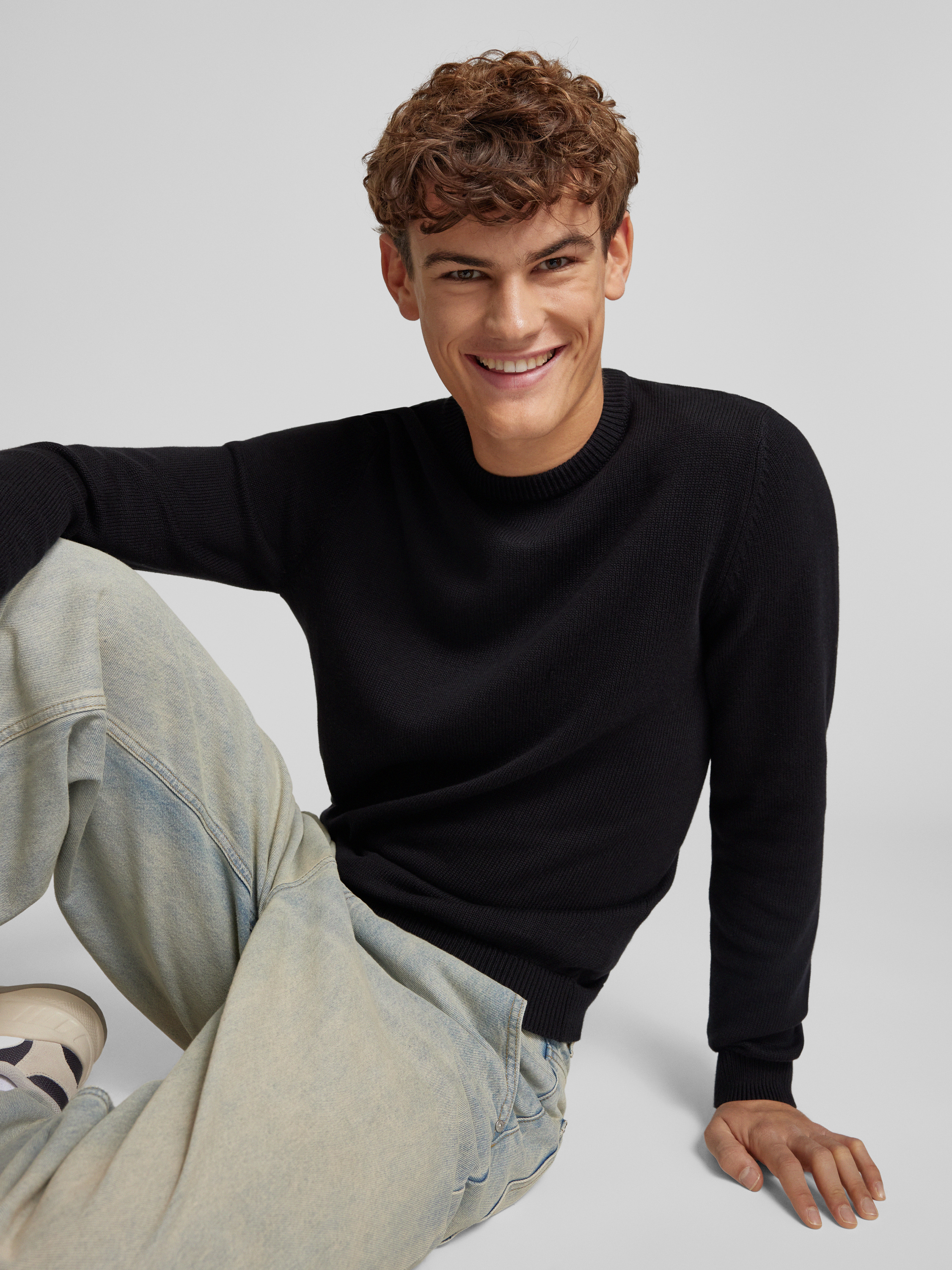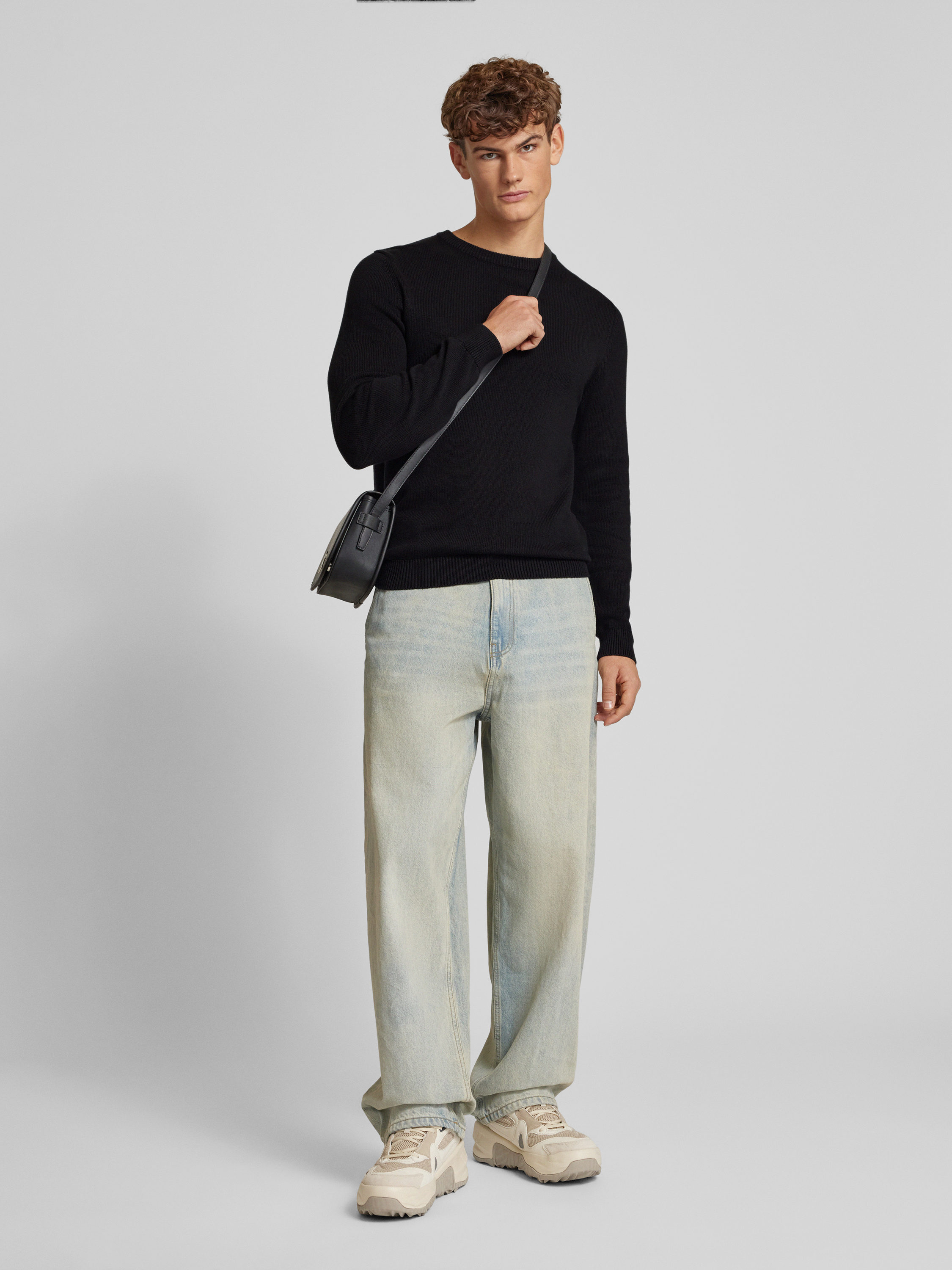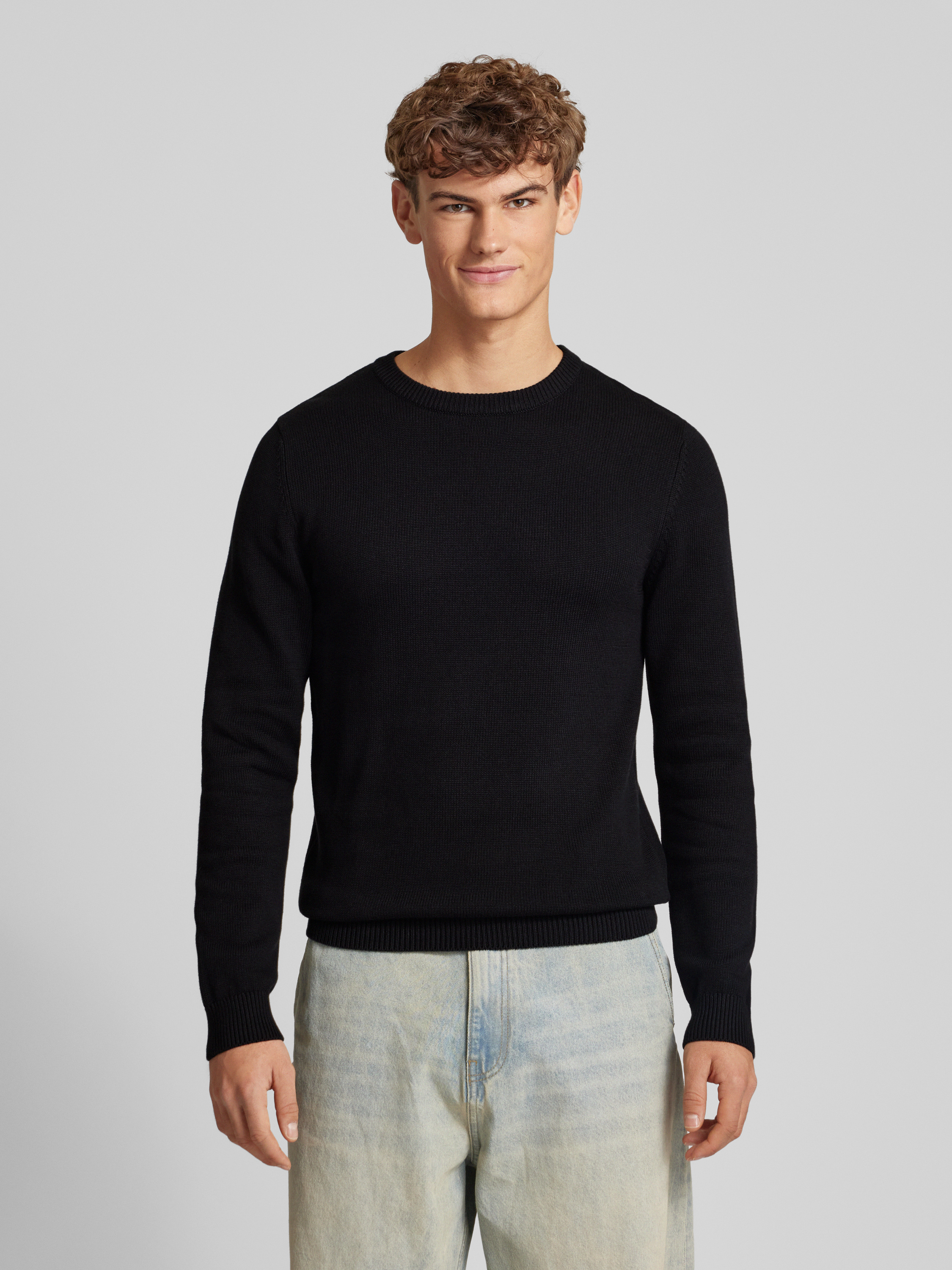 REVIEWRegular Fit Strickpullover aus reiner Baumwolle in black