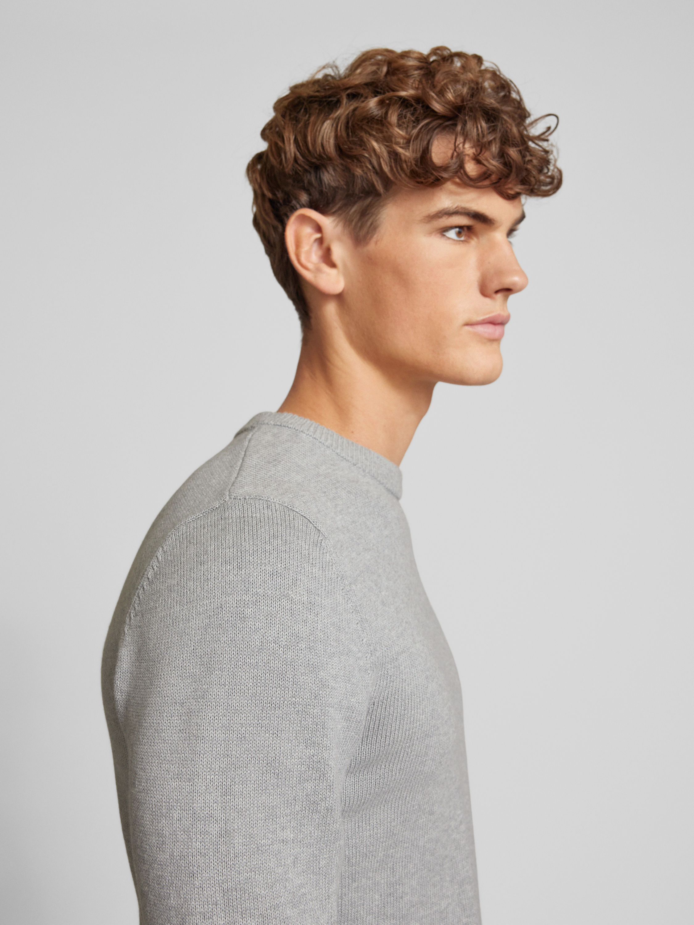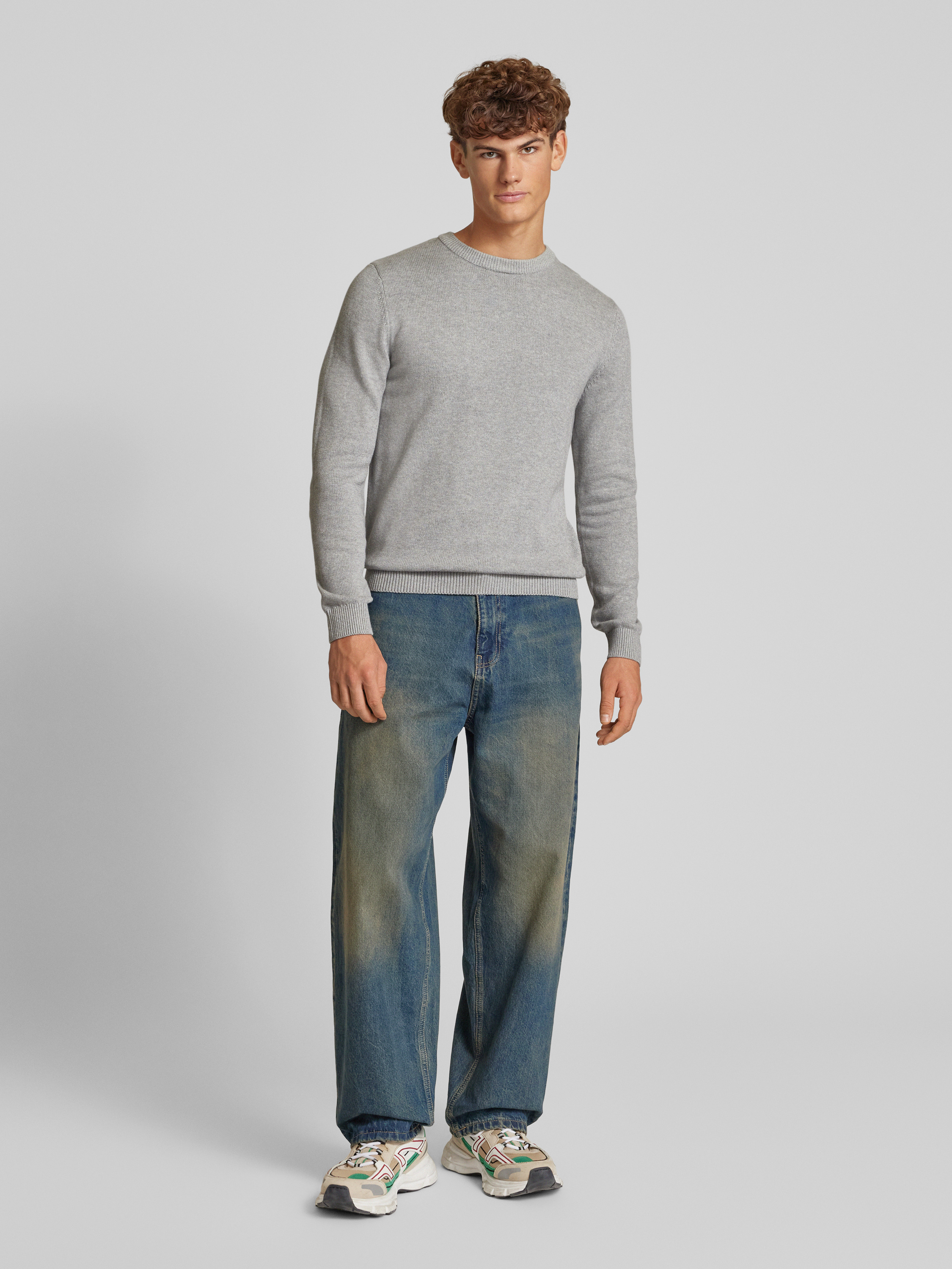 REVIEWRegular Fit Strickpullover aus reiner Baumwolle in hellgrau melange