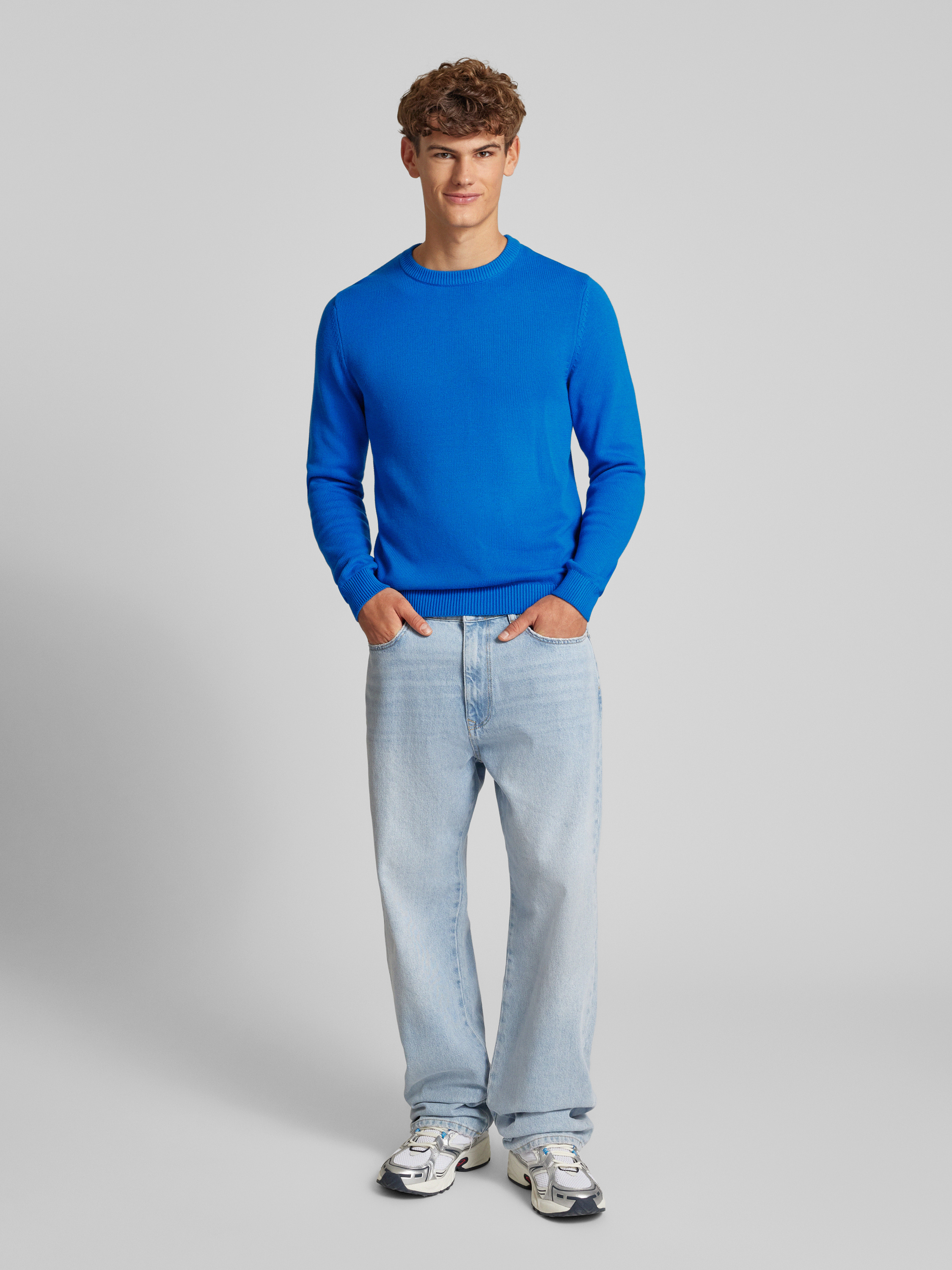 REVIEWRegular Fit Strickpullover aus reiner Baumwolle in royal