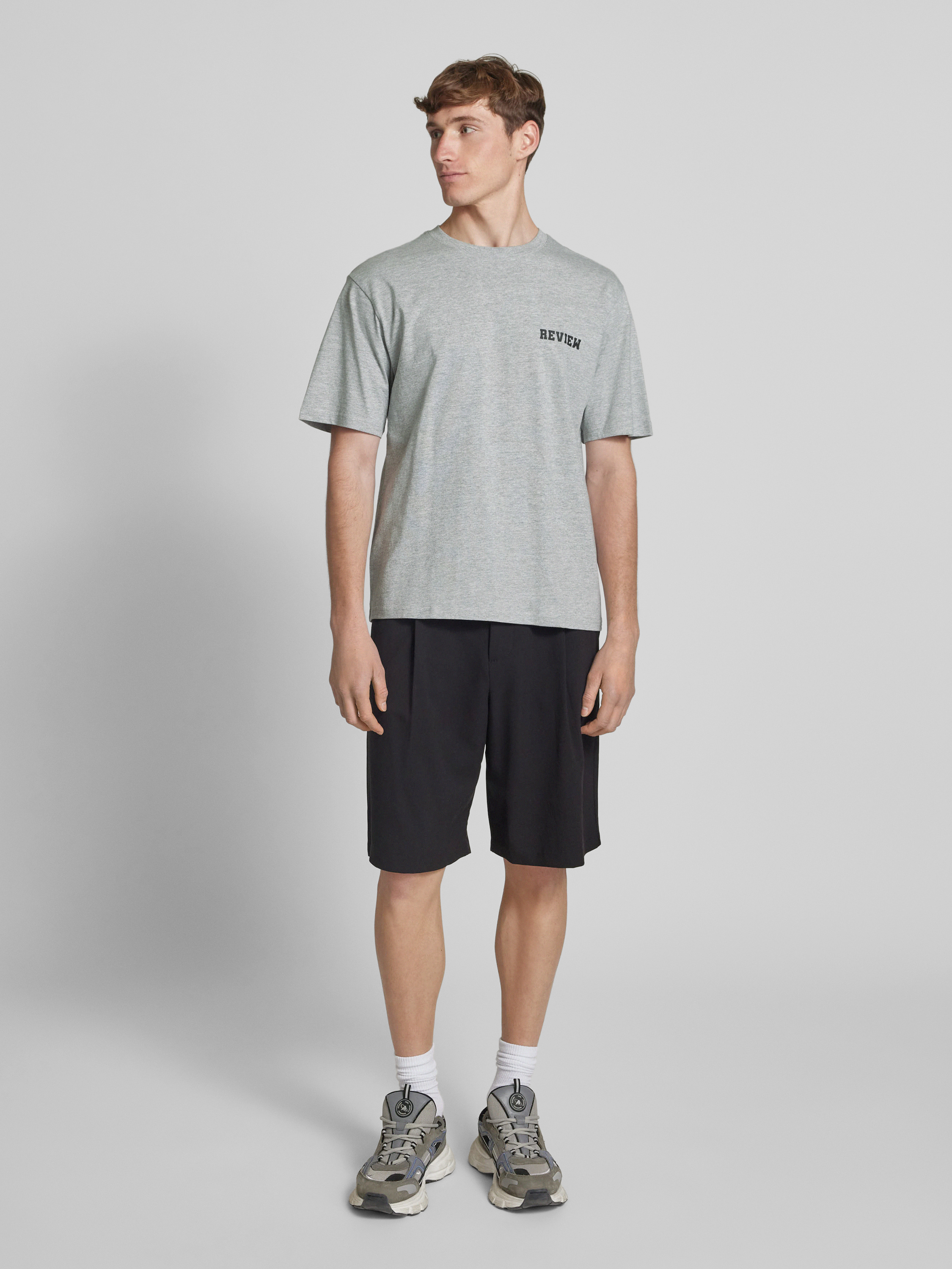 REVIEWRegular Fit T-Shirt aus Baumwoll-Viskose-Mix in hellgrau melange