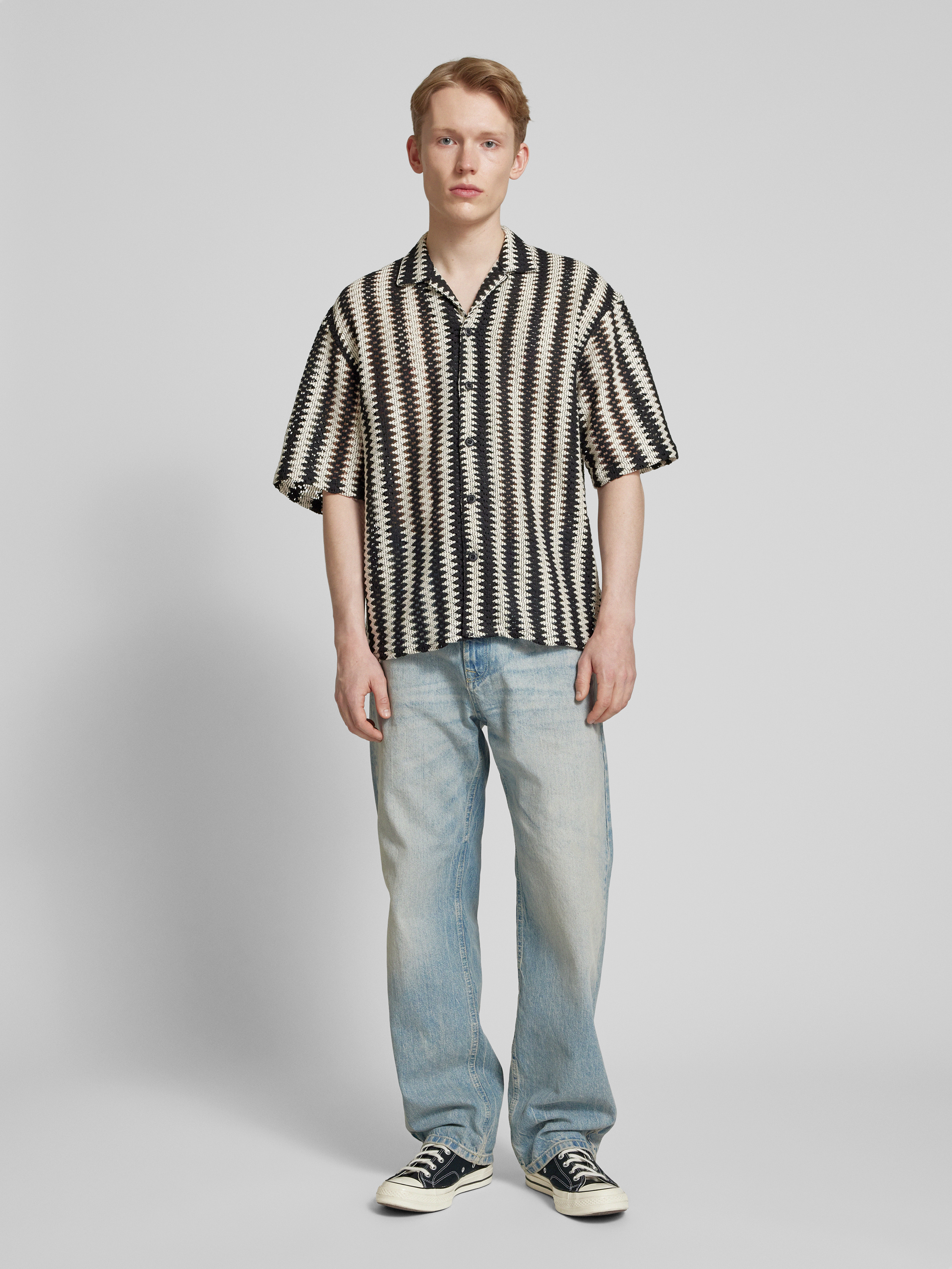 Das Relaxed Fit Freizeithemd von REVIEW kombiniert dank seines Baumwoll-Mixes angenehmen Tragekomfort mit einer lockeren Passform. Der Resortkragen und das dezente Strukturmuster verleihen dem Hemd eine entspannte Eleganz, die sich ideal für legere Anlässe eignet. Die durchgehende Knopfleiste ermöglicht eine einfache Anpassung an individuelle Vorlieben.