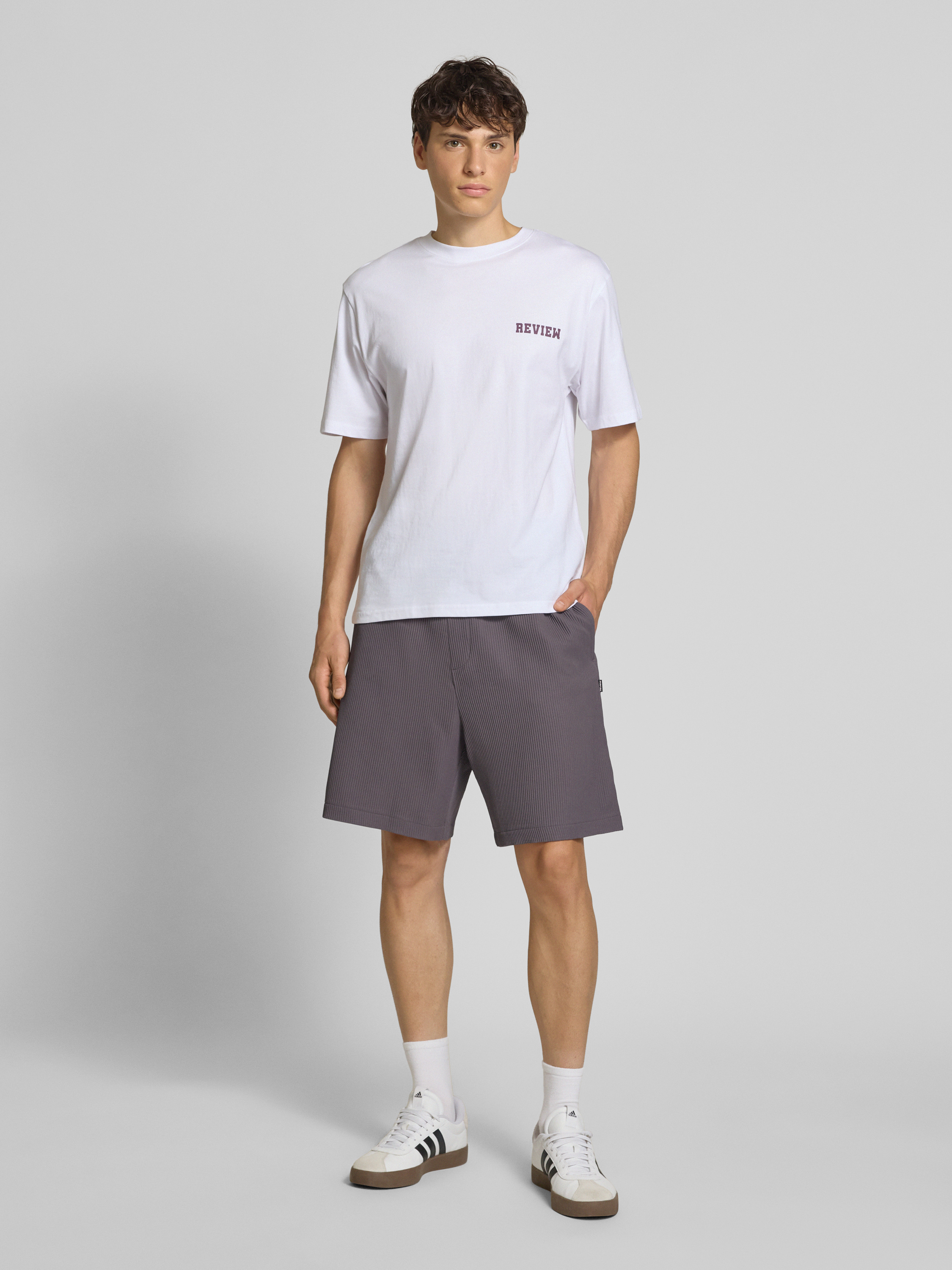 Die Herren Shorts von Review fallen durch ihr markantes Strukturmuster auf, das dem klassischen Regular Fit eine moderne Note verleiht. Dank Material-Mix mit Stretch-Anteil passt sich die Shorts angenehm an und bietet Bewegungsfreiheit im Alltag. Mit elastischem Bund und Tunnelzug lässt sich die Weite unkompliziert anpassen.