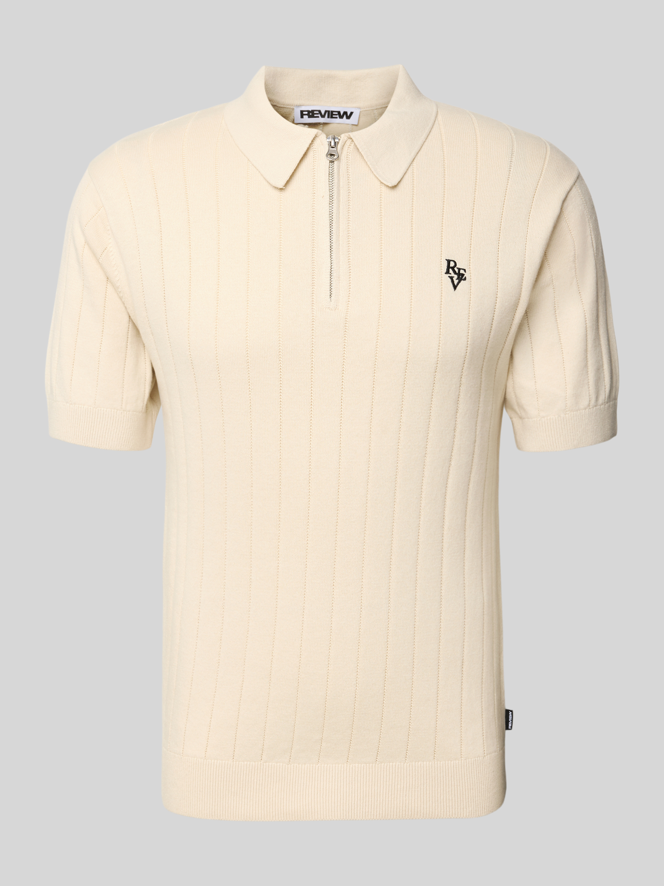 REVIEWSlim Fit Poloshirt mit Label-Stitching in ecru