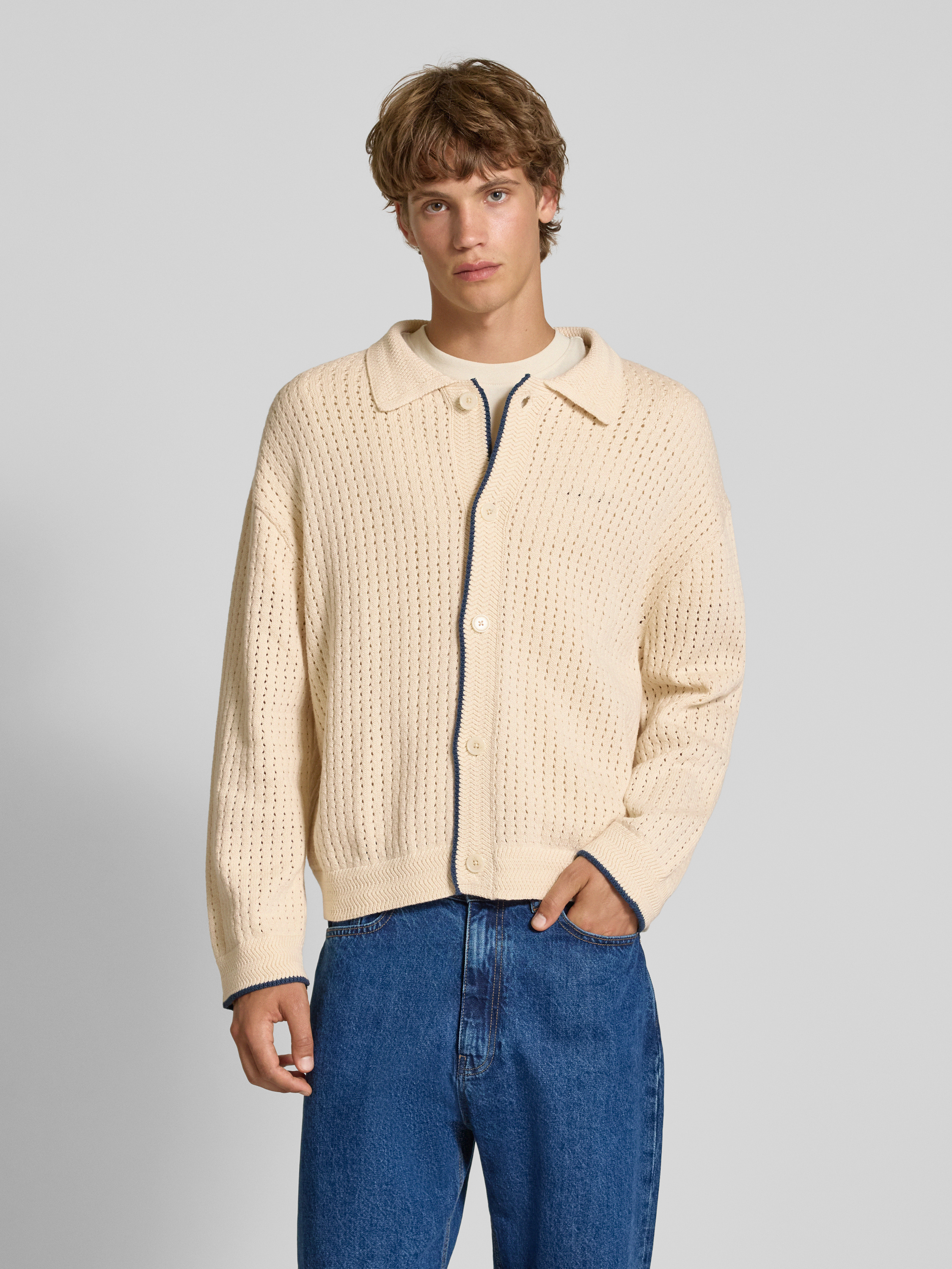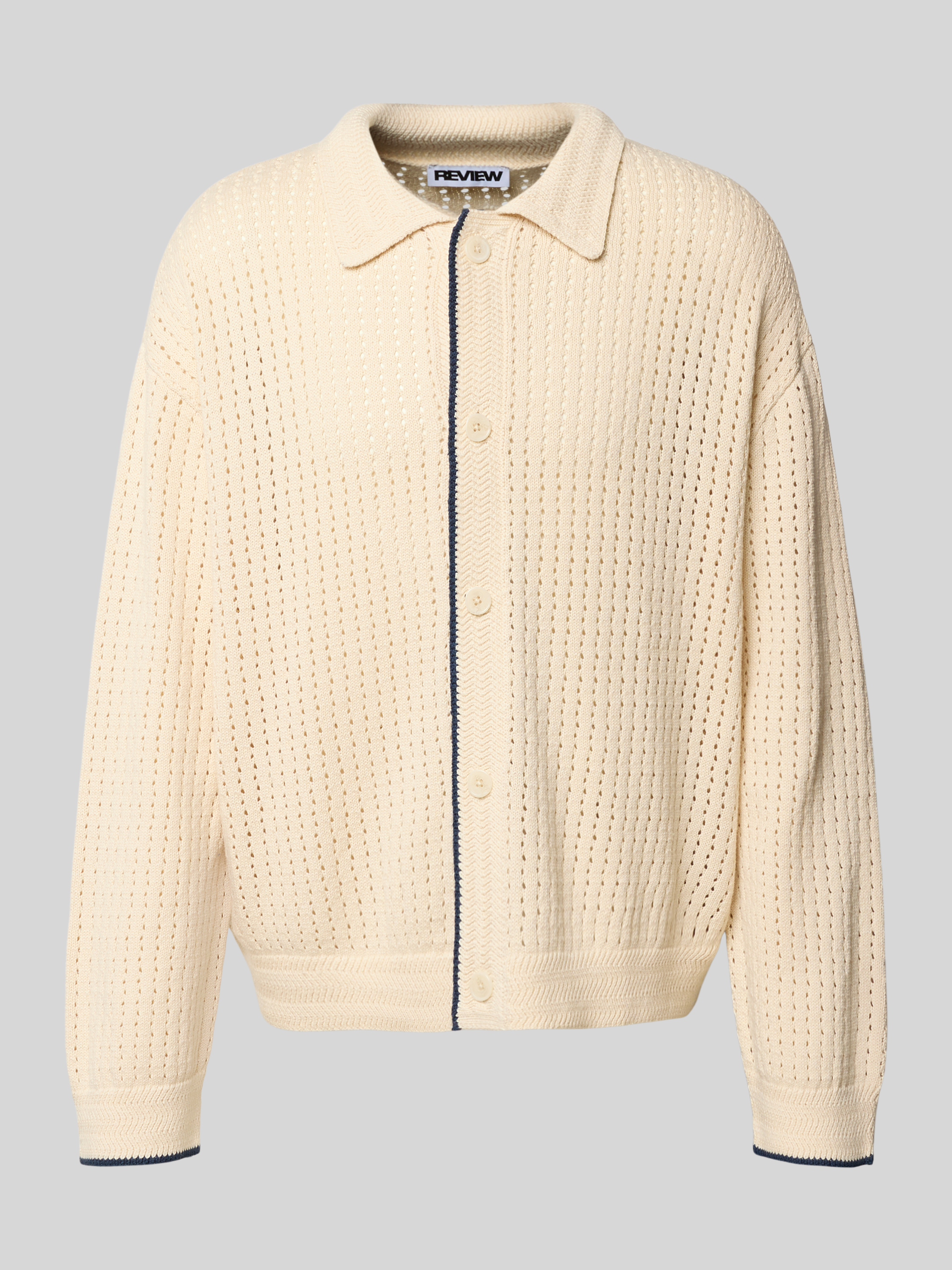 Die Strickjacke von REVIEW, aus reiner Baumwolle gefertigt, überzeugt durch ihren klassischen Polokragen, der einen Hauch von Eleganz verleiht. Der Regular Fit sorgt für eine bequeme Passform, die im Alltag ebenso wie zu besonderen Anlässen geschätzt wird. Durch die dezente Knopfleiste wird ein zeitloser Look geschaffen.