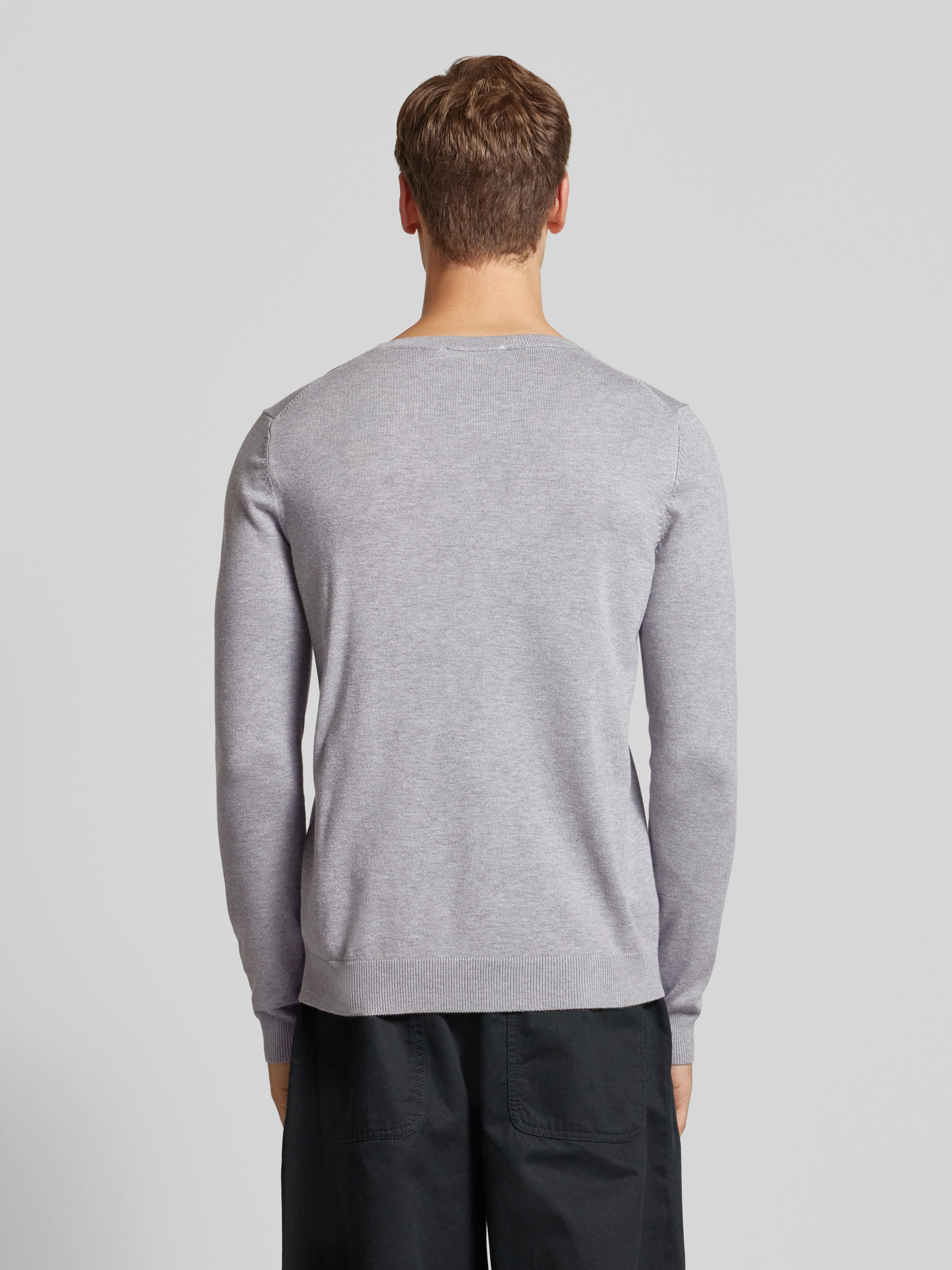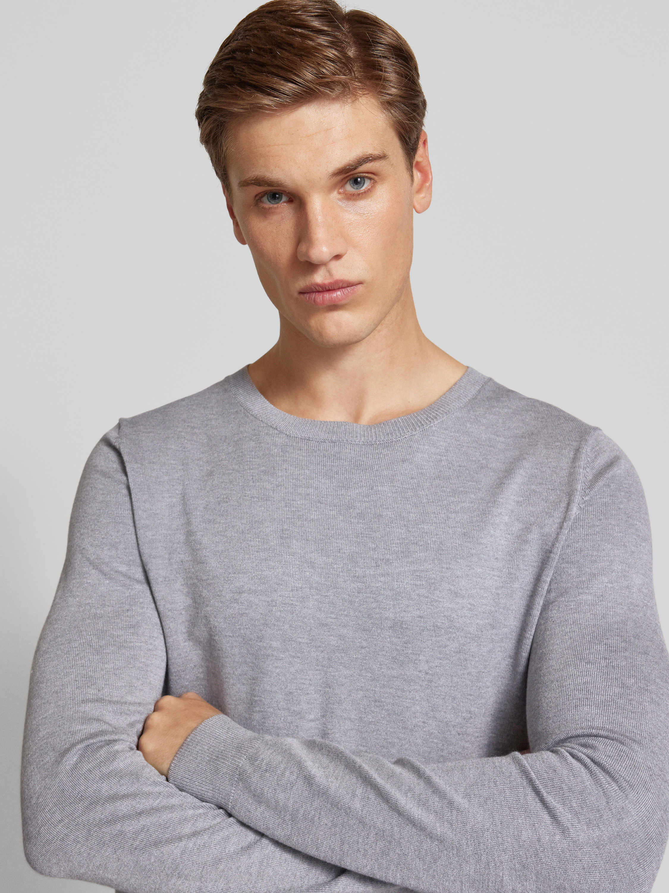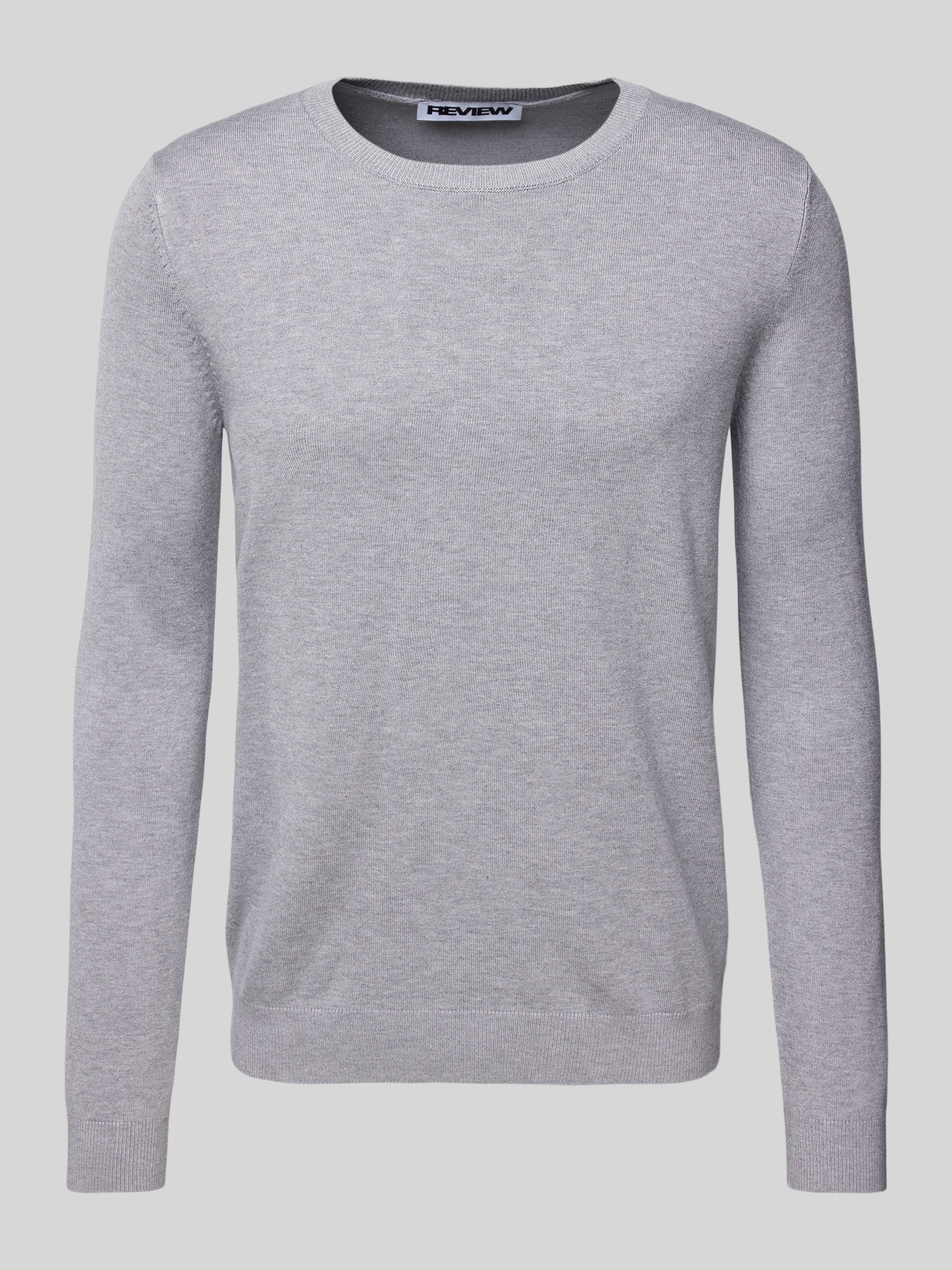 REVIEWStrickpullover aus Viskose-Mix mit Rundhalsausschnitt in hellgrau melange