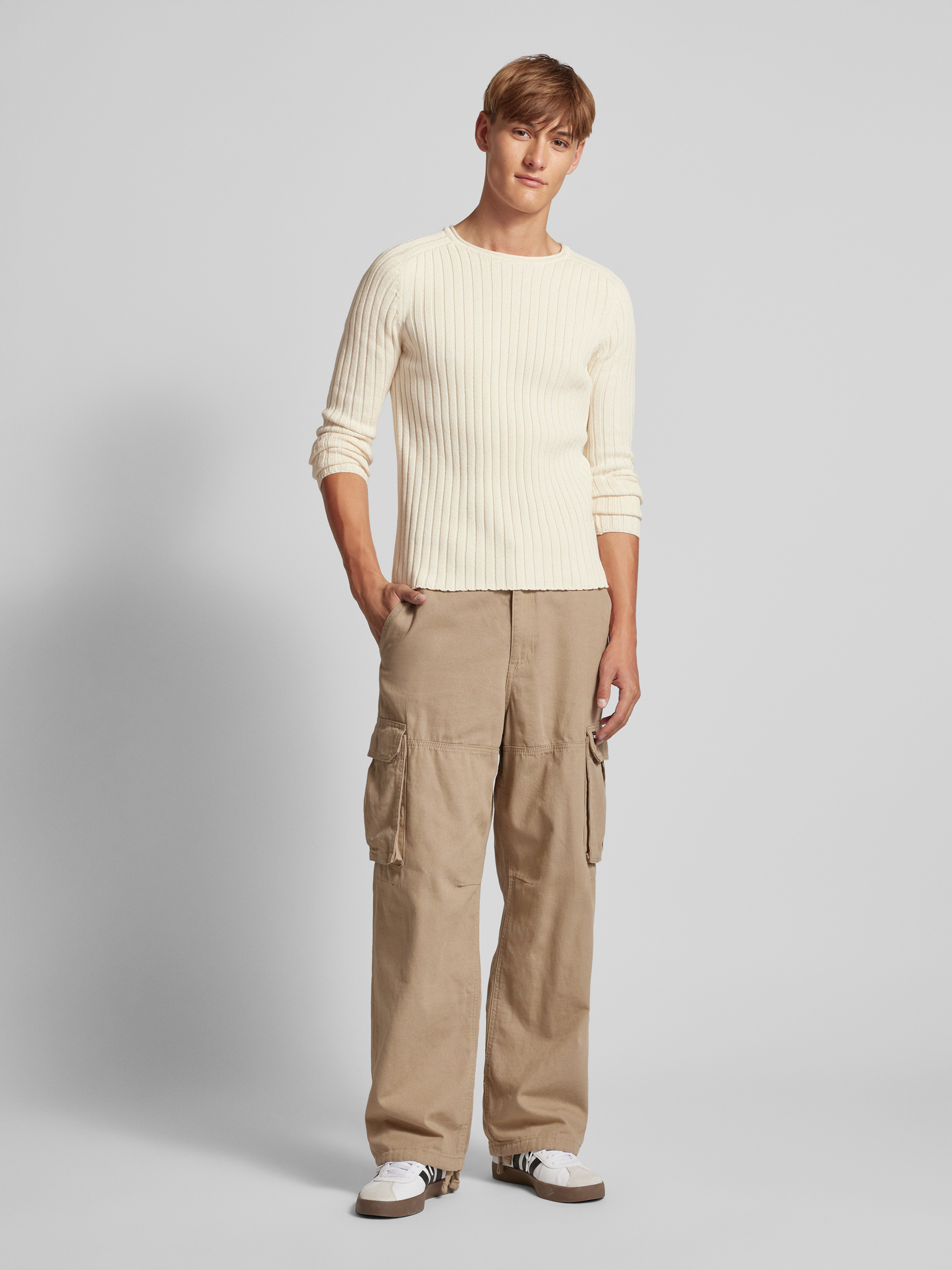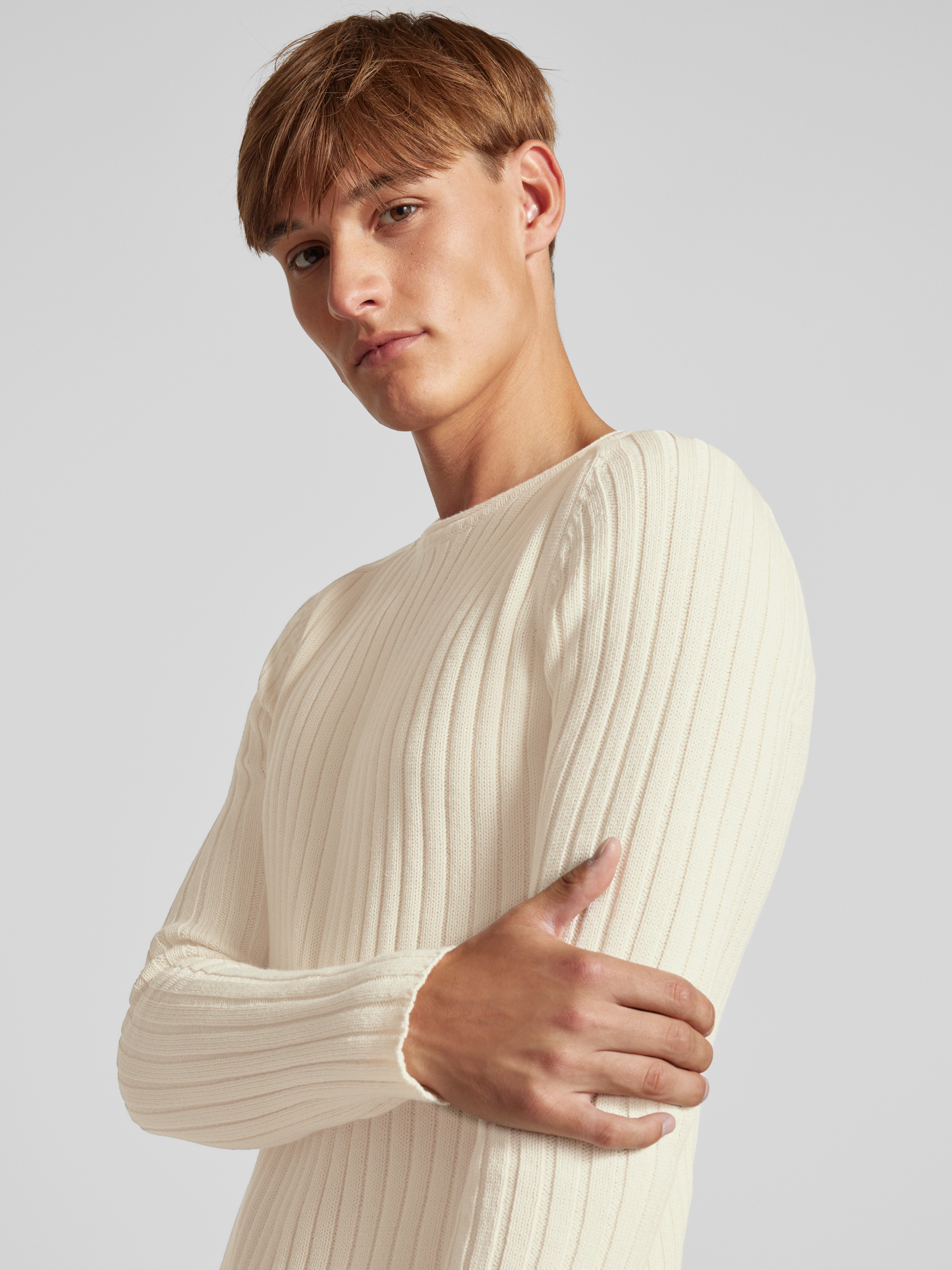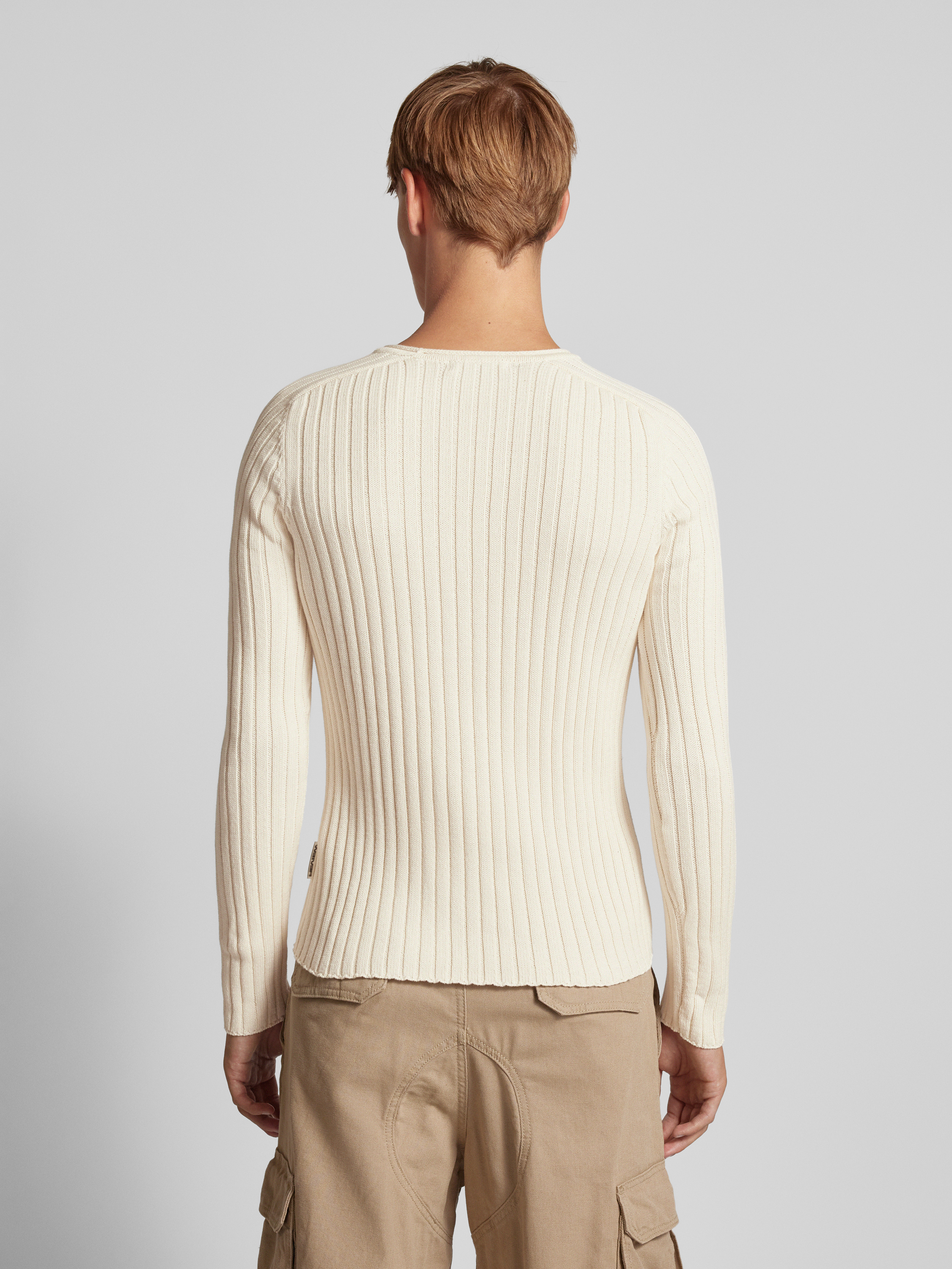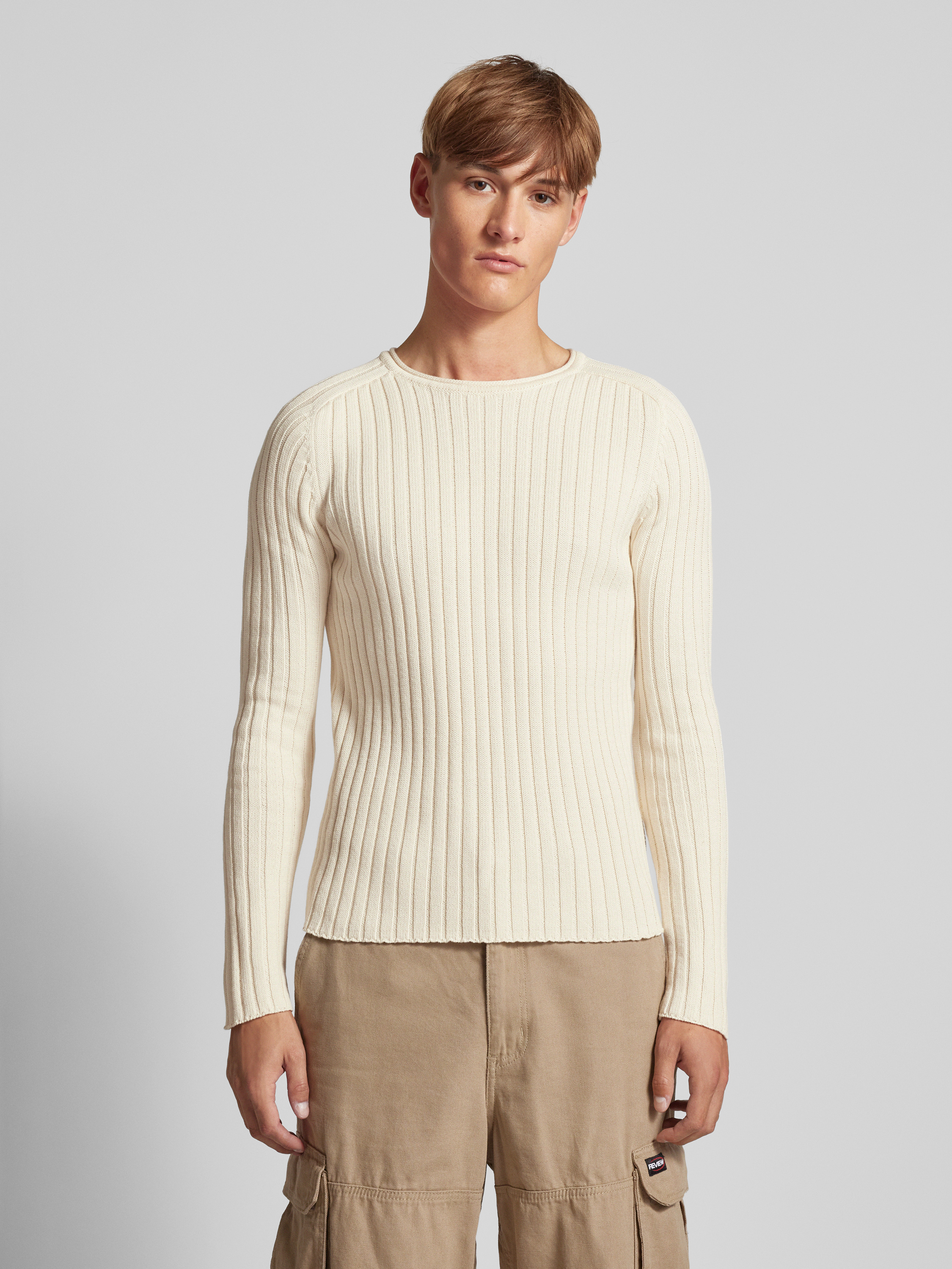 REVIEWStrickpullover mit geripptem Rundhalsausschnitt in ecru