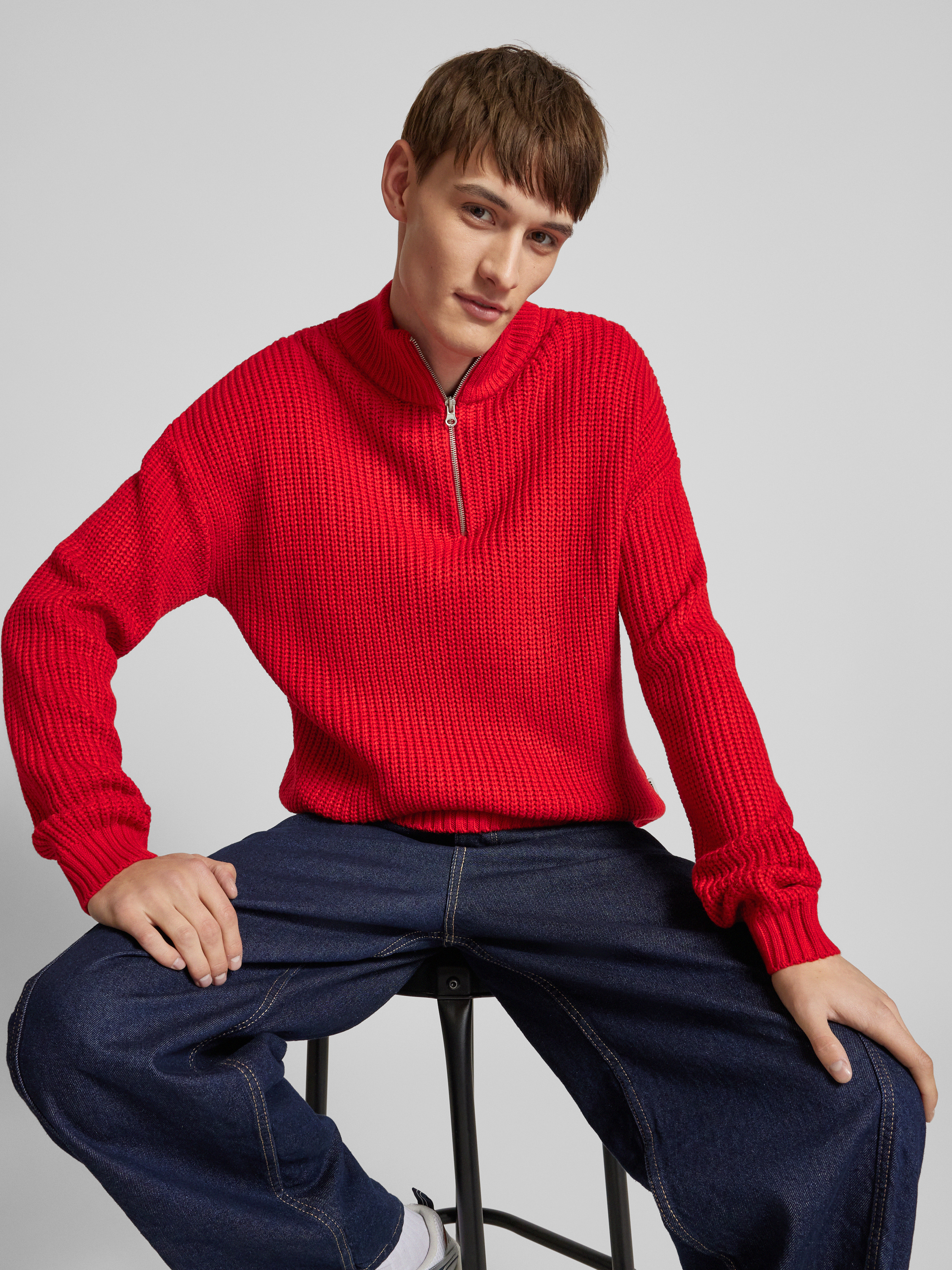 REVIEWStrickpullover mit gerippten Abschlüsse in rot