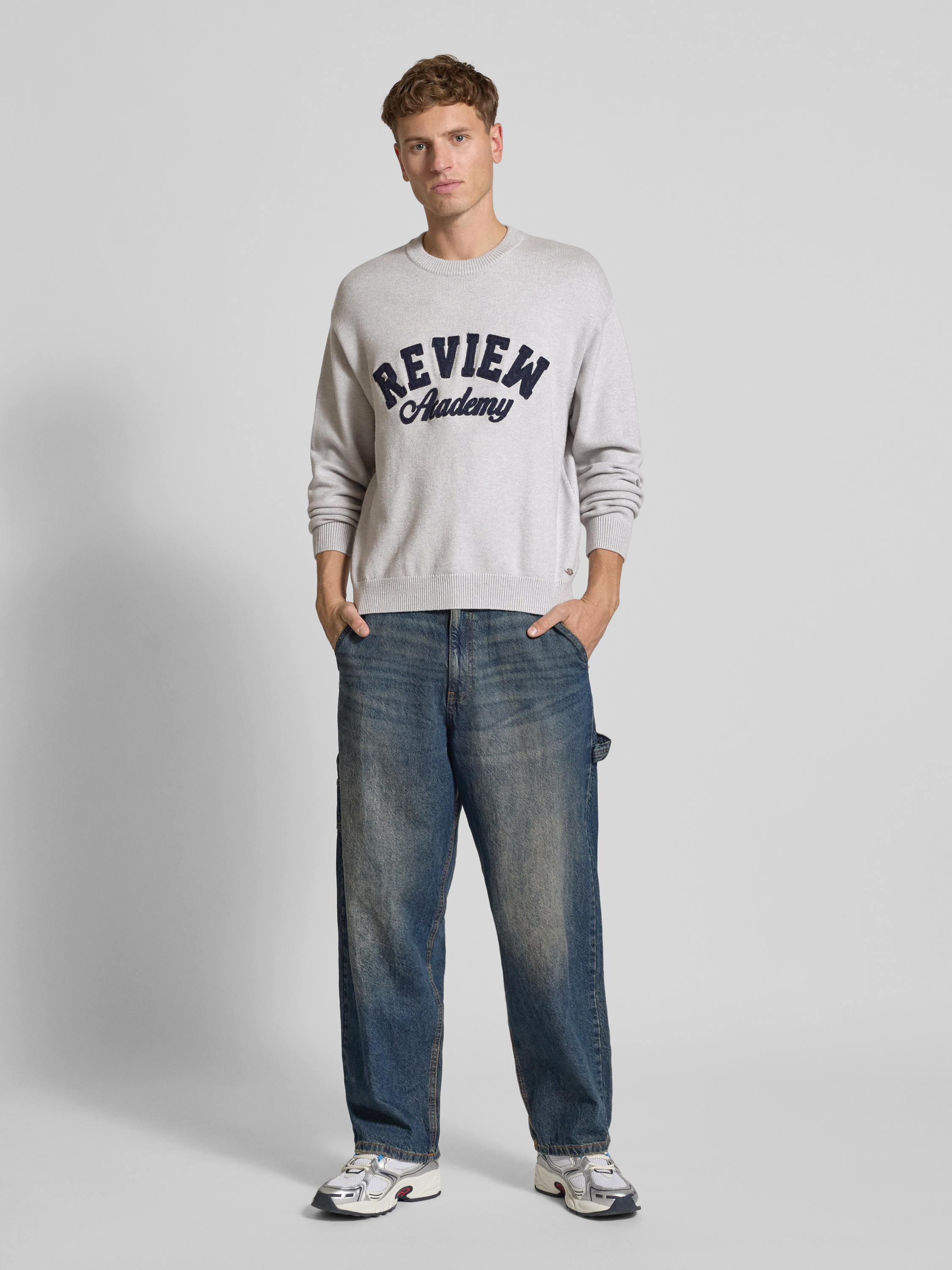 REVIEWStrickpullover mit gerippten Abschlüssen in hellgrau melange