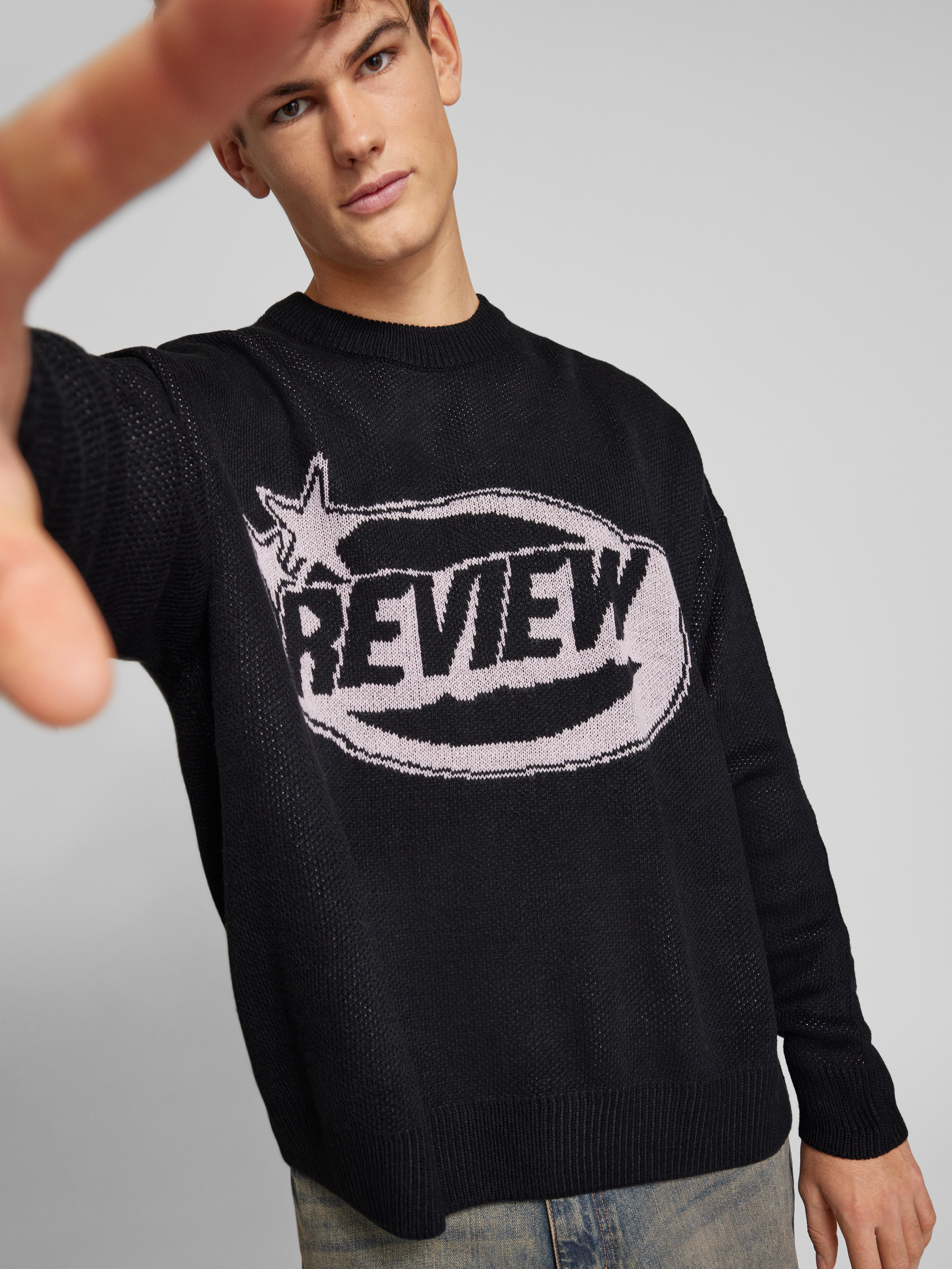 Der Strickpullover von REVIEW vereint einen lässigen Look mit einem komfortablen, lockeren Schnitt, der Bewegungsfreiheit bietet. Die gerippten Abschlüsse und der Rundhalsausschnitt sorgen für einen angenehmen Tragekomfort. Der markante Label-Print verleiht dem Design eine moderne Note.