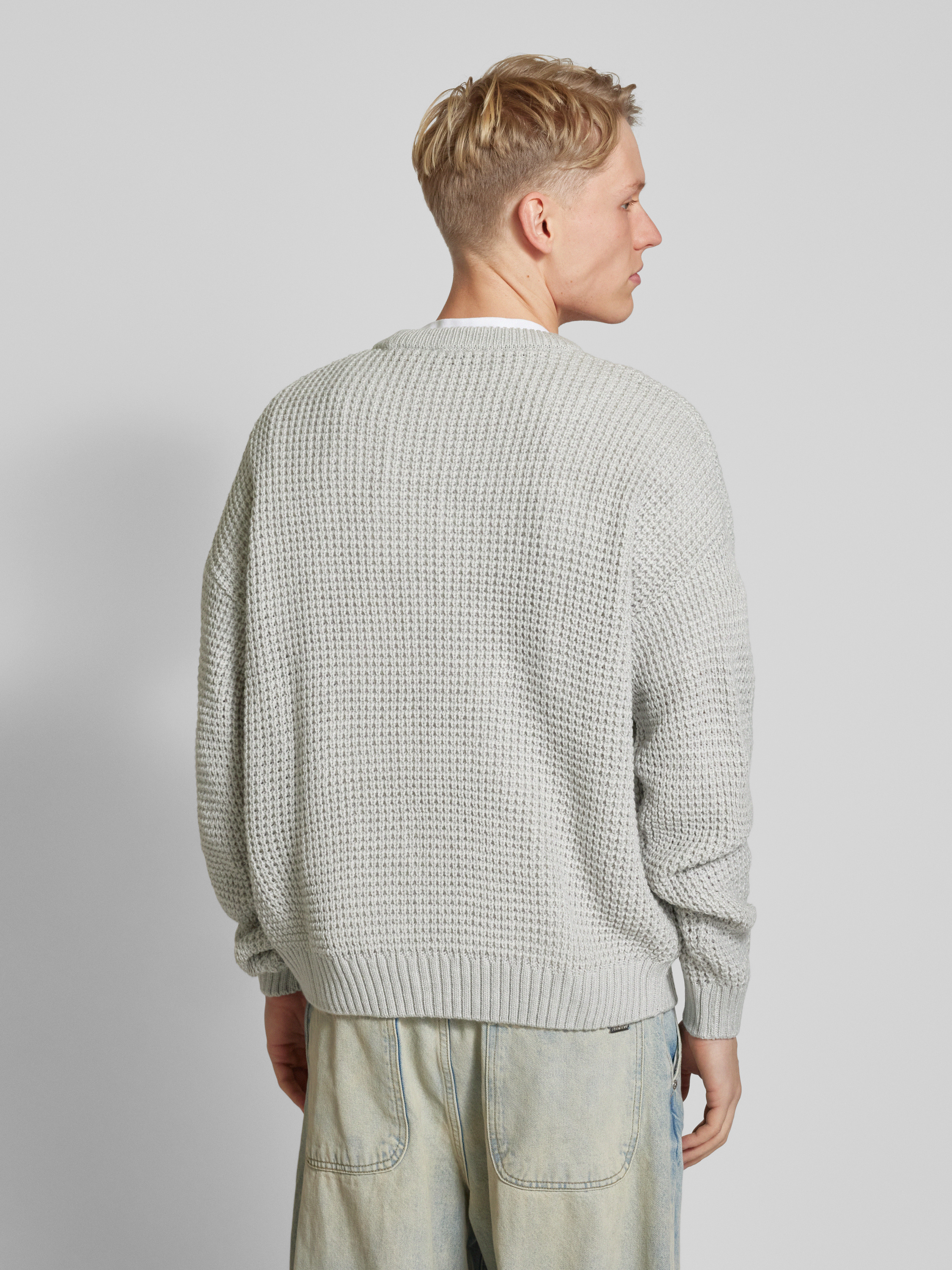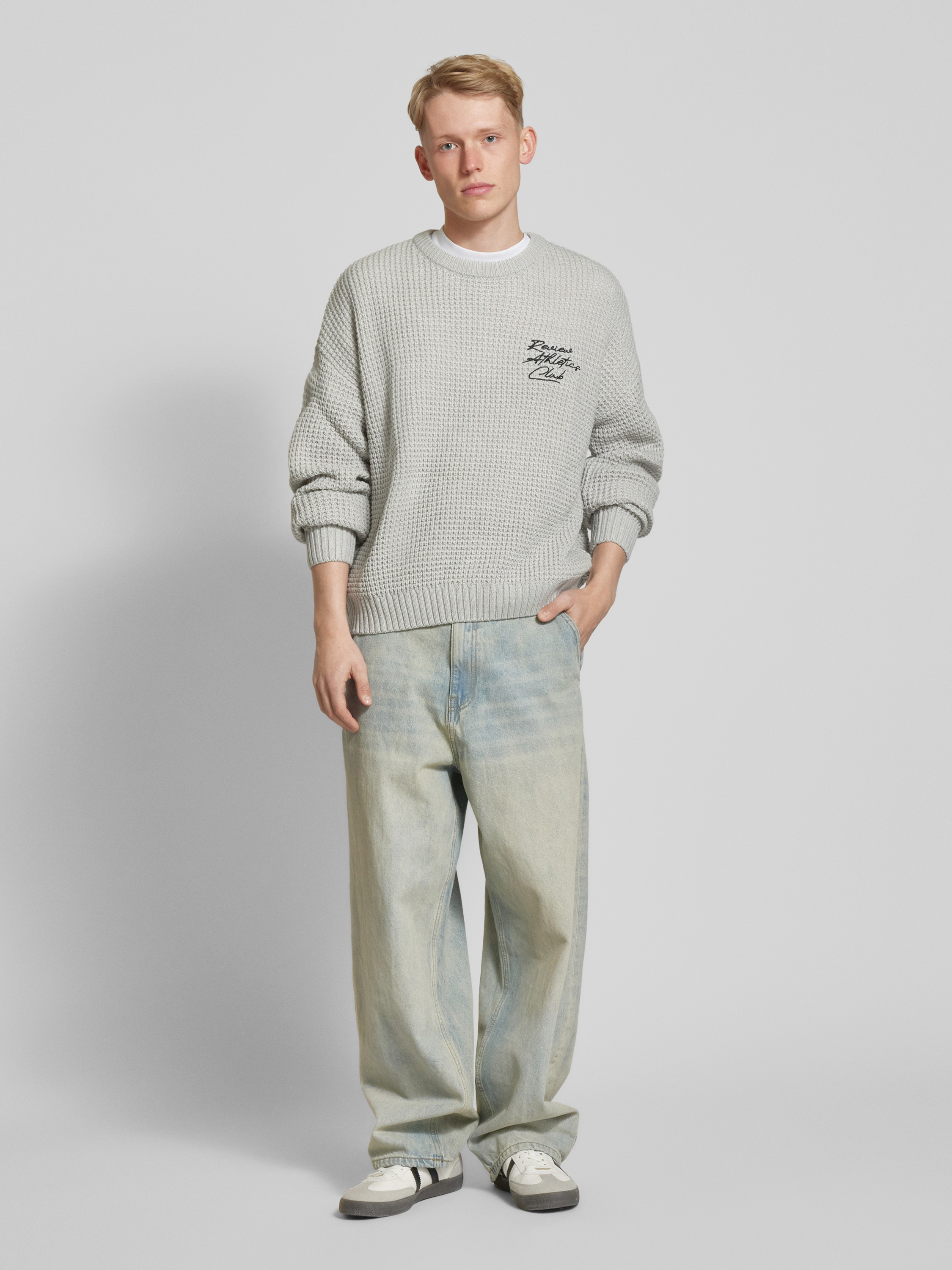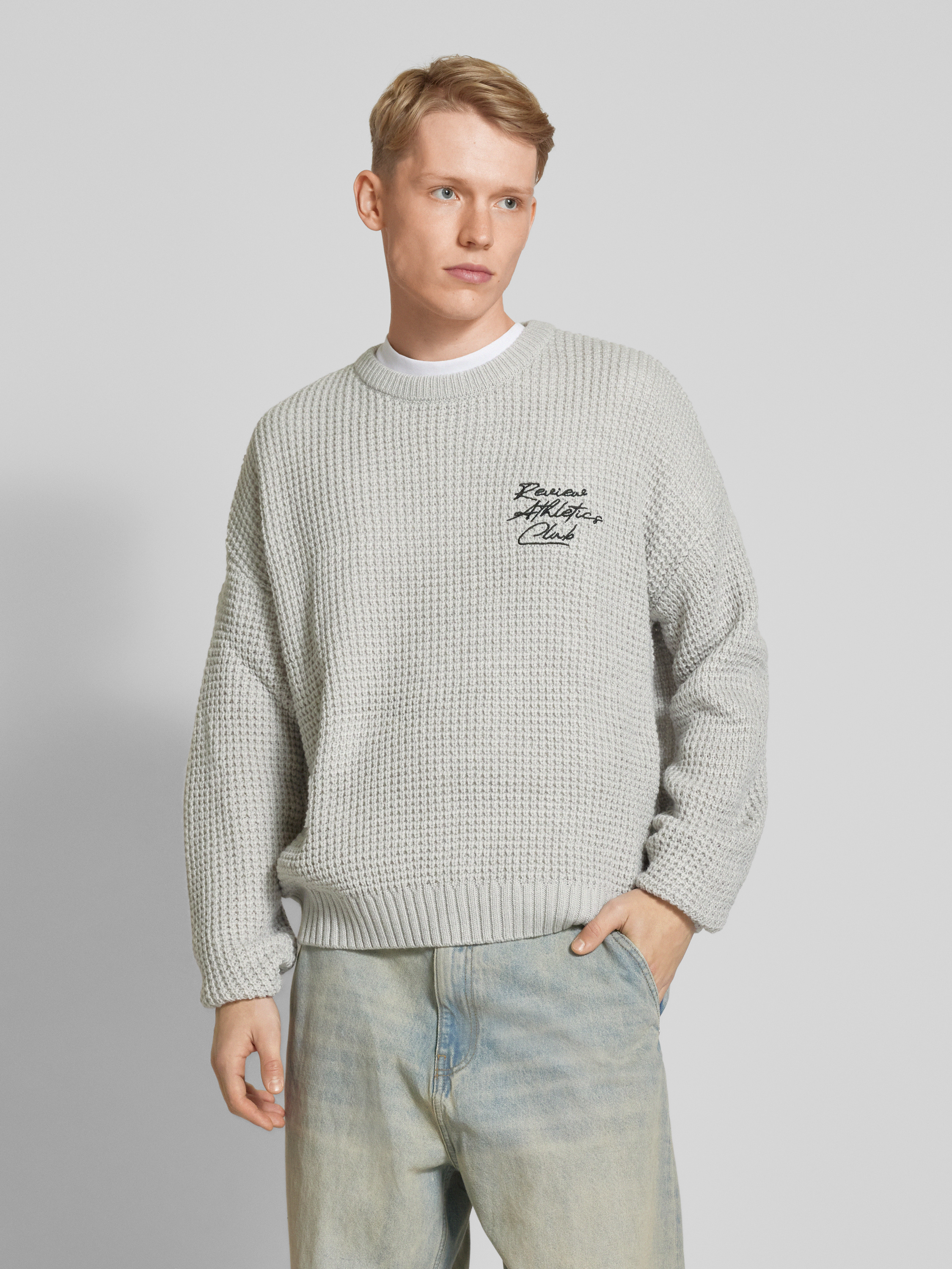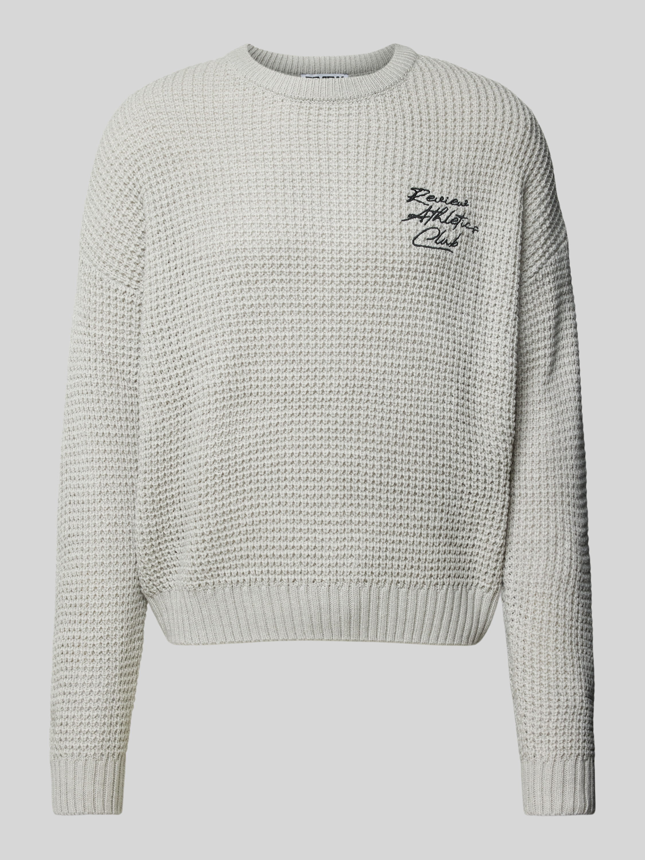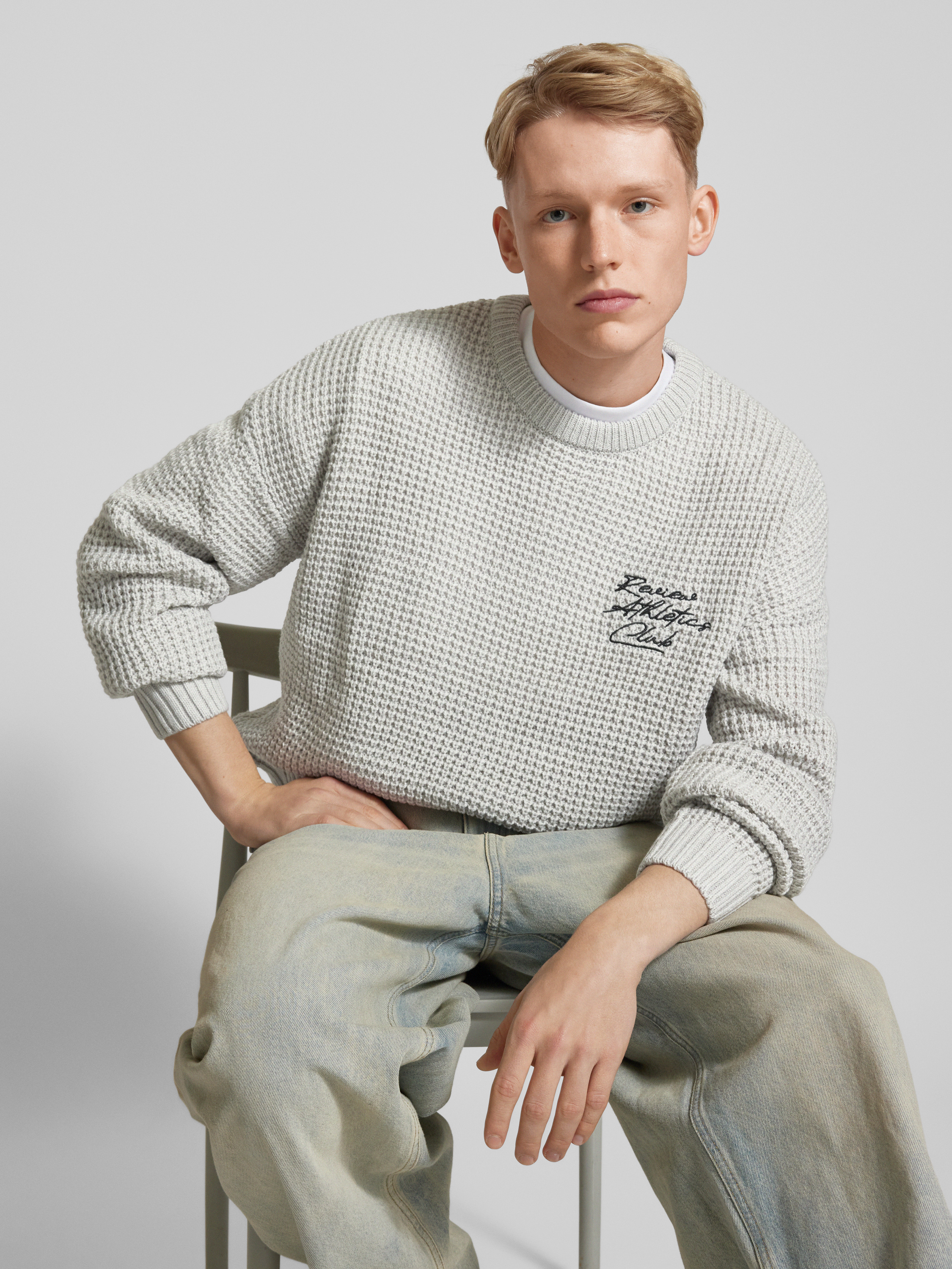REVIEWStrickpullover mit Label-Stitching in hellgrau melange