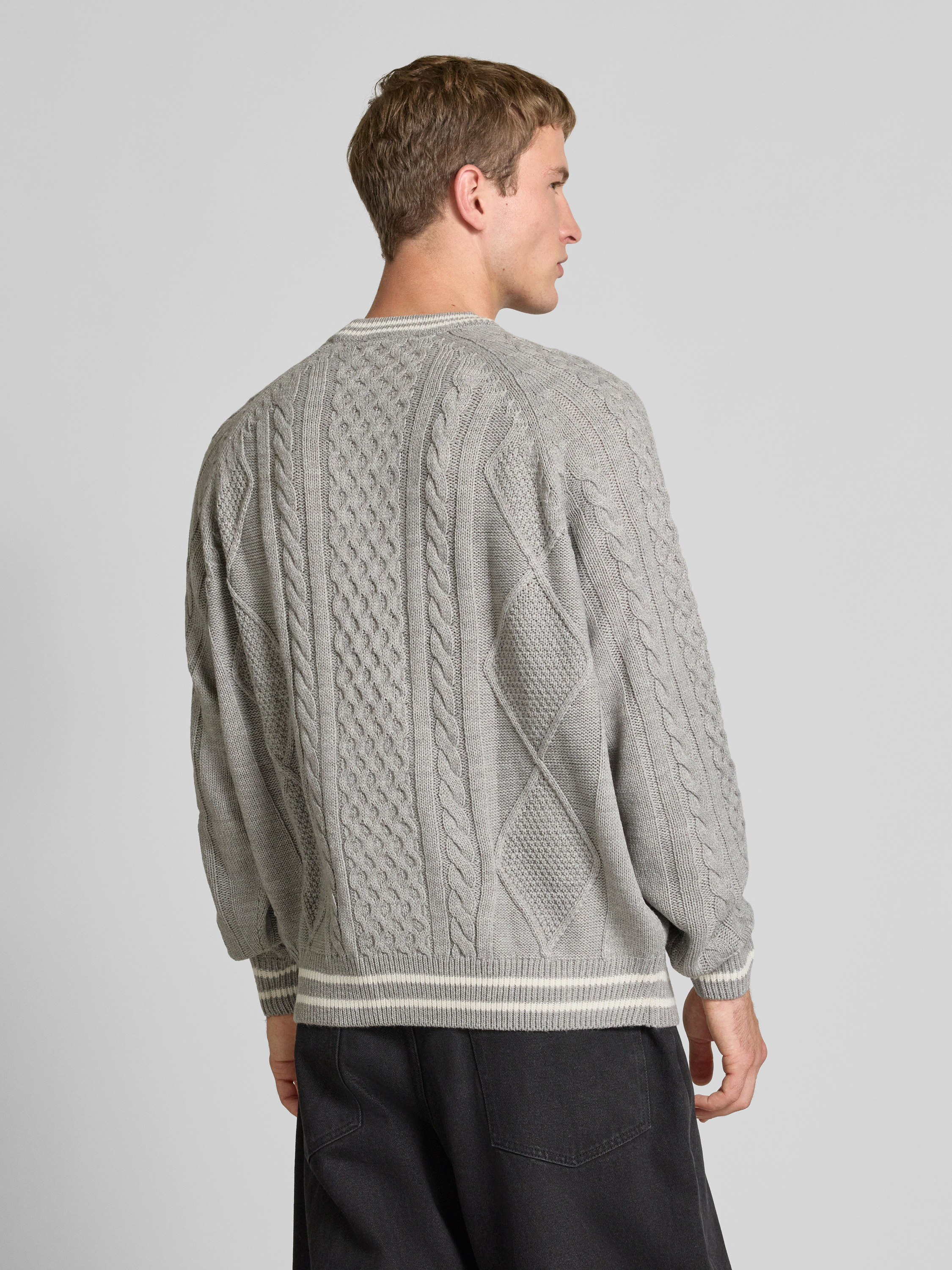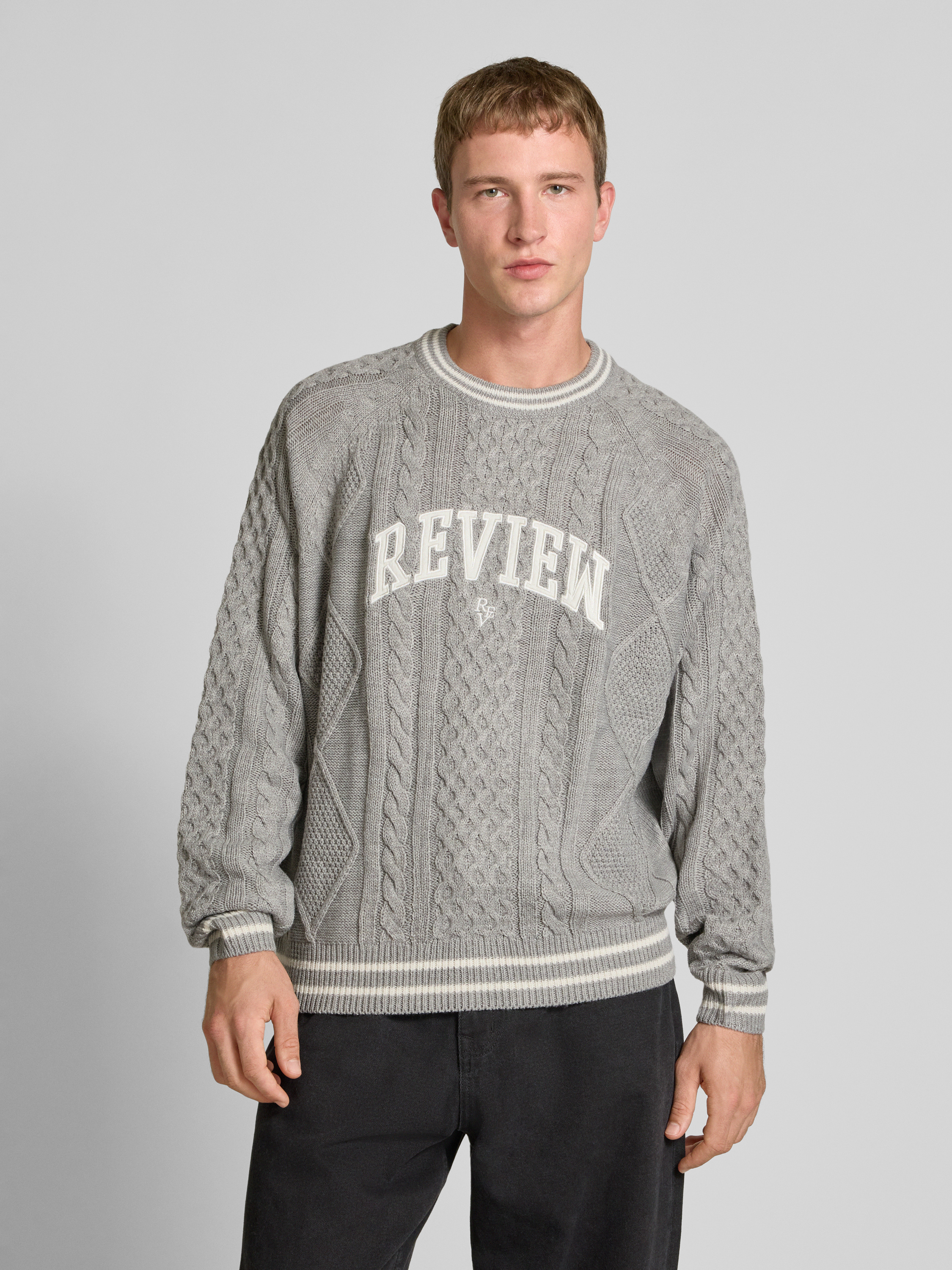 REVIEWStrickpullover mit Label-Stitching in hellgrau melange