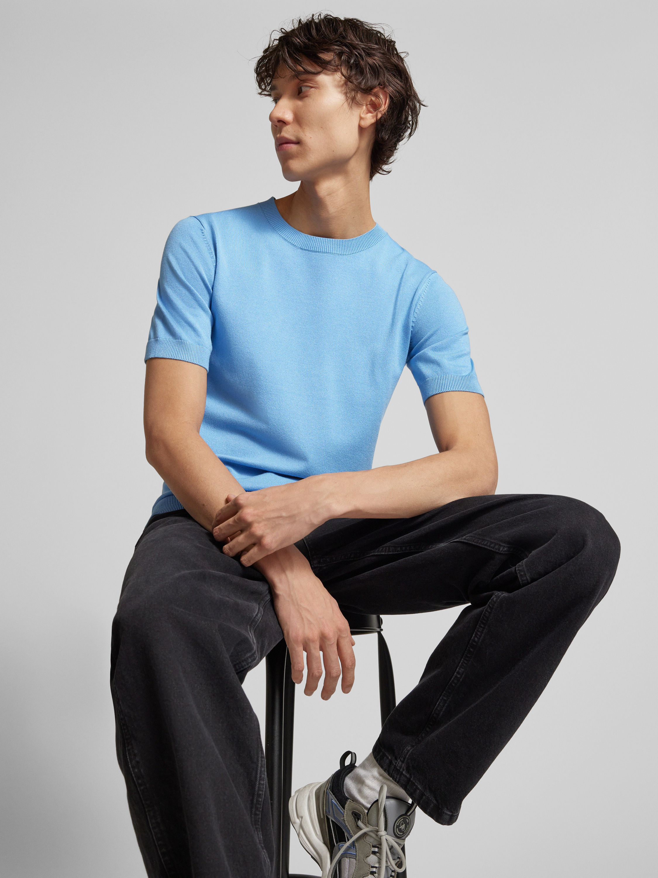 Das Herren Strickshirt von REVIEW aus einem angenehmen Viskose-Mix verbindet Komfort mit einem zeitlosen, geraden Schnitt. Der Rundhalsausschnitt und die halben Ärmel bieten eine legere Passform, während gerippte Abschlüsse für ein gepflegtes Erscheinungsbild sorgen. Ideal für vielfältige Gelegenheiten geeignet.