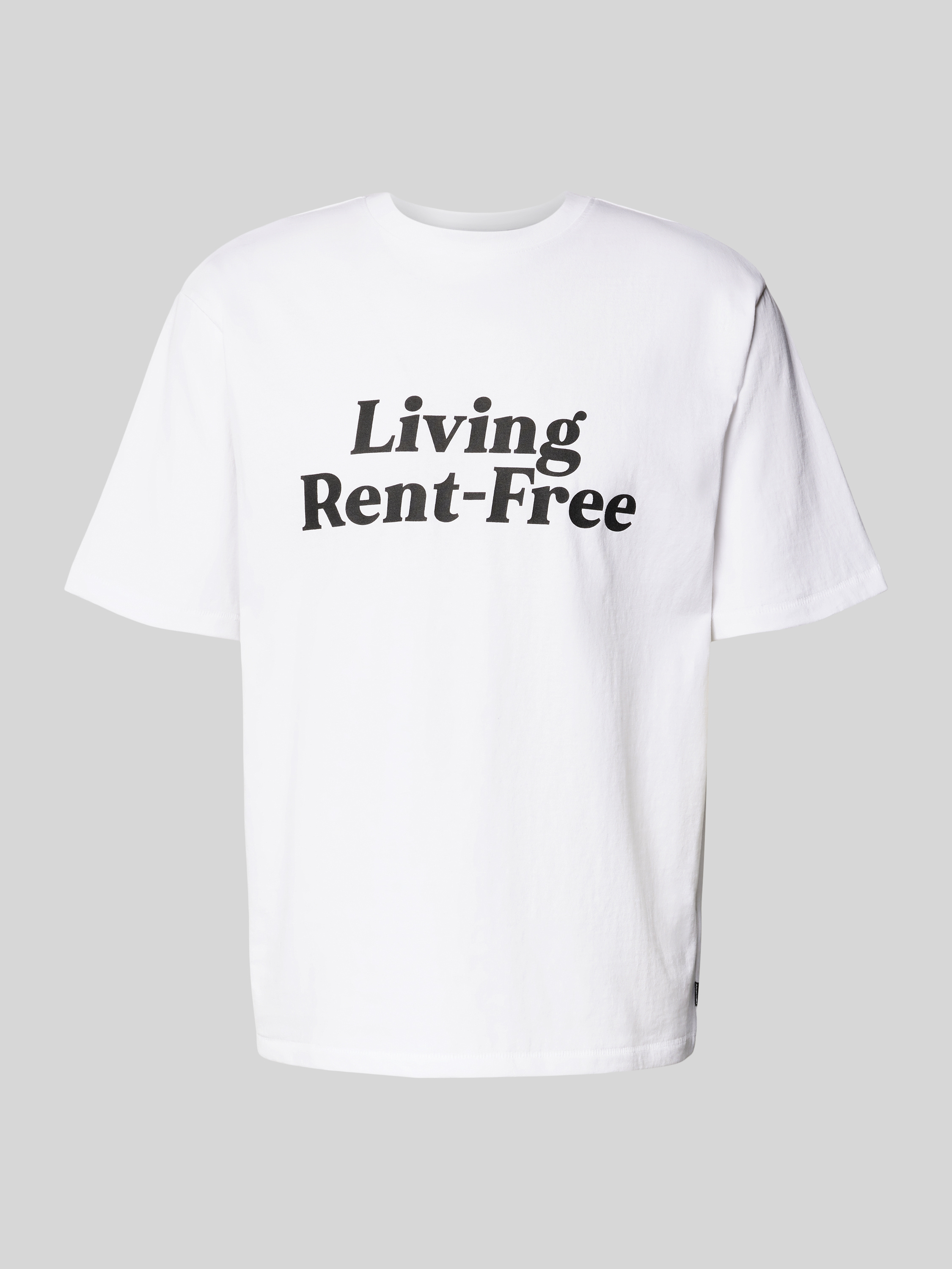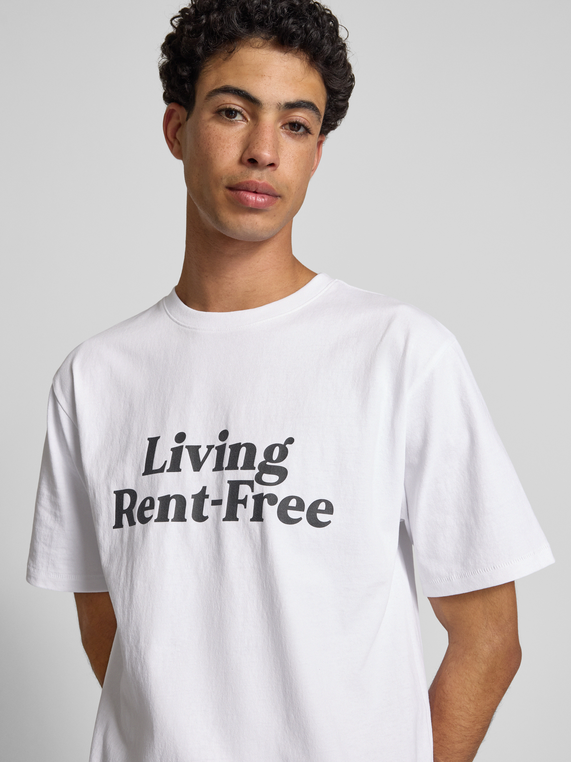 Das Herren T-Shirt von REVIEW zeichnet sich durch seine Verarbeitung aus reiner Baumwolle aus, die ein angenehmes Tragegefühl vermittelt. Der Regular Fit sorgt für einen entspannten Sitz, während der gerippte Rundhalsausschnitt und der auffällige Statement-Print stilvolle Akzente setzen.