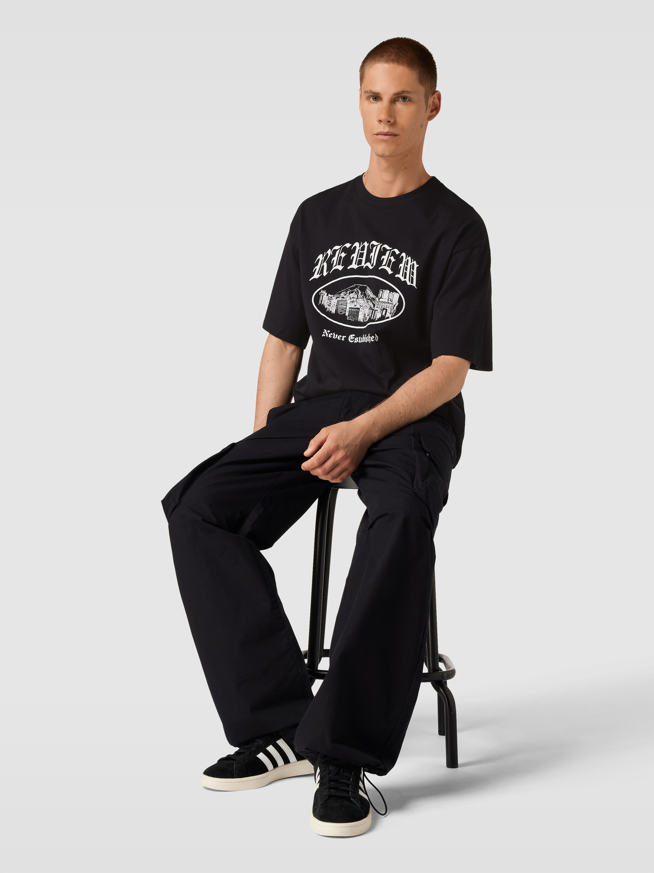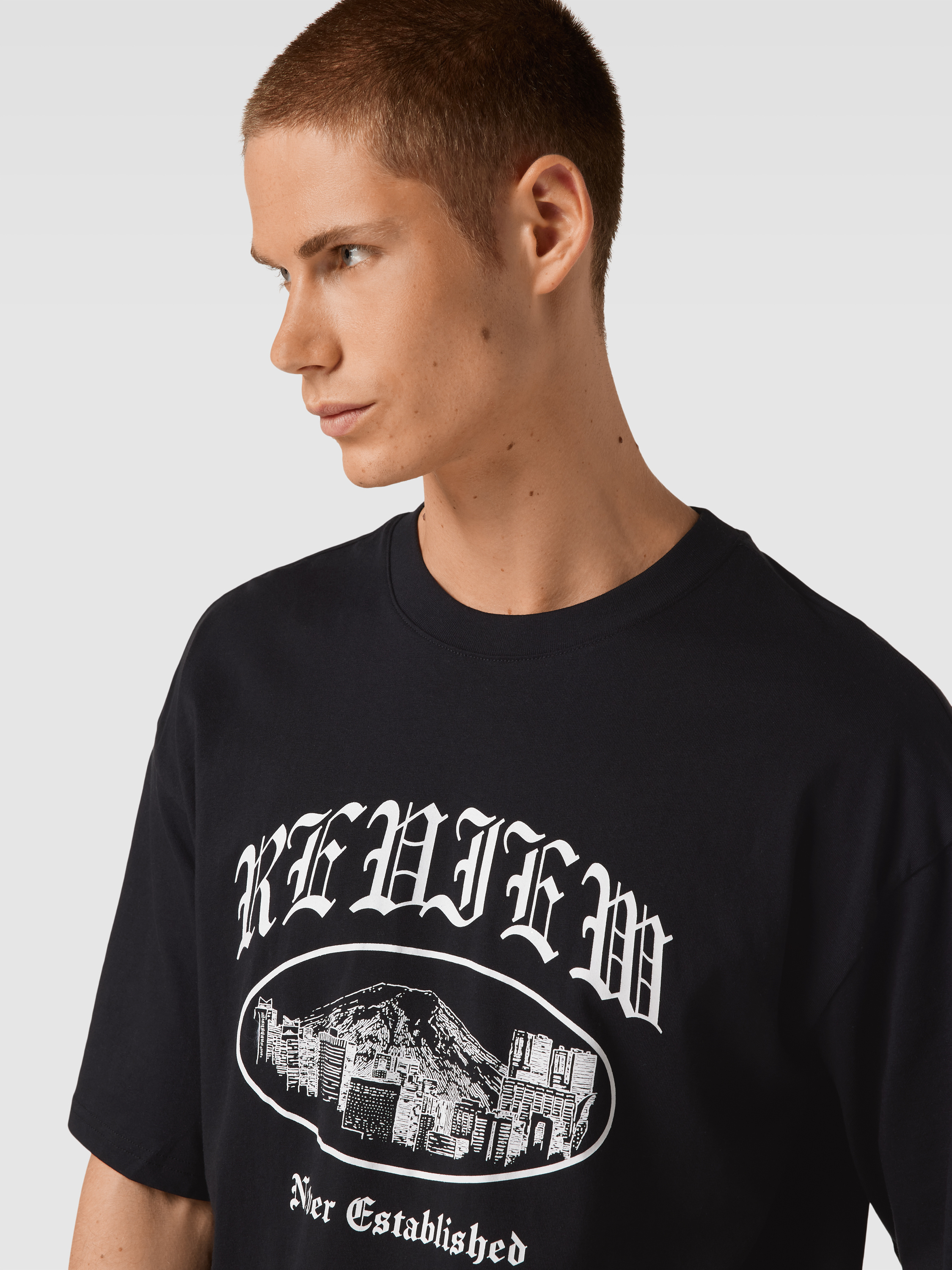Das T-Shirt von REVIEW präsentiert sich in einem schlichten, unifarbenen Design und überzeugt durch einen geraden Schnitt, der für eine bequeme Passform sorgt. Der Rundhalsausschnitt und die überschnittenen Schultern verleihen dem Oberteil einen lässigen Look, während der Label-Motiv-Print dezente Akzente setzt.