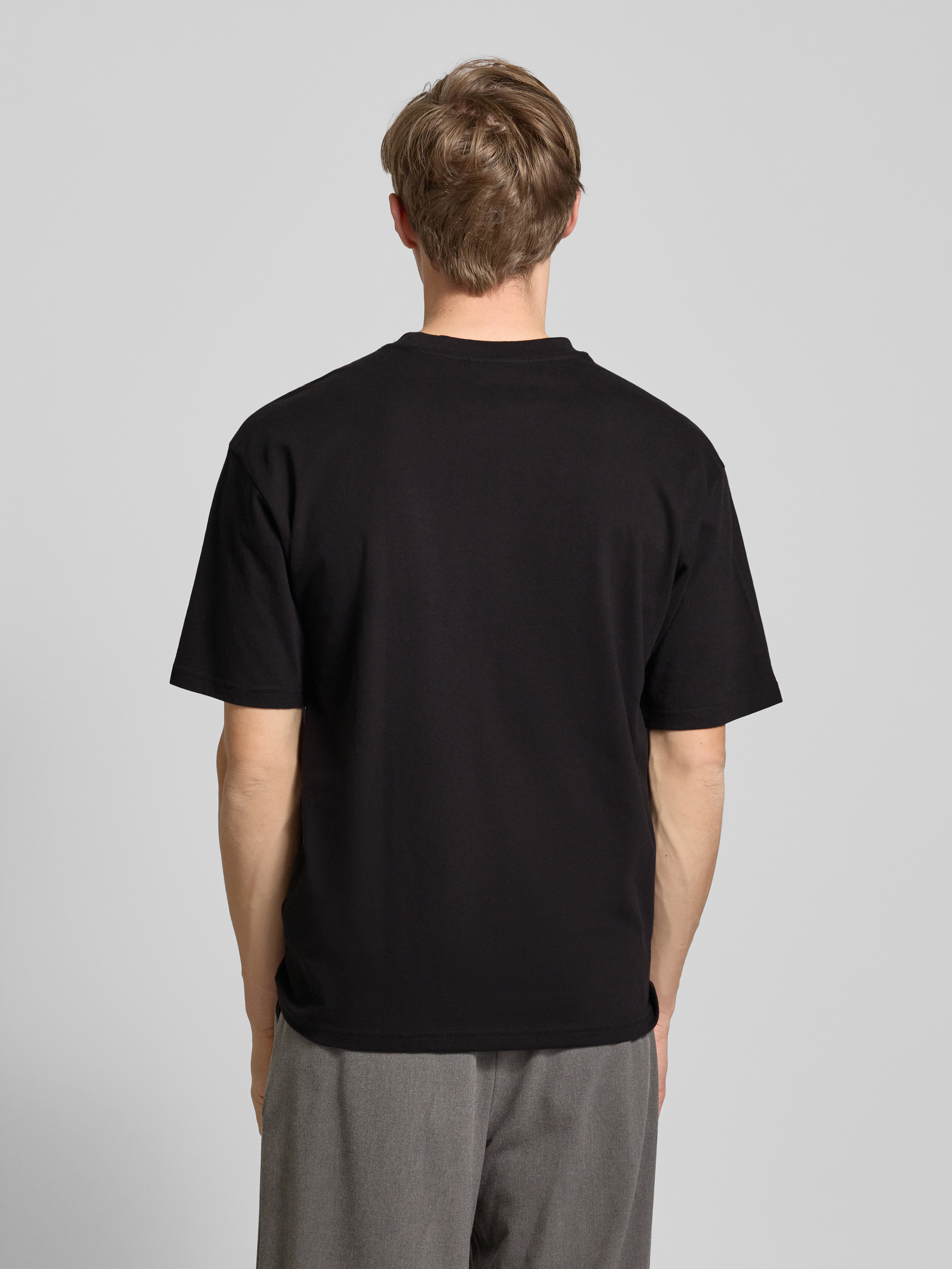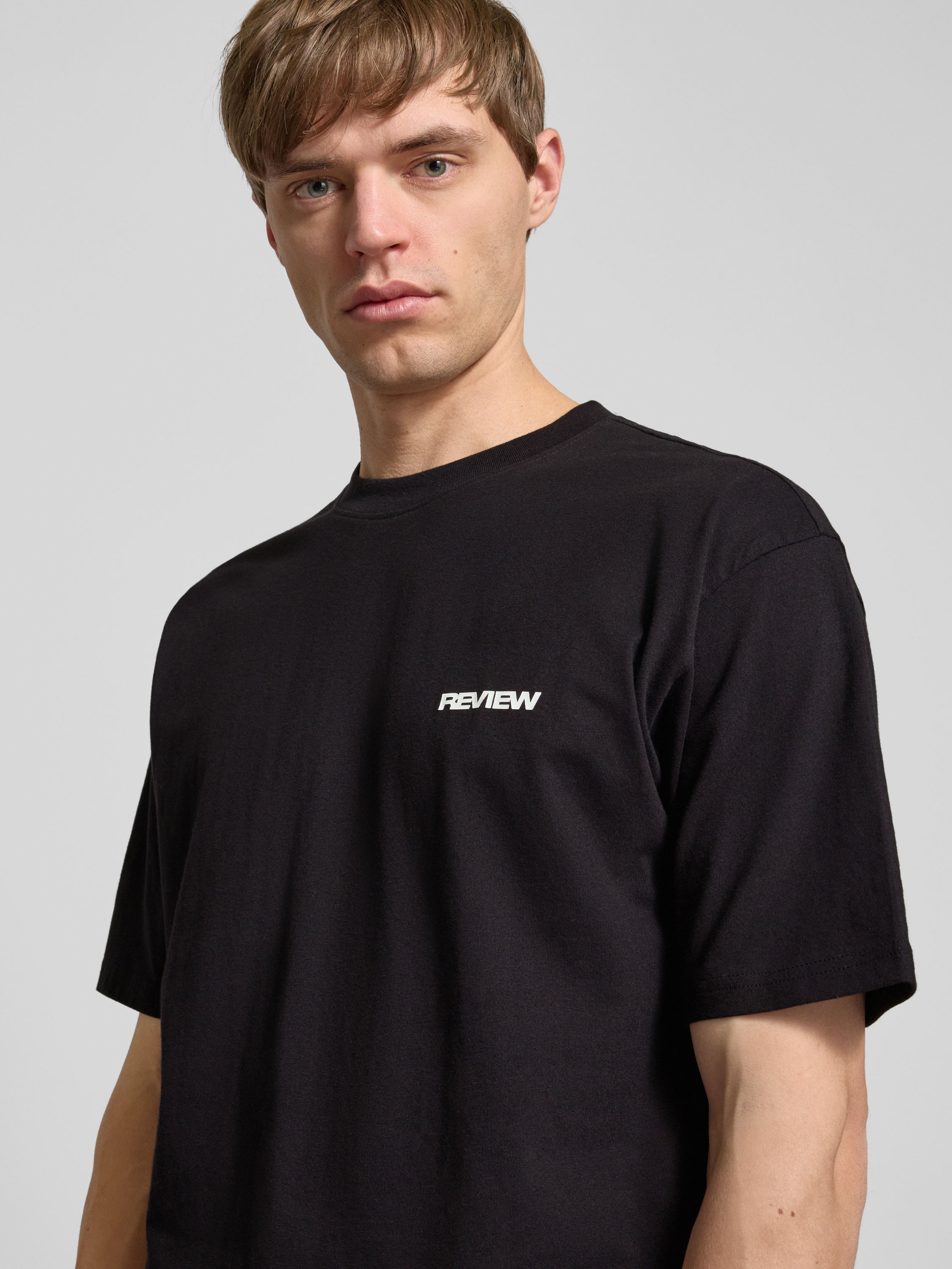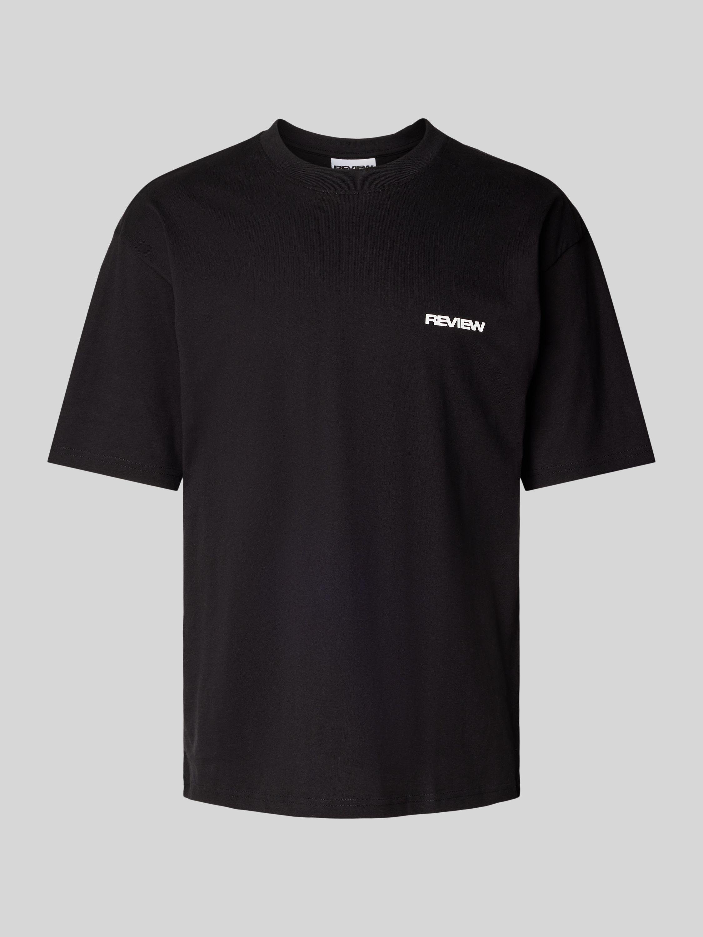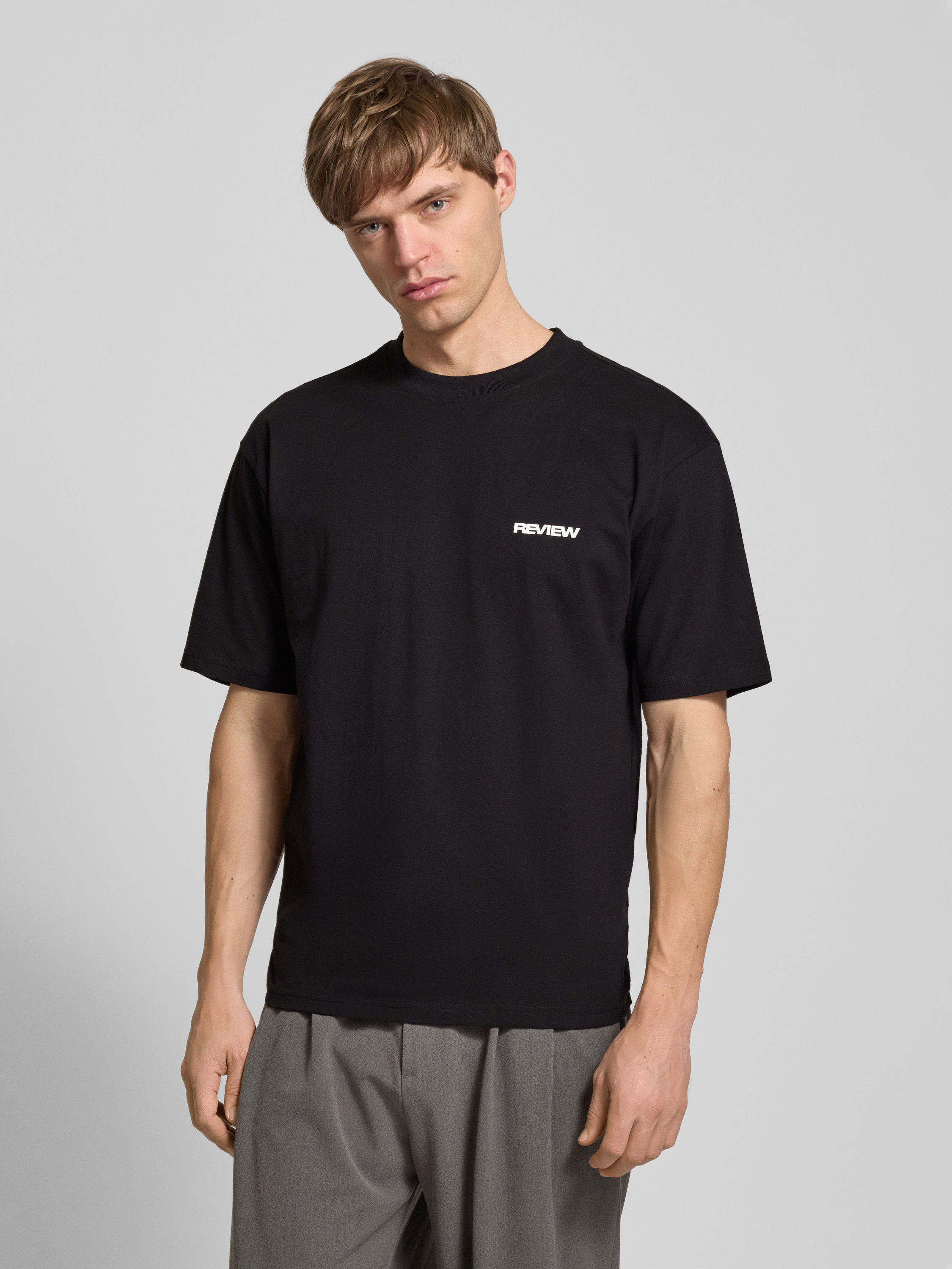 Das T-Shirt von REVIEW kombiniert einen Baumwoll-Mix mit einem entspannten Regular Fit, was für ein angenehmes Tragegefühl sorgt. Der auffällige Label-Print verleiht dem Oberteil eine individuelle Note. Der gerippte Rundhalsausschnitt rundet das Design zeitlos ab.