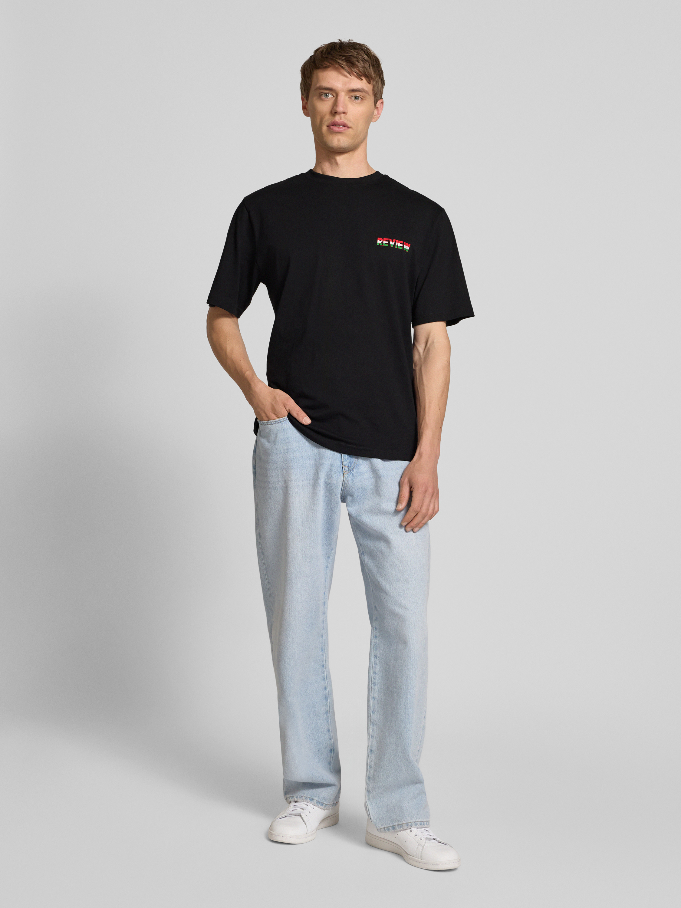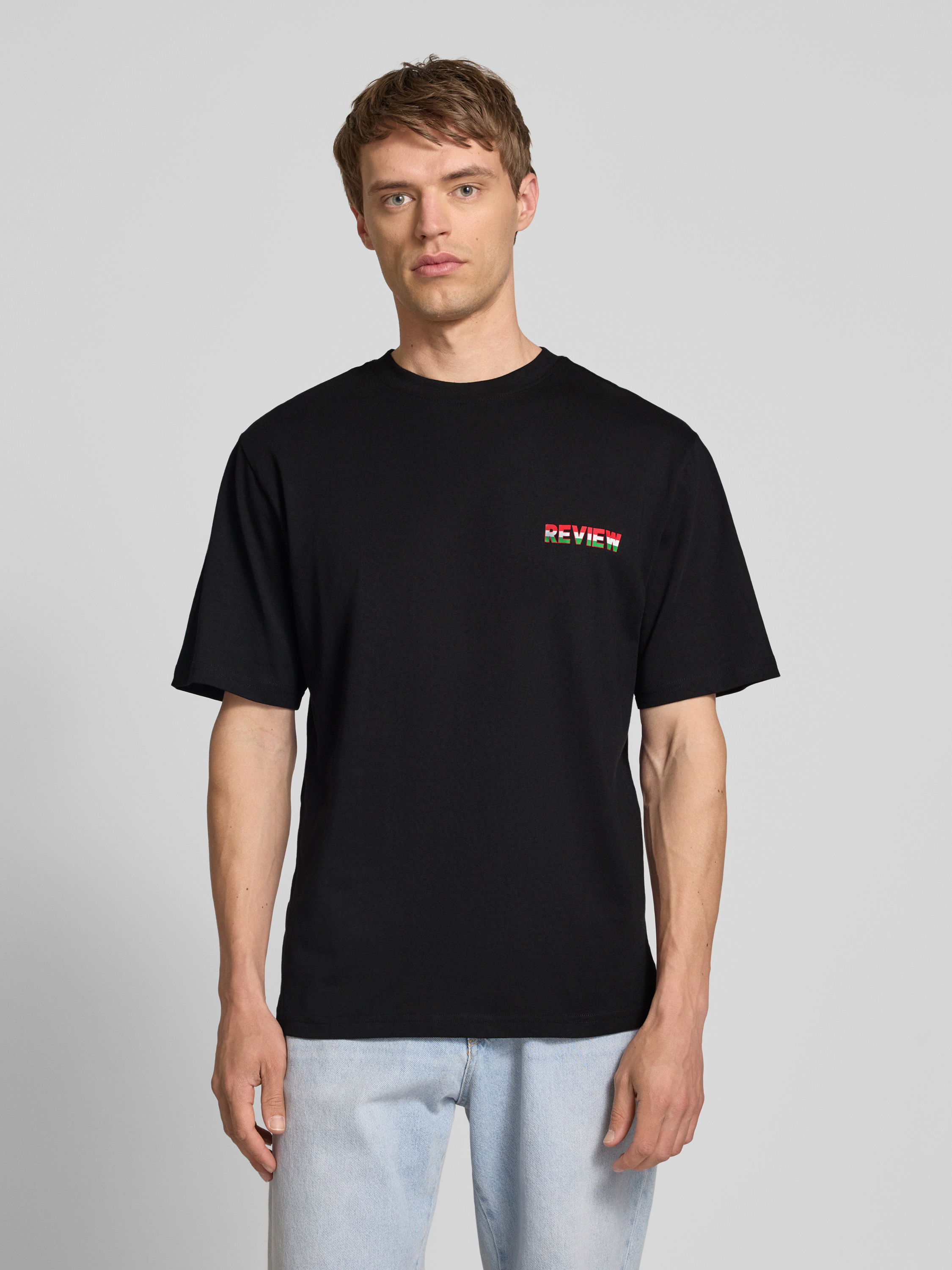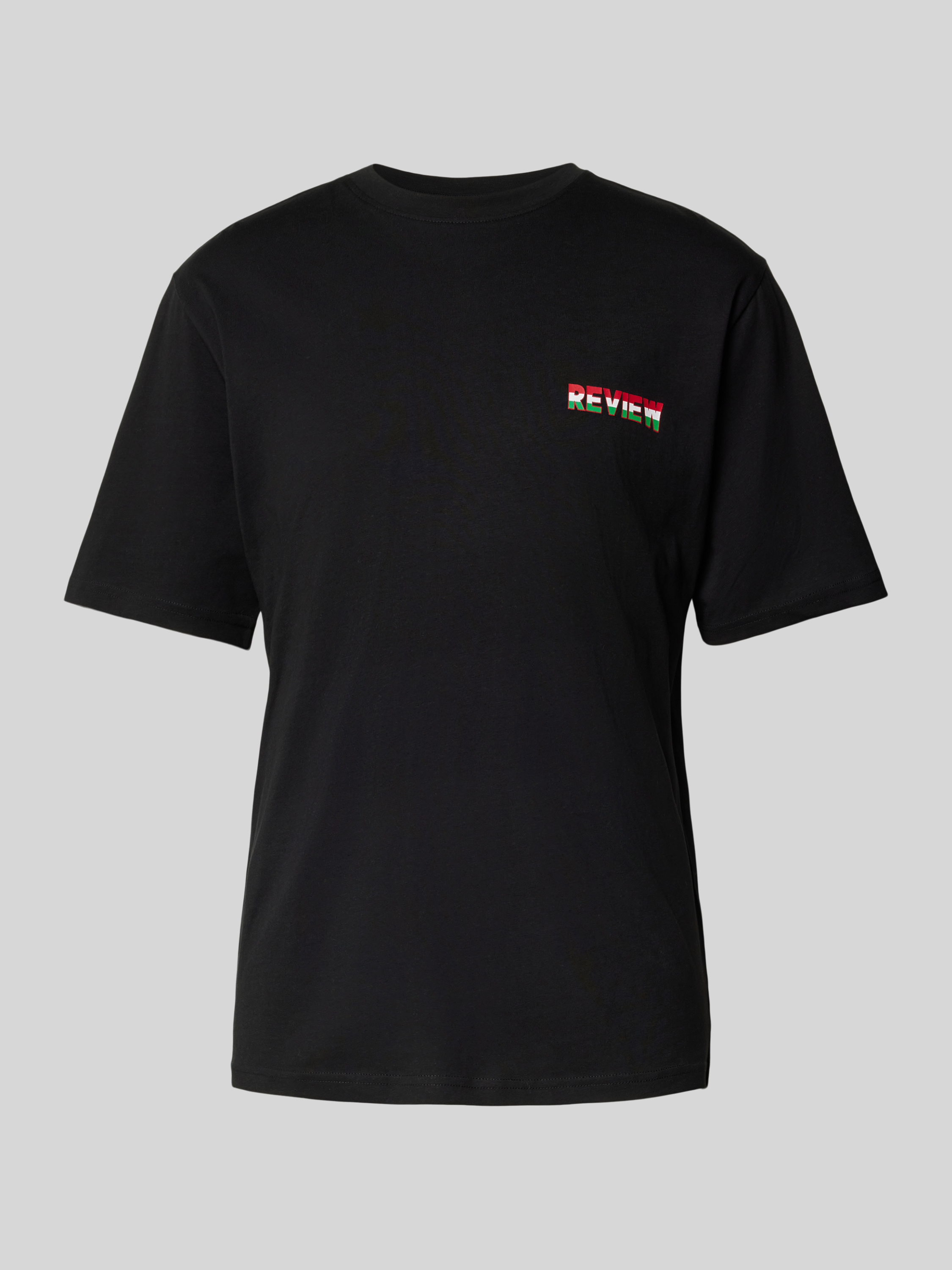 Das T-Shirt von REVIEW kombiniert den Komfort eines Baumwoll-Viskose-Mixes mit einem zeitgemäßen Regular Fit. Der gerippte Rundhalsausschnitt sorgt für eine angenehme Passform, während der markante Label-Print einen modernen Akzent setzt, der jedem Outfit eine besondere Note verleiht.