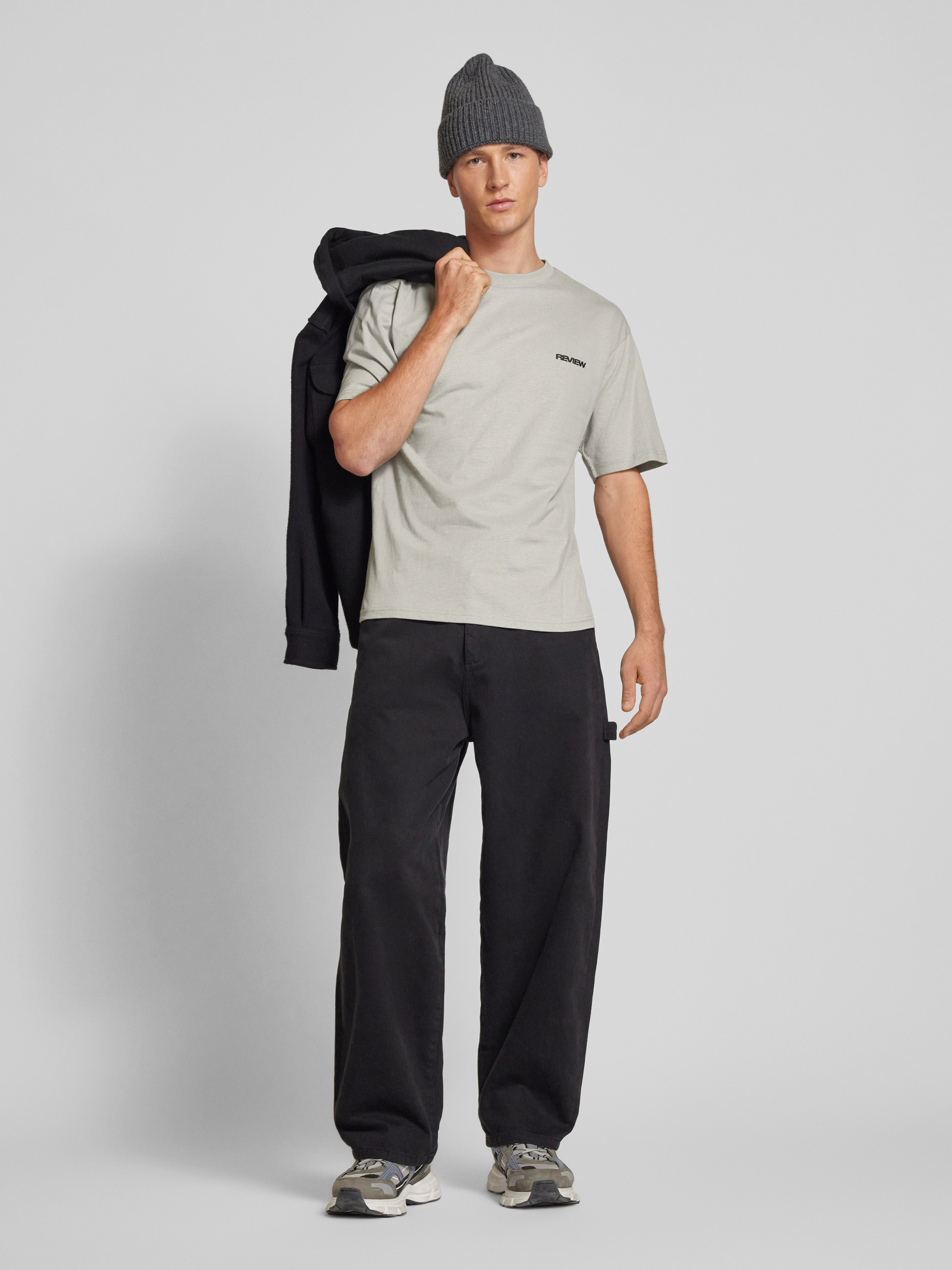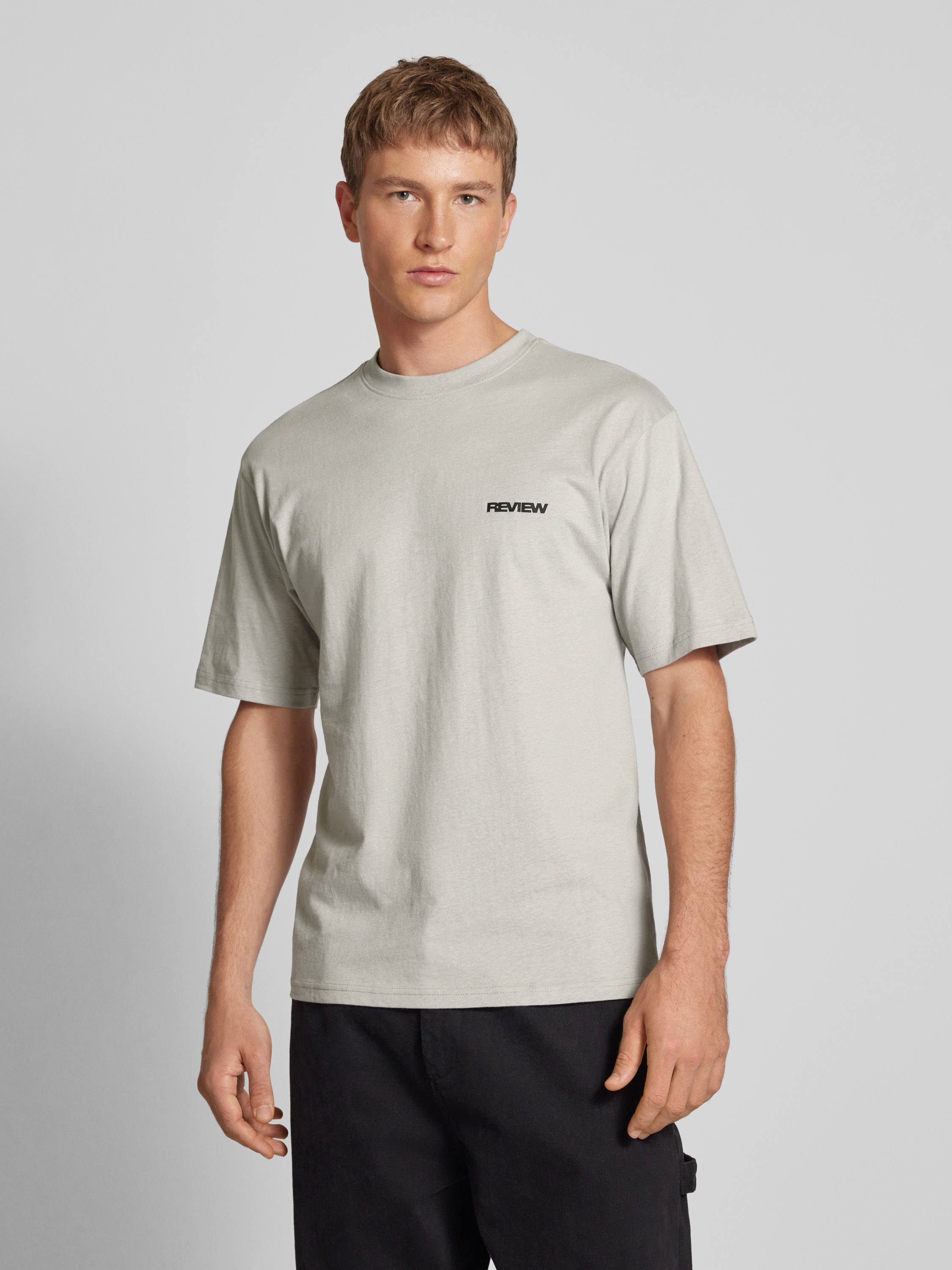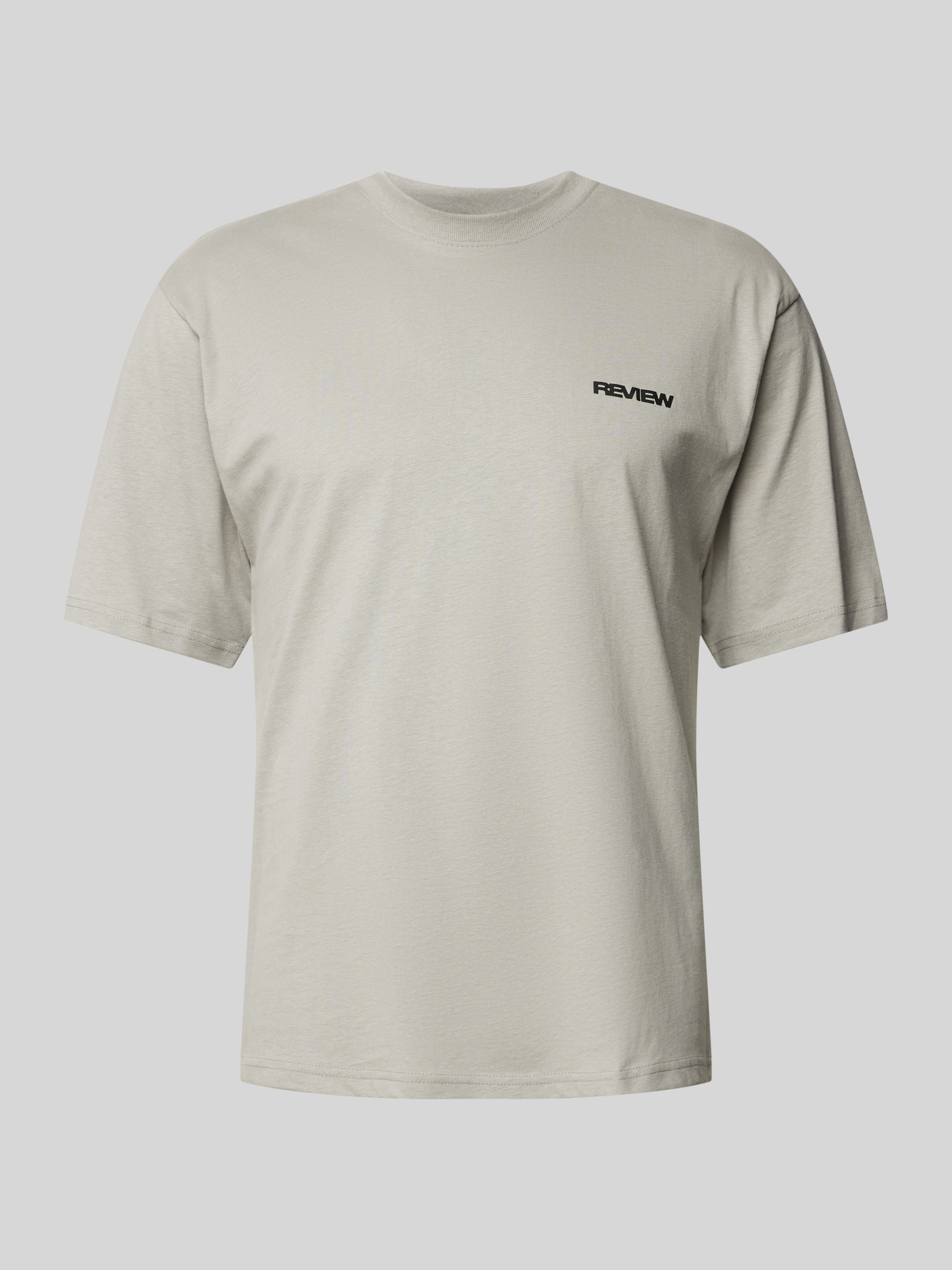 • REVIEW T-Shirt mit Label-Print Mittelgrau