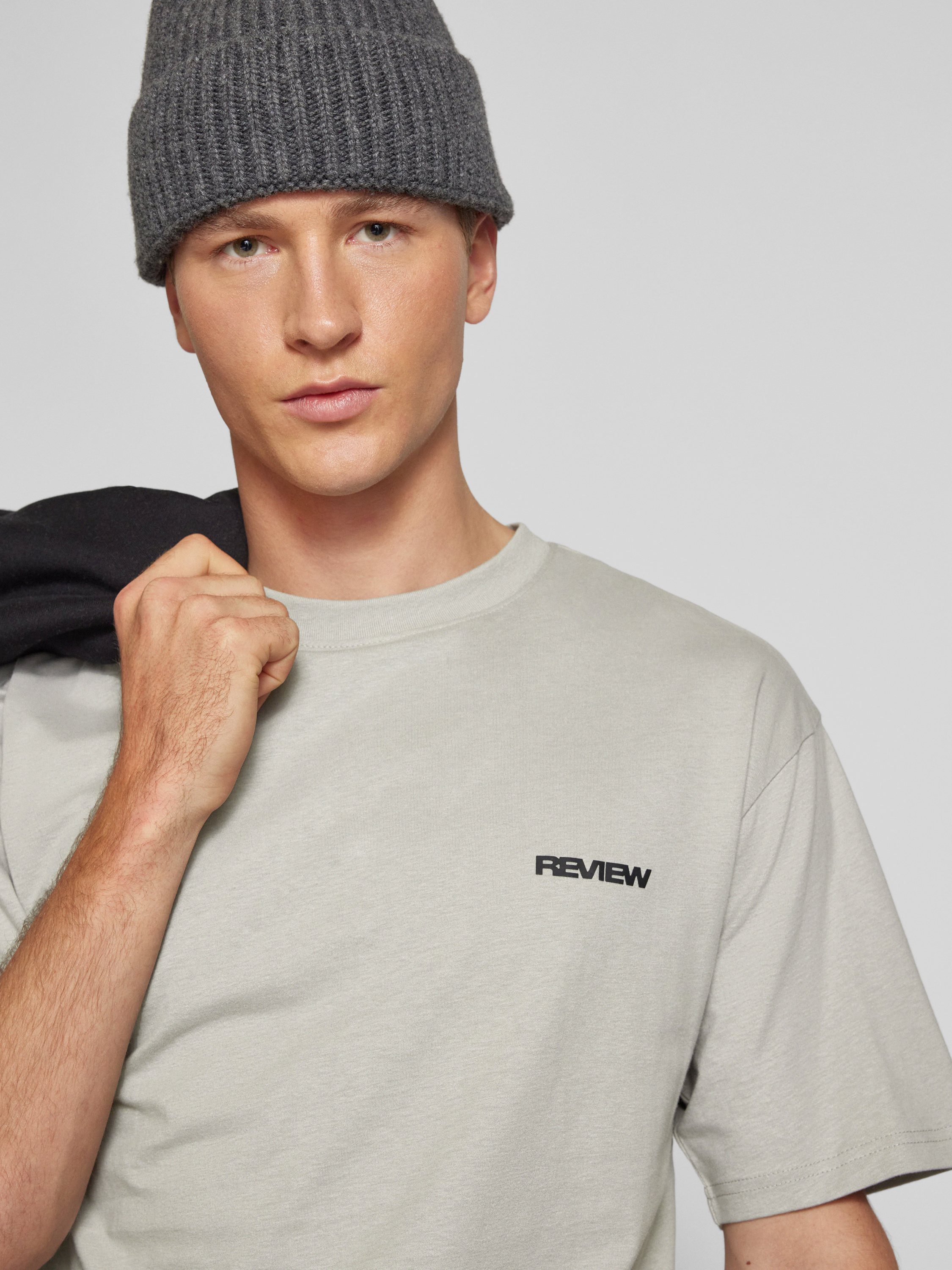 REVIEWT-Shirt mit Label-Print in mittelgrau
