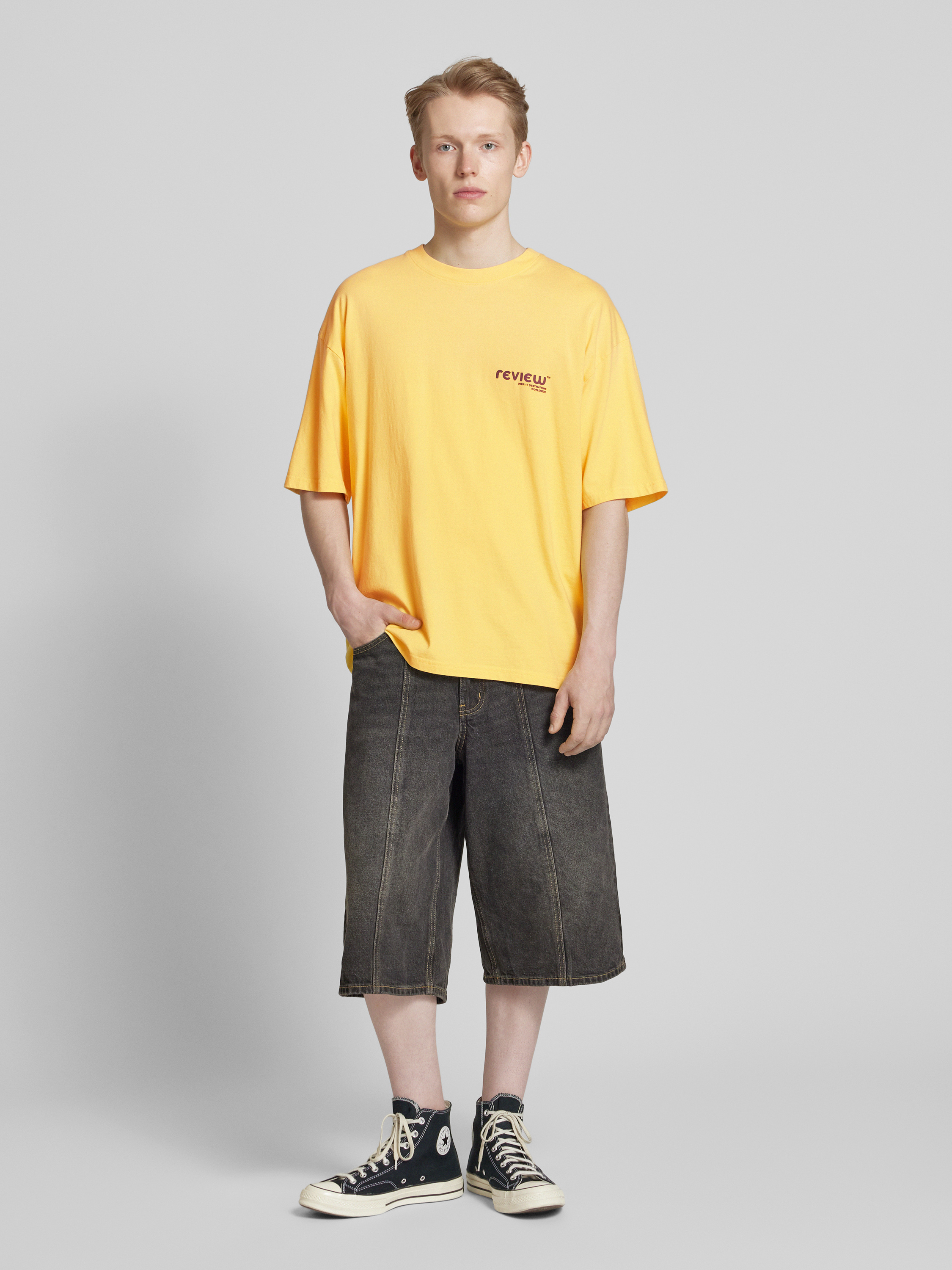 REVIEWT-Shirt mit Label-Print in pastellgelb