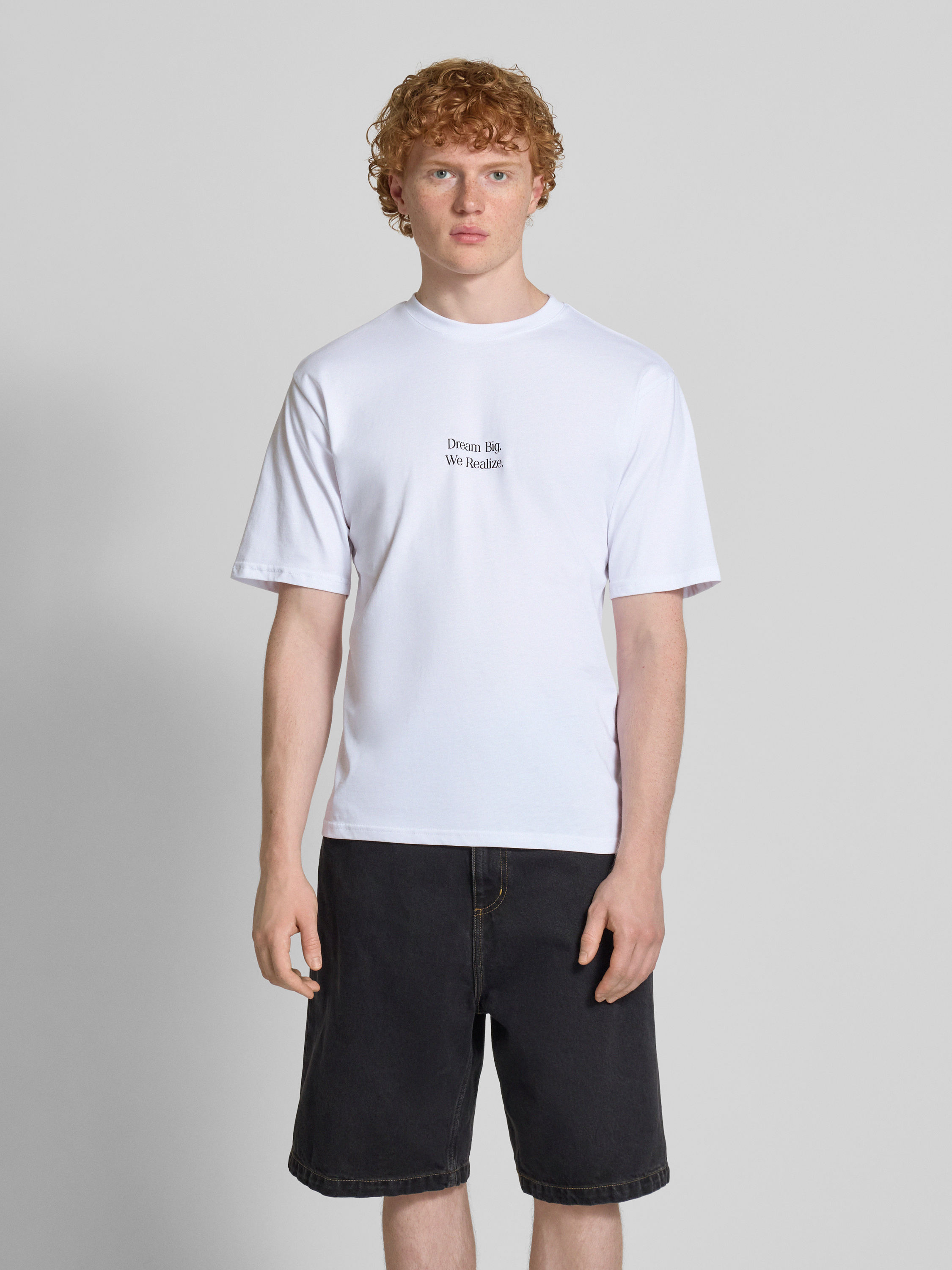 Das Herren T-Shirt von REVIEW kombiniert einen lässigen Regular Fit mit dem angenehmen Tragegefühl reiner Baumwolle. Der gerippte Rundhalsausschnitt verleiht dem Oberteil eine klassische Note, während der auffällige Statement-Print Individualität ausdrückt. Ideal für Alltag und Freizeit.