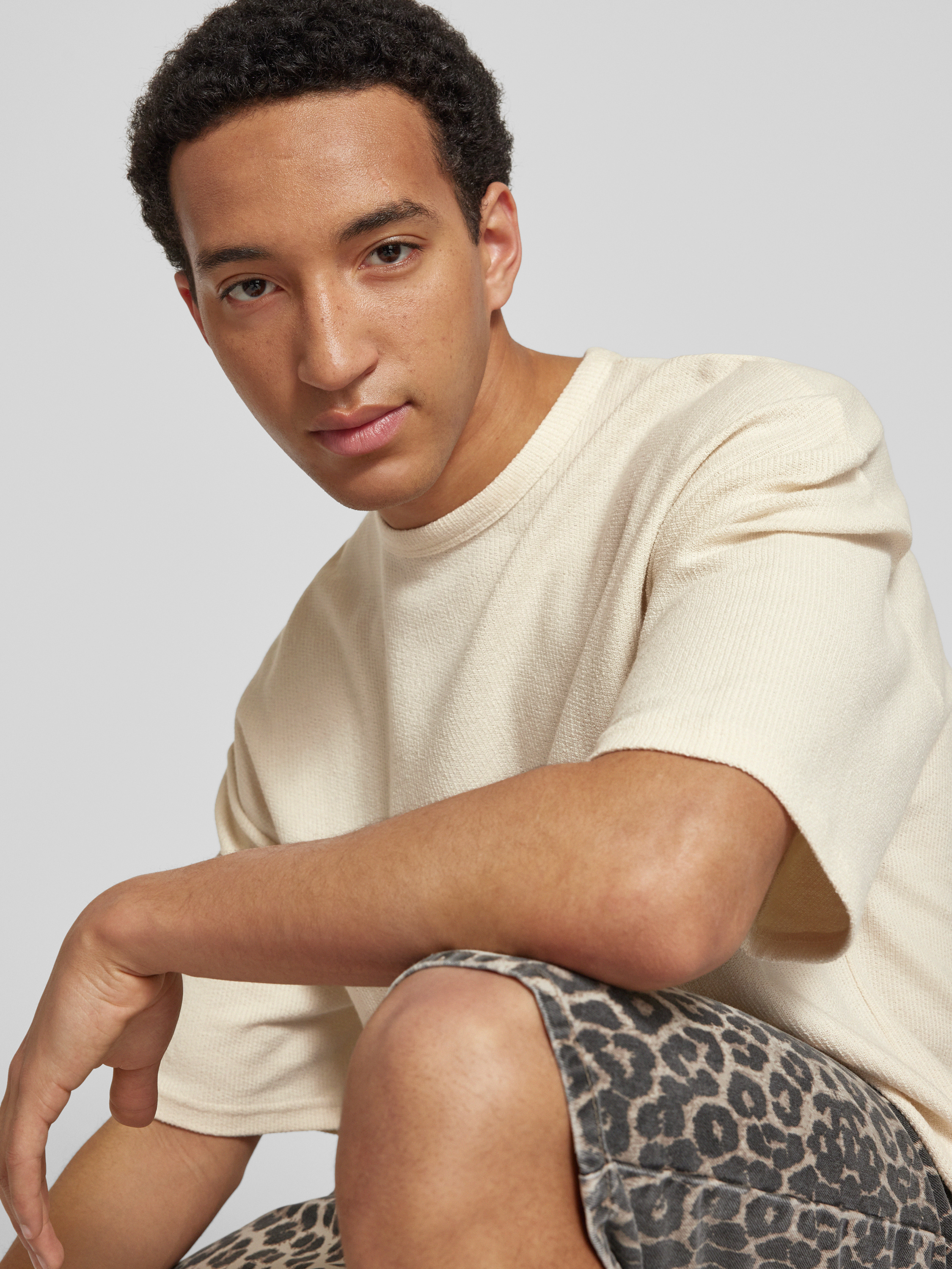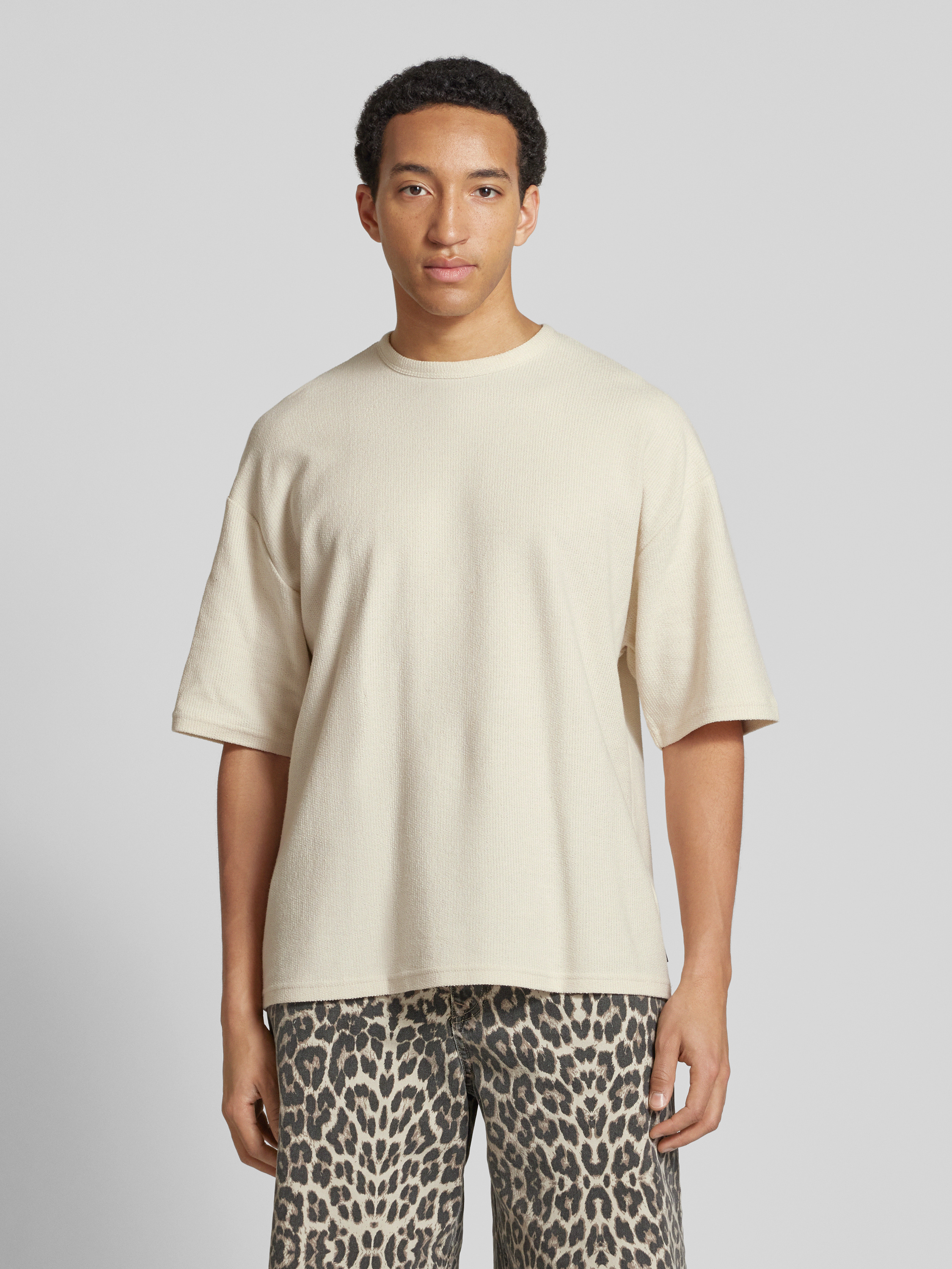 Das Herren T-Shirt von REVIEW überzeugt durch seinen lockeren Boxy Fit und den charakteristischen Rundhalsausschnitt. Der Baumwoll-Mix bietet angenehmen Tragekomfort und das strukturierte Muster verleiht dem Shirt eine besondere Note. Überschnittene Schultern sorgen für einen lässigen Look.