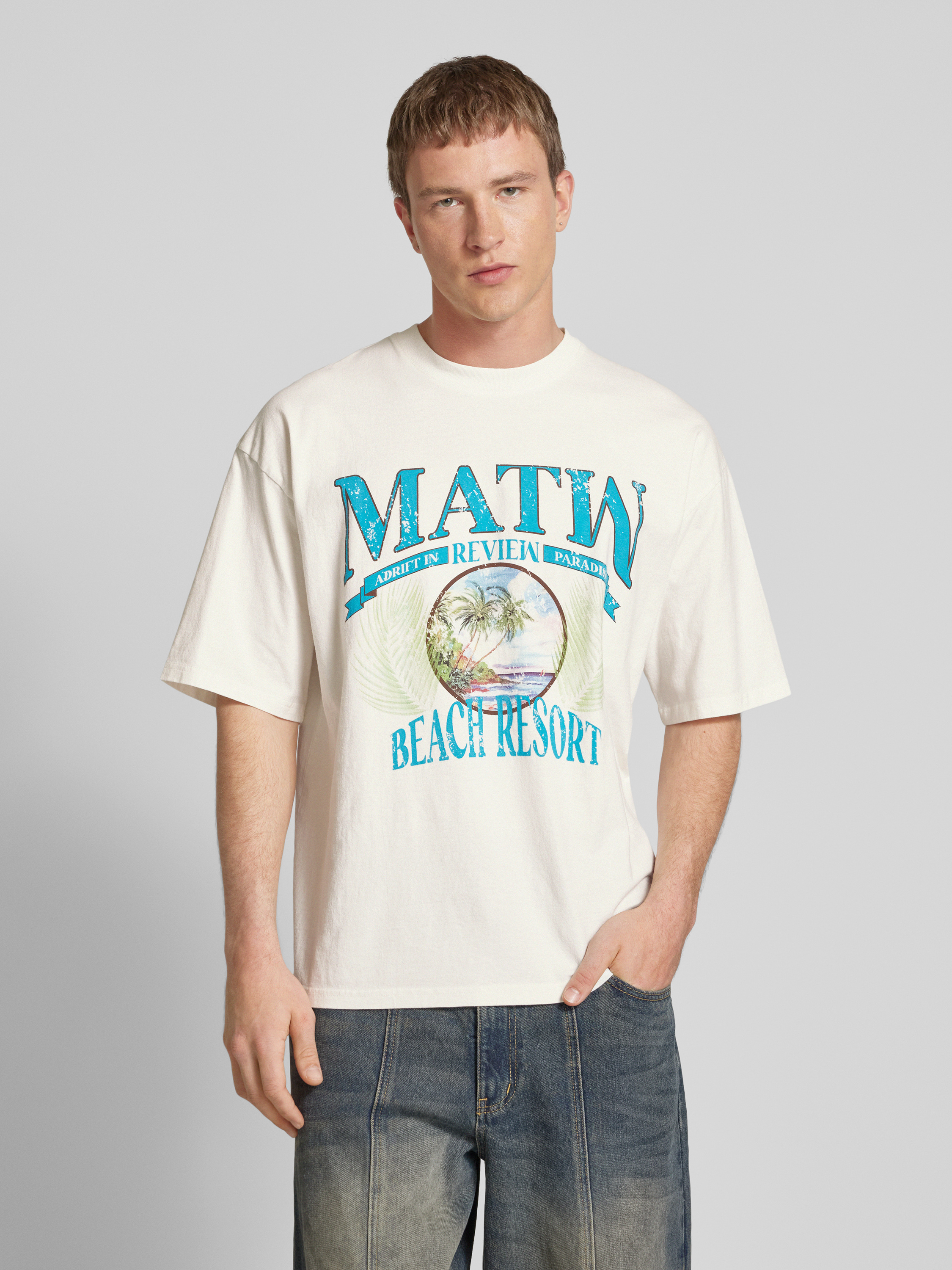 Das Herren T-Shirt von Review X MATW aus reiner Baumwolle bietet durch den Regular Fit eine bequeme Passform. Der gerippte Rundhalsausschnitt verleiht dem Design eine klassische Note, während der markante Label-Print als stilvolles Detail wirkt. Ideal für vielseitige Alltagskombinationen.