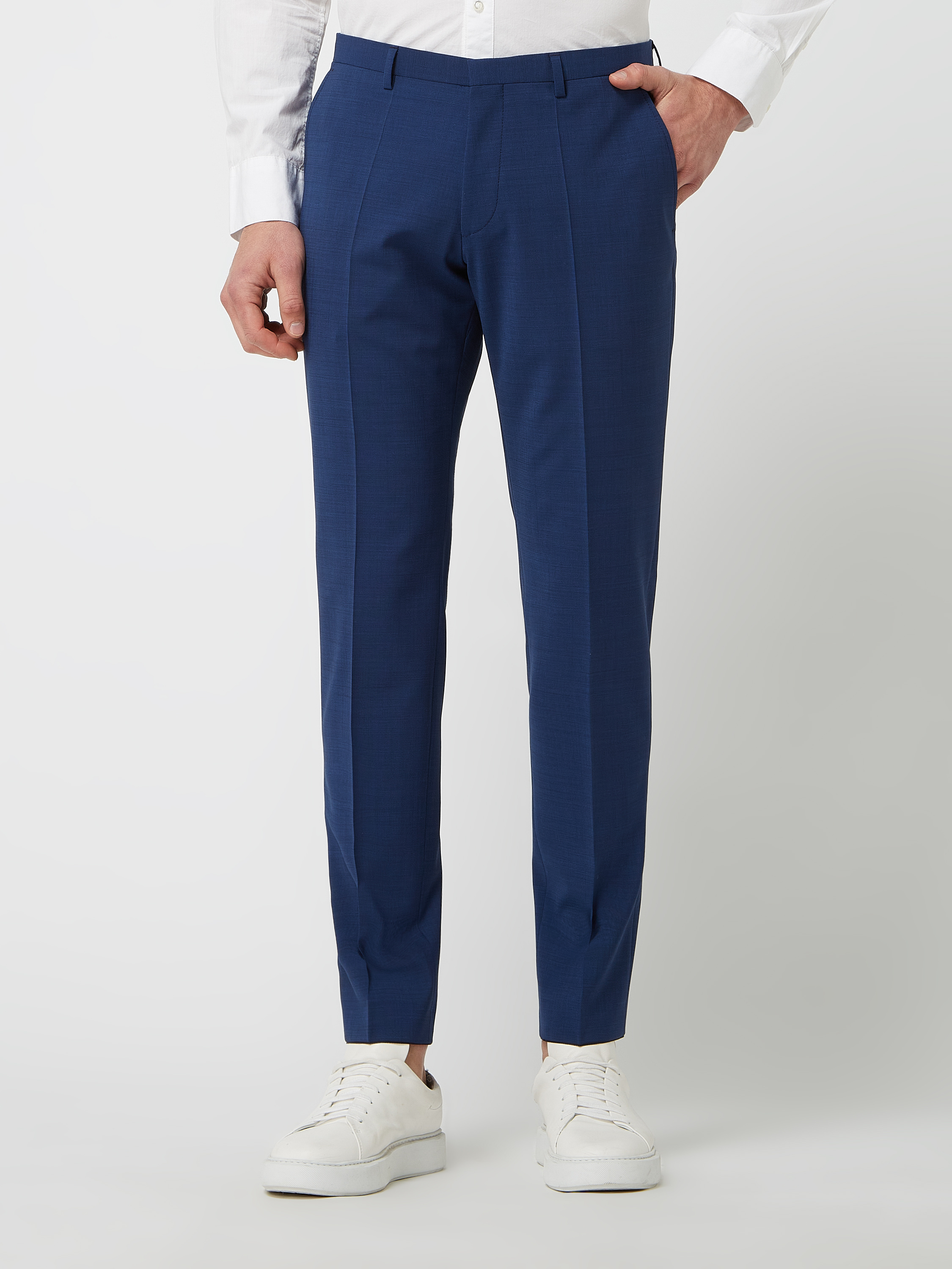 Die Anzughose 'Slacks' von ROY ROBSON kombiniert eine edle Materialmischung mit einem Schurwoll-Anteil und Stretch, um Komfort und Eleganz zu vereinen. Mit schmalem Bein und klassischen Bügelfalten passt sie sich mühelos unterschiedlichen Anlässen an. Praktische Eingrifftaschen runden das Design ab.