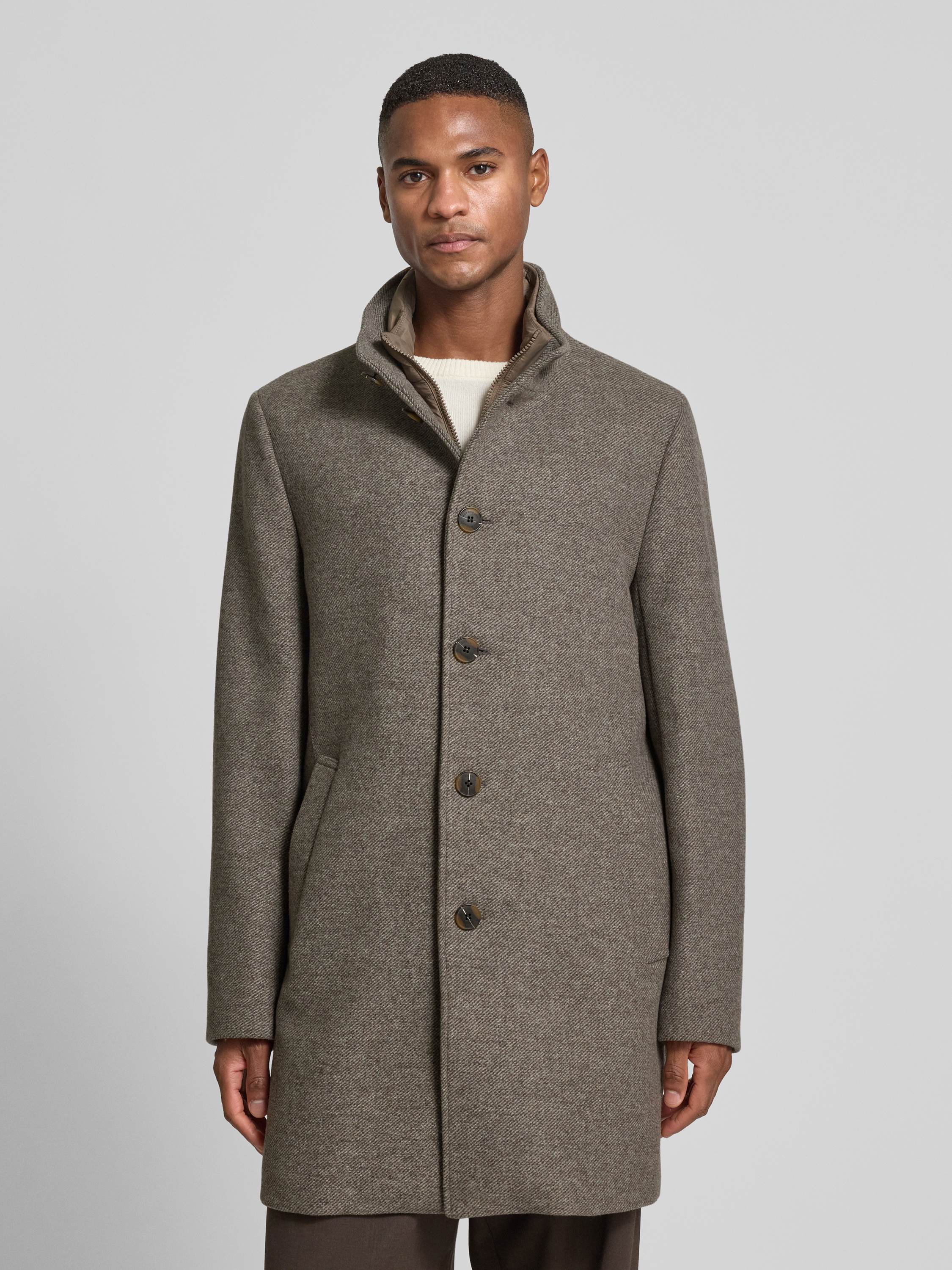 Roy RobsonKurzmantel mit Steppeinsatz und Stehkragen in mittelbraun