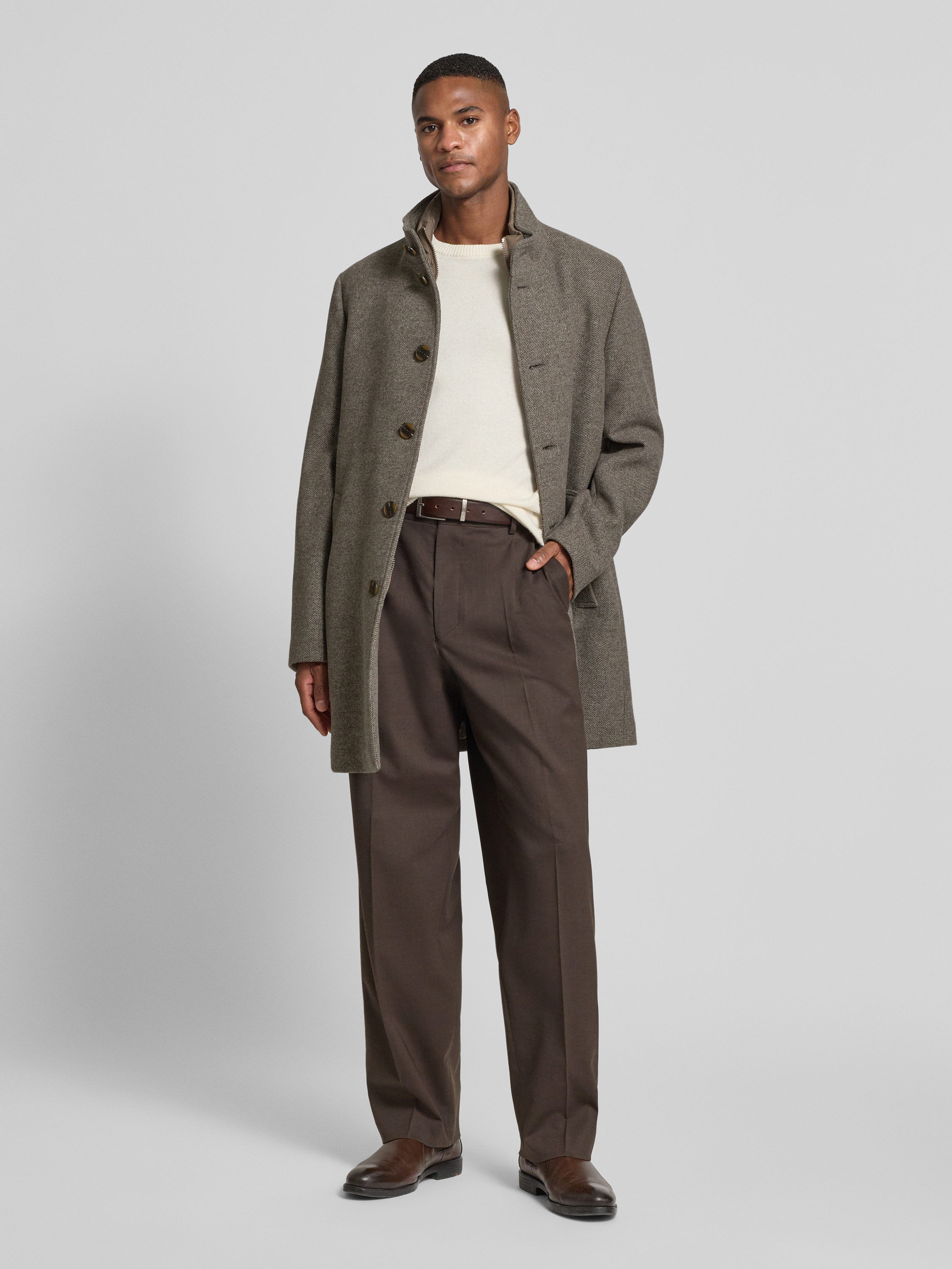 Der Herren Kurzmantel von Roy Robson vereint einen legeren Regular Fit mit einem markanten Steppeinsatz und Stehkragen. Durch die durchdachte Passform lässt sich der Mantel angenehm tragen, während die seitlichen Eingrifftaschen im Alltag praktische Dienste leisten. So eignet sich das Modell für vielfältige Gelegenheiten und bleibt dabei unkompliziert kombinierbar.