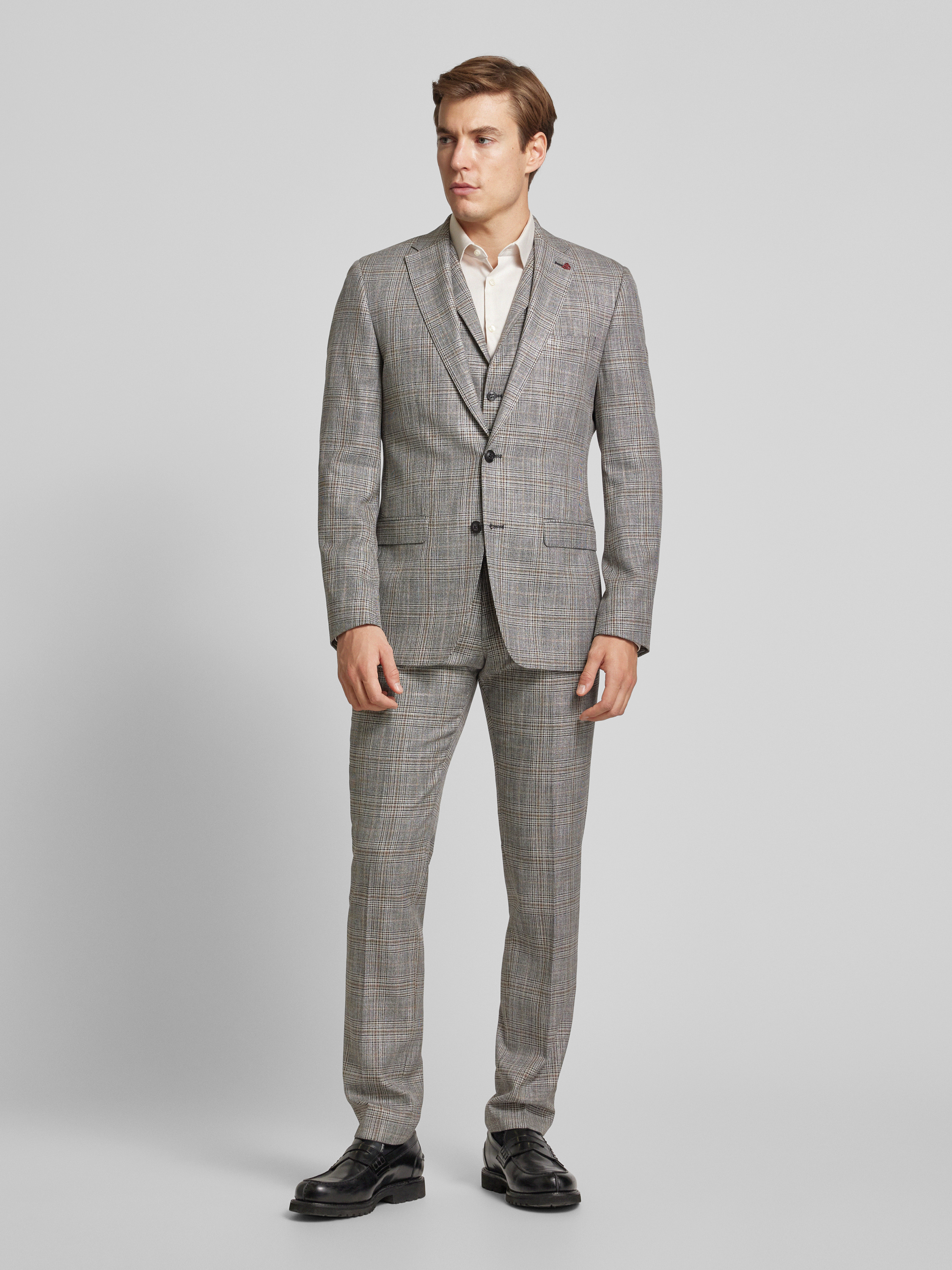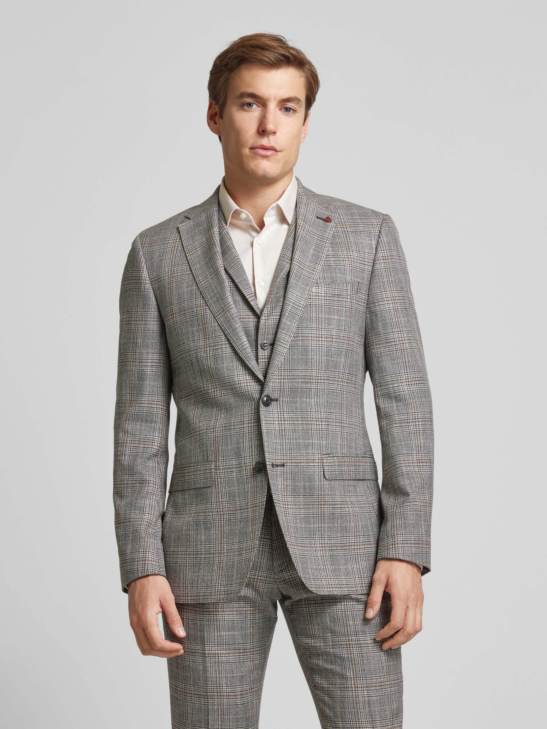 Das Herren Sakko von Roy Robson zeigt sich im geraden Schnitt und mit markantem Strukturmuster, wodurch es vielseitig kombinierbar bleibt. Der Viskose-Mix mit Stretch-Anteil sorgt für angenehmen Tragekomfort im Alltag. Durch Reverskragen und Brustleistentasche erhält das Sakko mit Brustleistentasche einen klassischen Akzent.