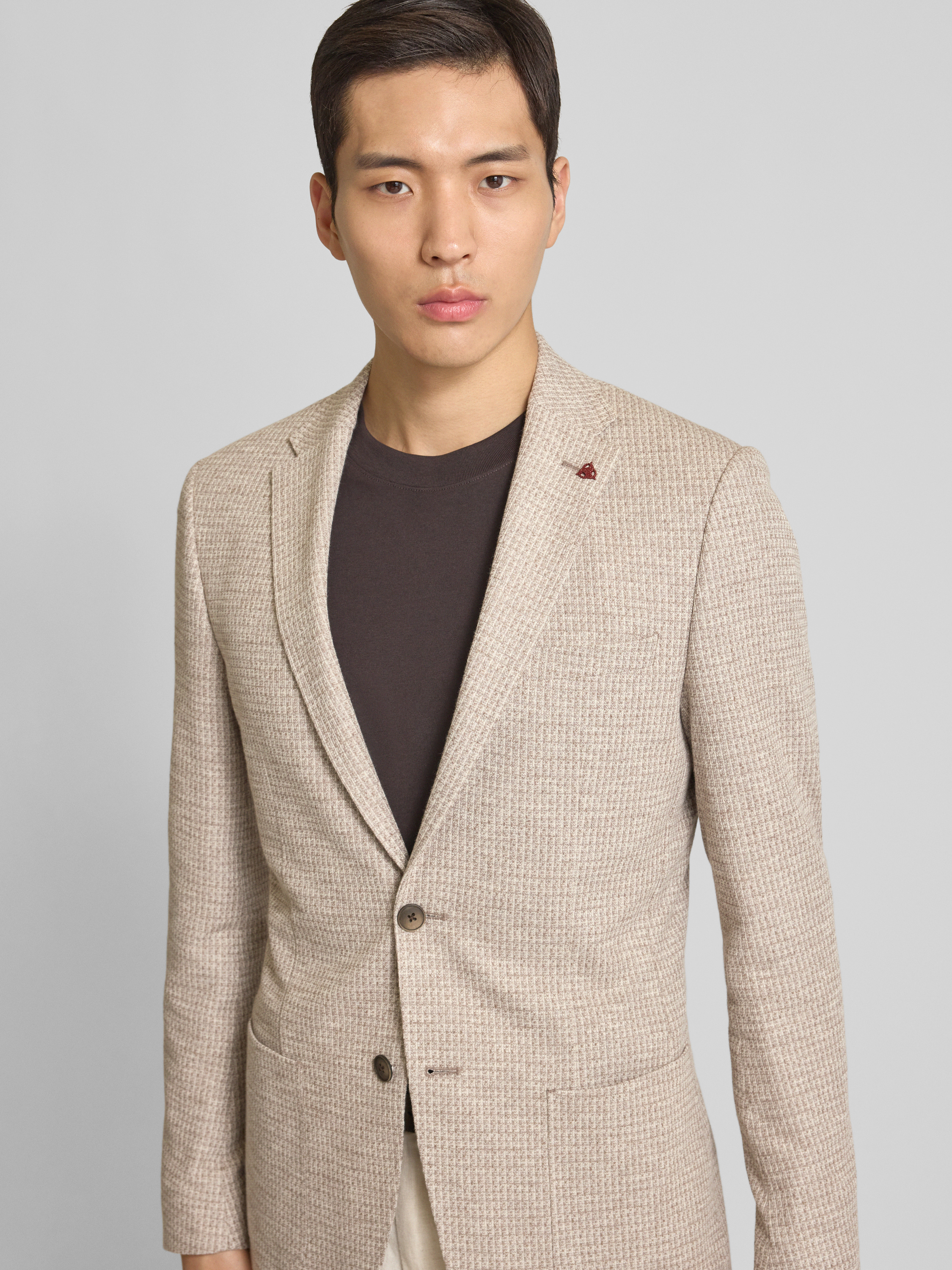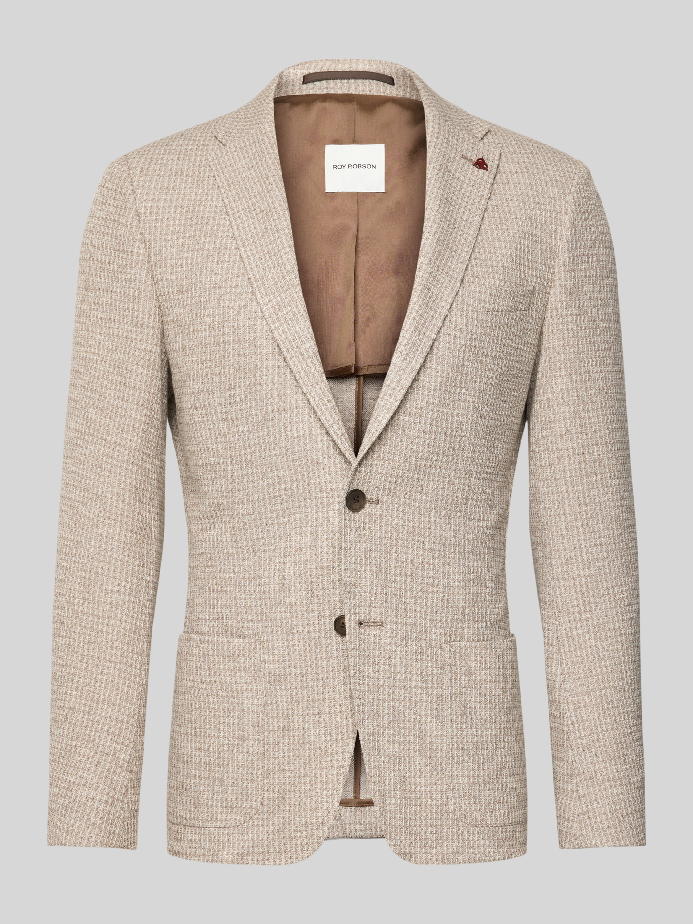 Das Roy Robson Sakko mit Strukturmuster aus einem Baumwoll-Mix mit Stretch-Anteil vereint Komfort und Stil in einem taillierten Schnitt. Ein Reverskragen und aufgesetzte Taschen unterstreichen die klassische Eleganz, während die Brustleistentasche einen praktischen Nutzen bietet. Ideal für einen gepflegten, modernen Auftritt.