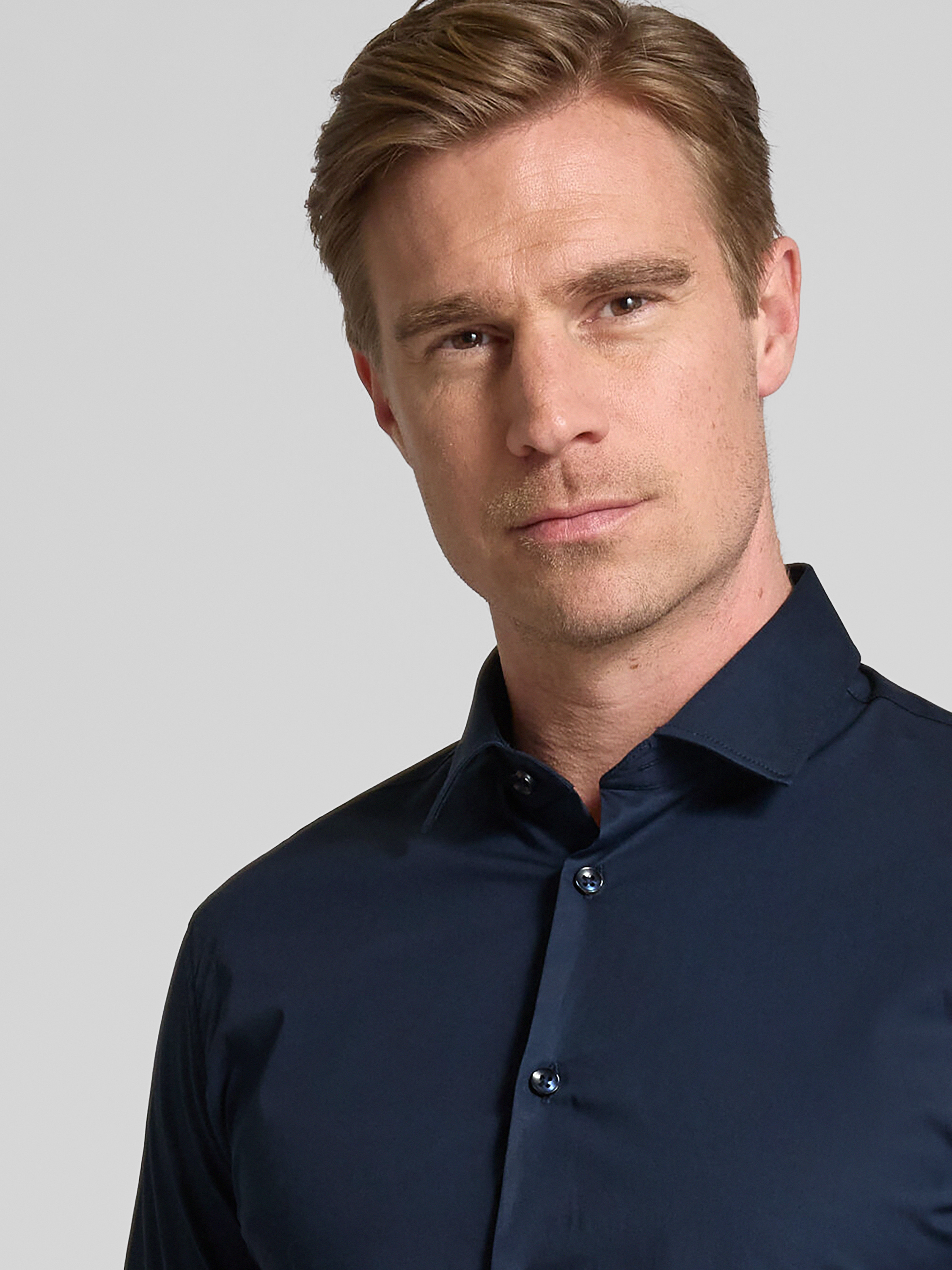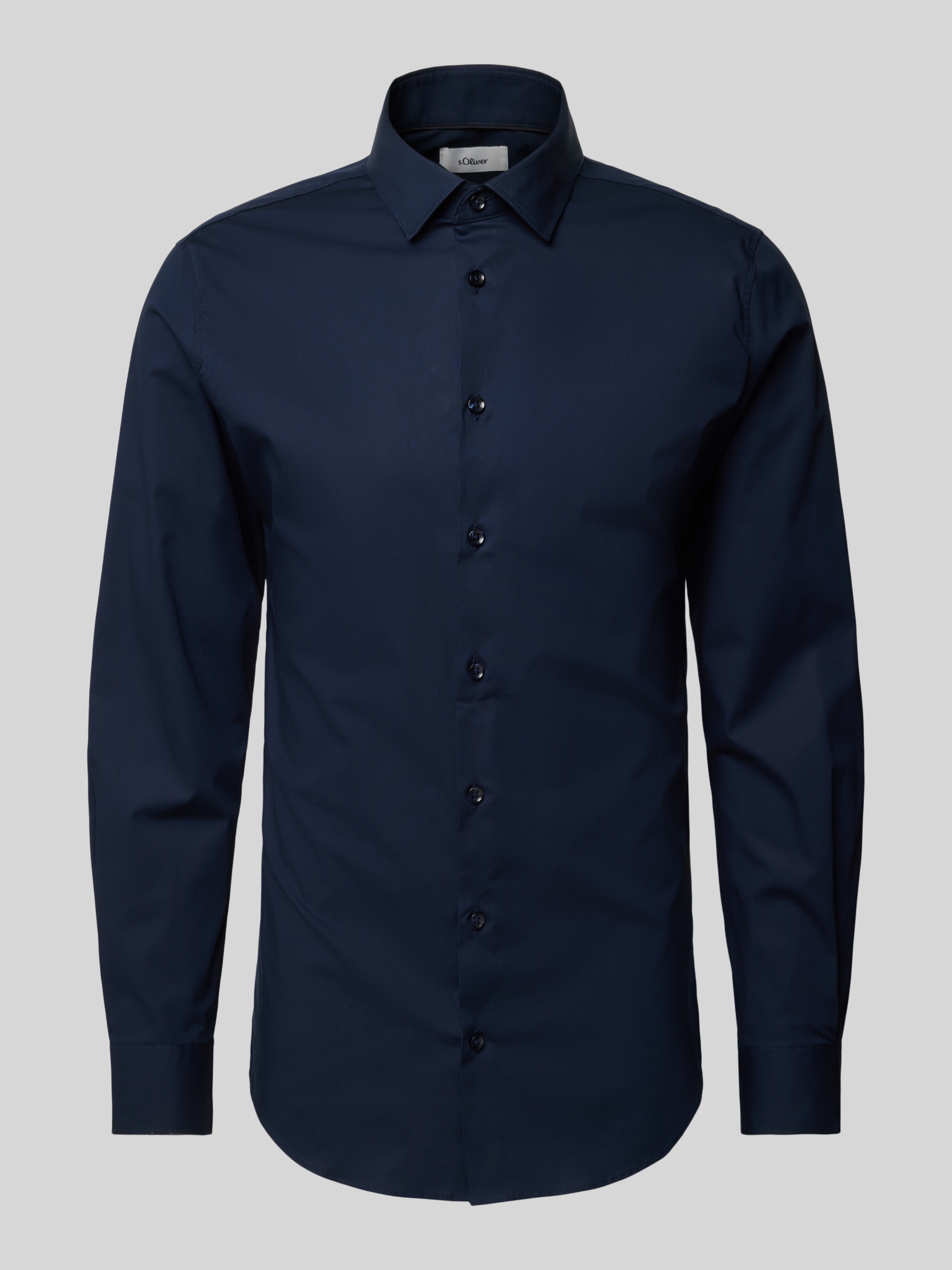 s.Oliver BLACK LABELShaped Fit Businesshemd aus Baumwoll-Stretch in marine