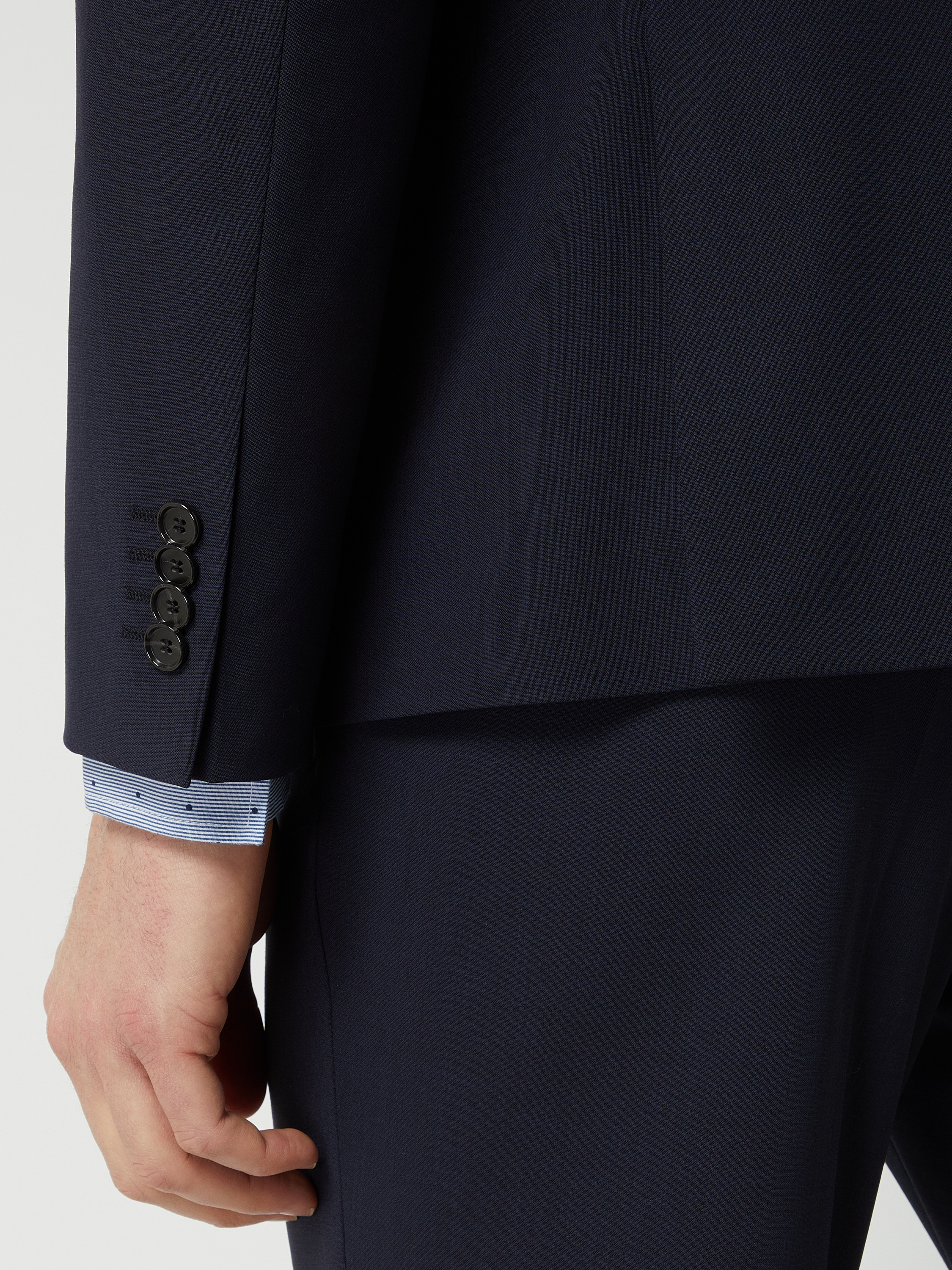 Das Slim Fit Sakko von s.Oliver BLACK LABEL verbindet die edle Optik der Schurwolle mit einem eleganten Reverskragen, was es ideal für feierliche Anlässe oder das Business-Umfeld macht. Durch den schmalen Schnitt passt es sich angenehm an. Dezente Details wie die angedeuteten Taschen und dekorativen Knöpfe runden das Design harmonisch ab.
