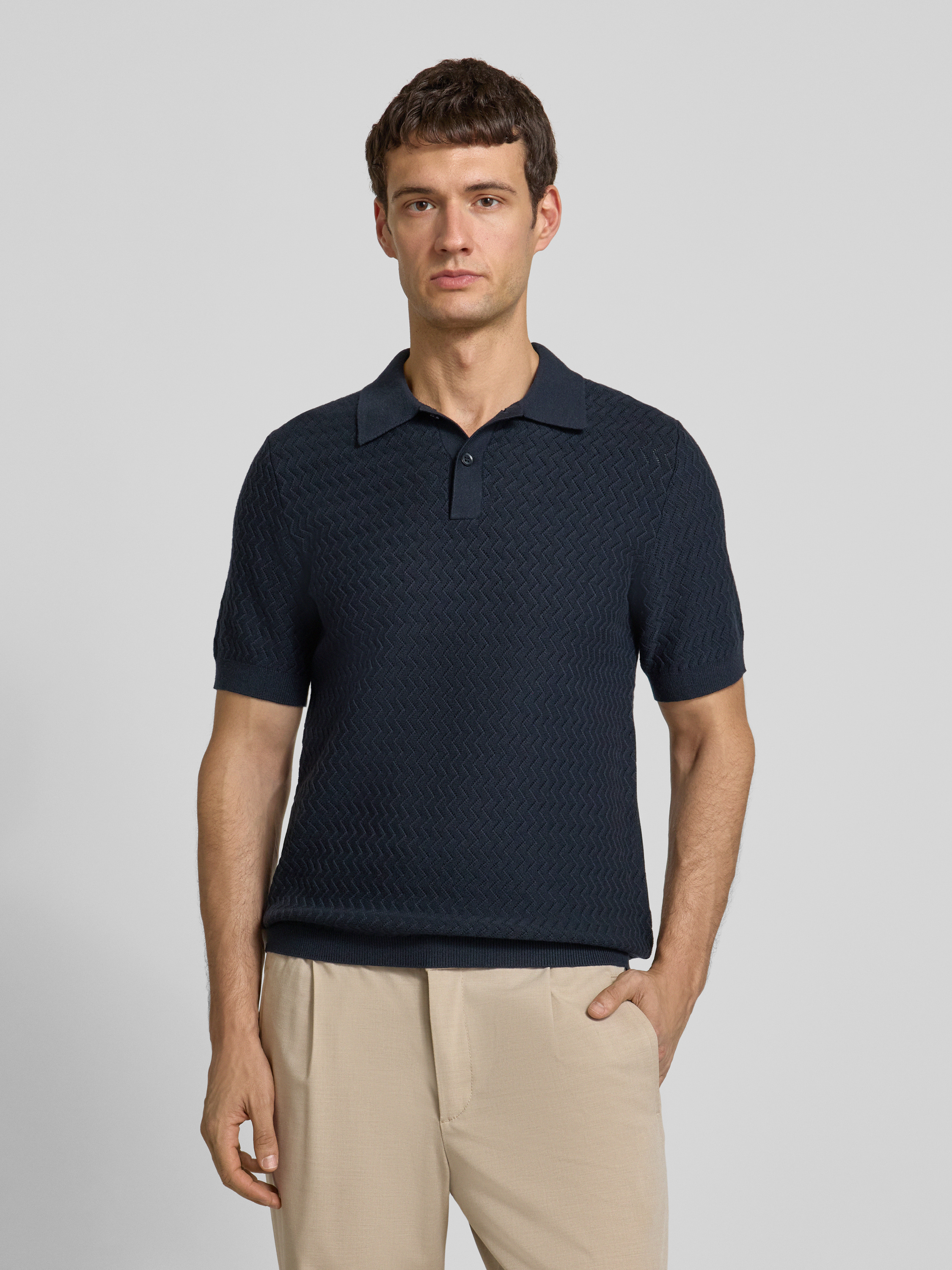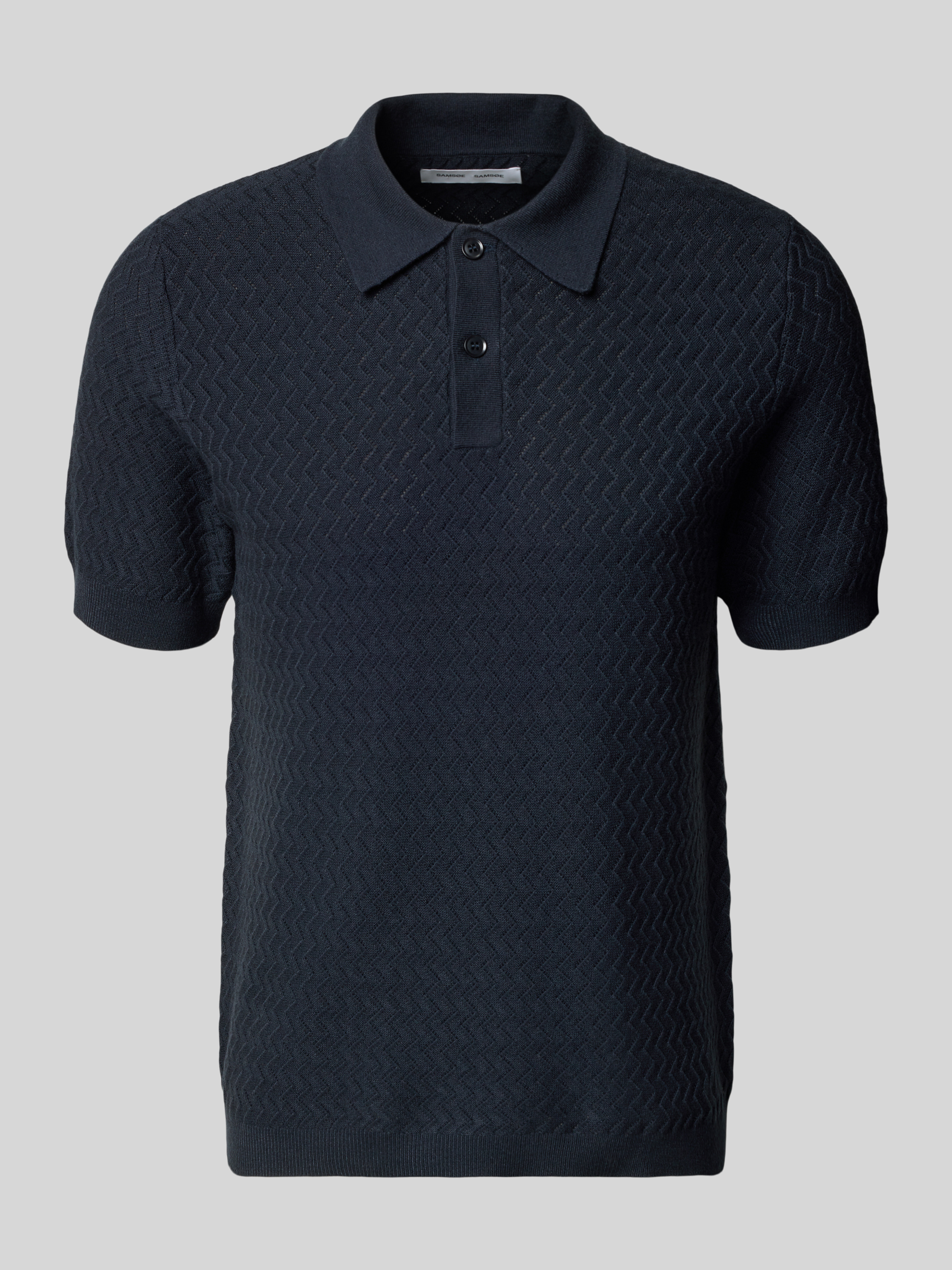 Samsøe SamsøeStrickshirt mit Polokragen und Knopfleiste in dunkelblau