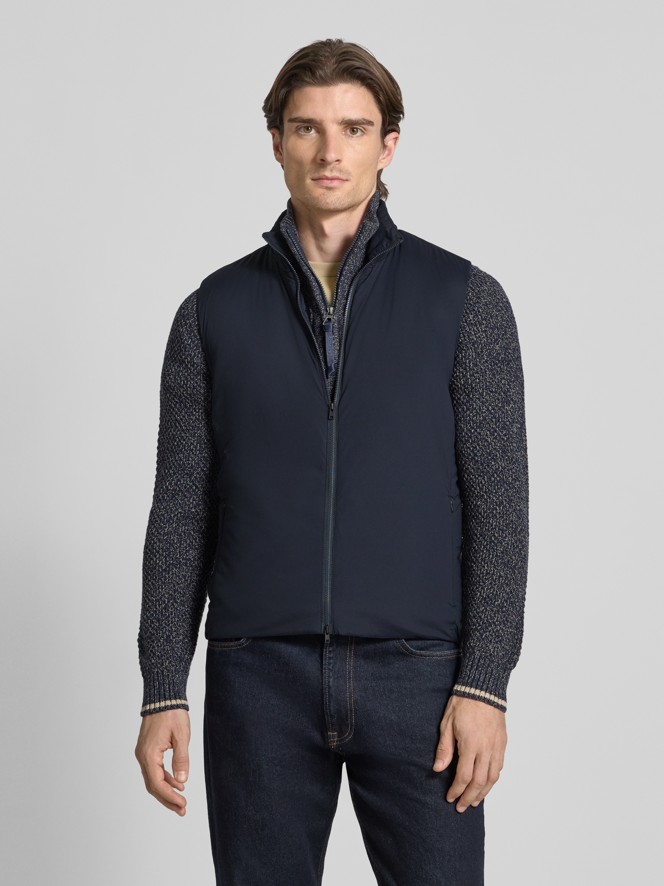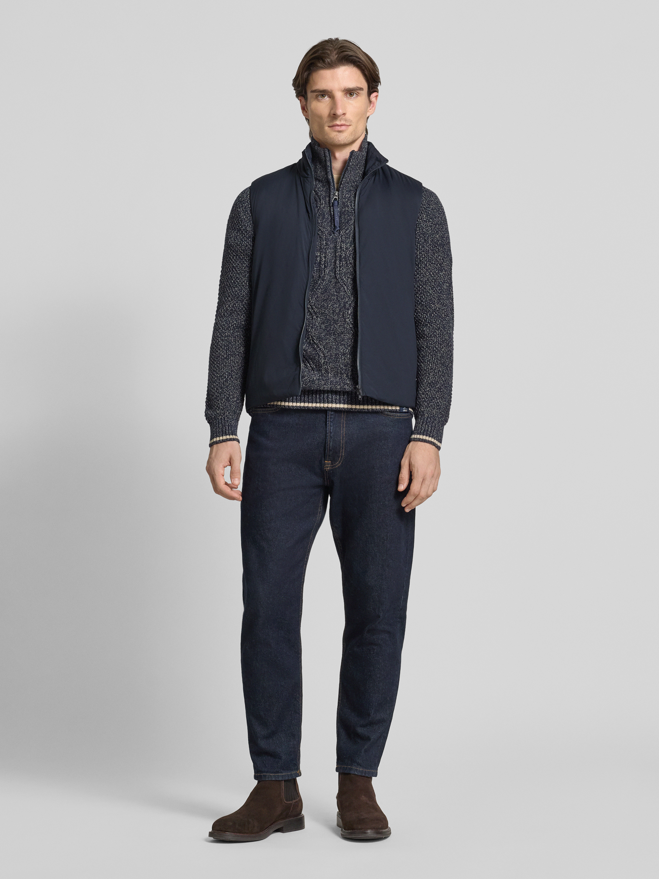 Die Herren Weste von SCANDINAVIAN EDITION präsentiert sich im Regular Fit und legt mit ihrem Material-Mix samt Stretch-Anteil Wert auf angenehmen Tragekomfort. Der Stehkragen verleiht dem Outfit eine moderne Note, während sich die Passform unkompliziert kombinieren lässt. So eignet sich die Weste für vielseitige Anlässe im Alltag.
