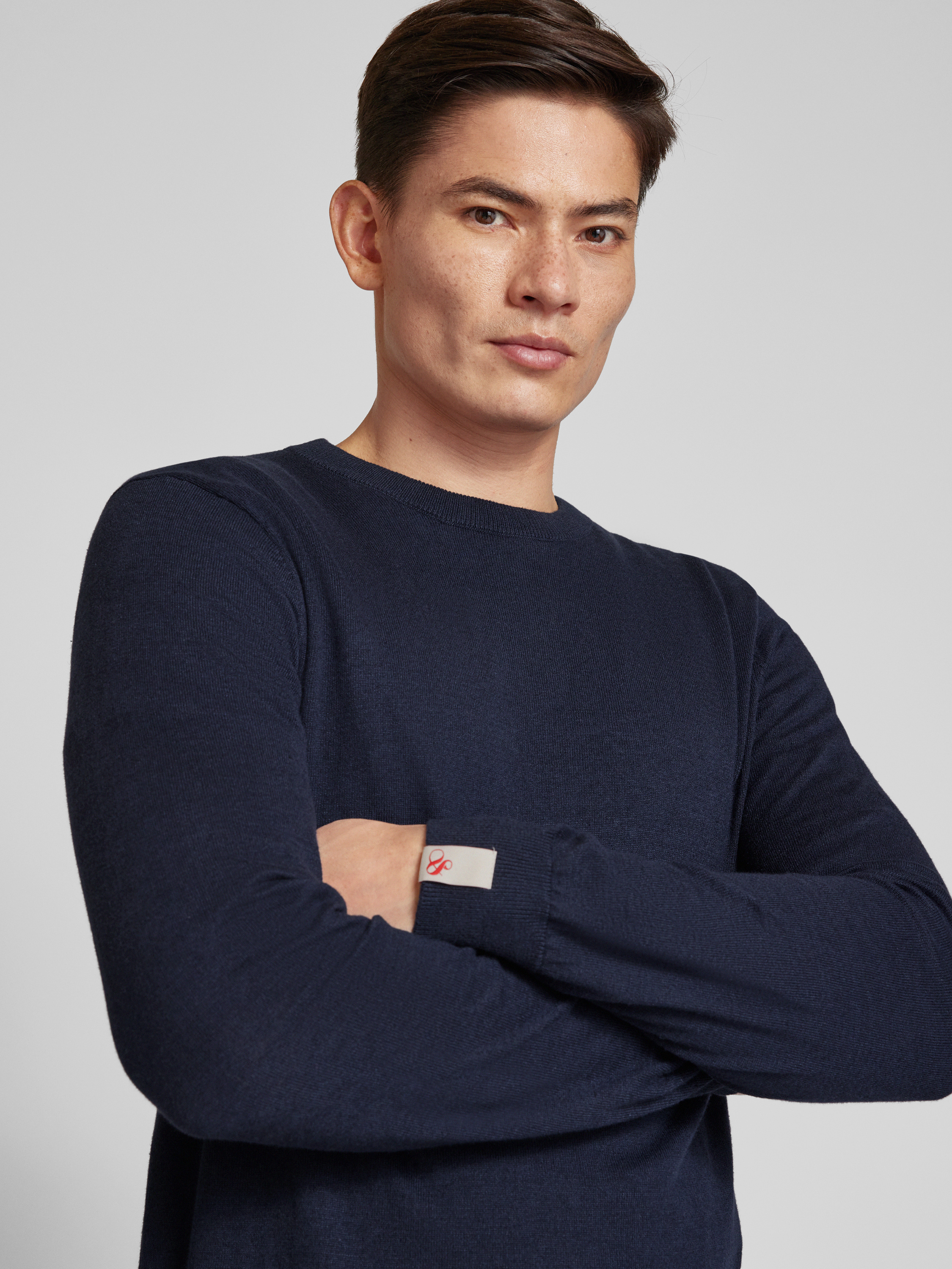 Scotch & SodaRegular Fit Strickpullover aus Leinen-Mix in dunkelblau
